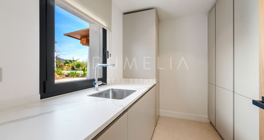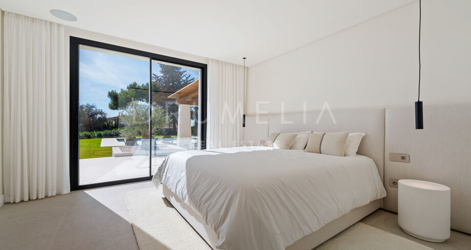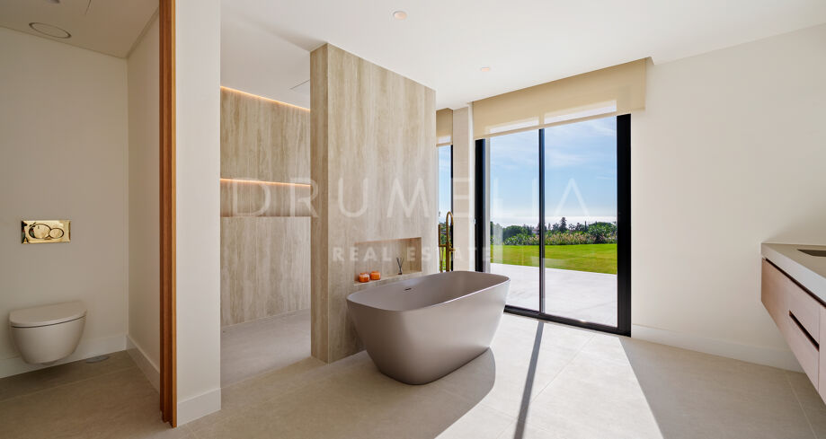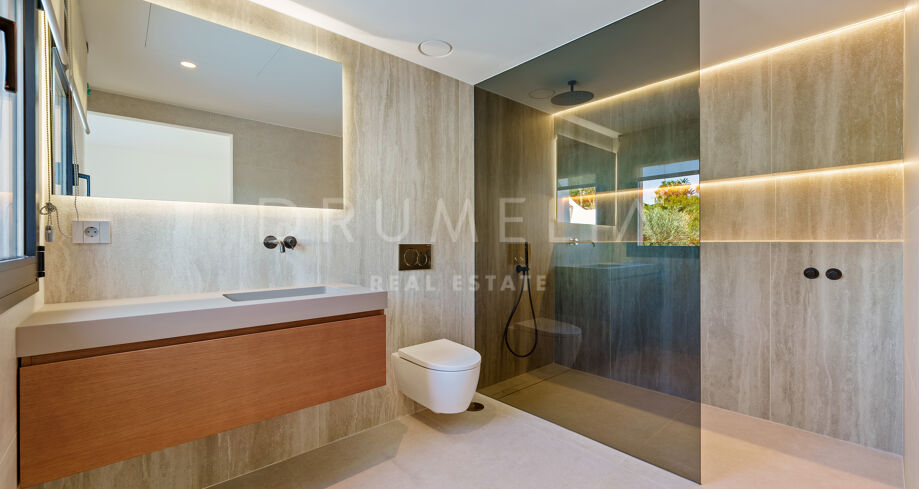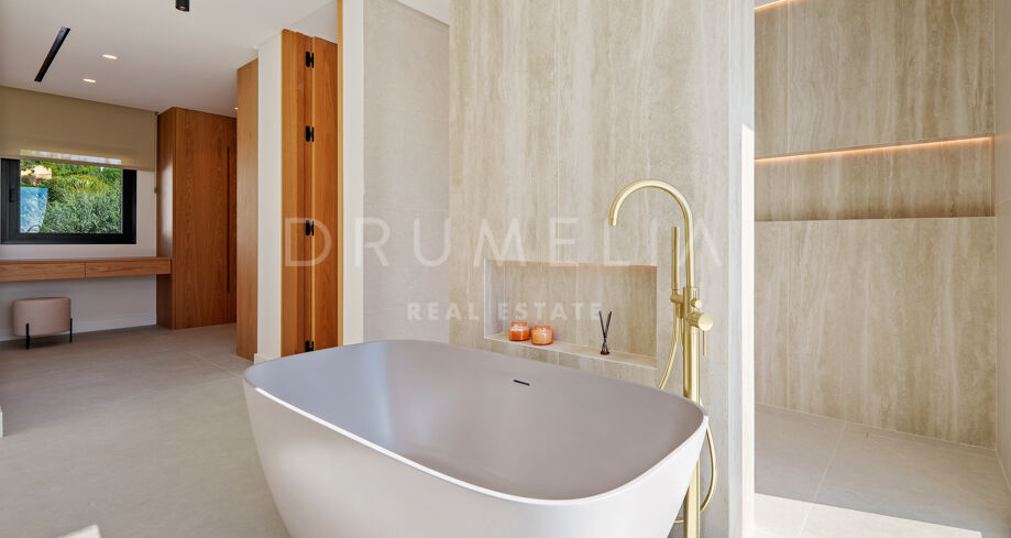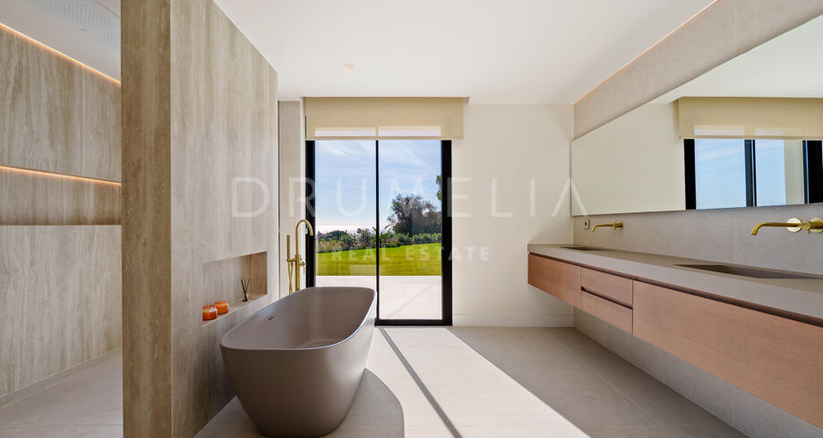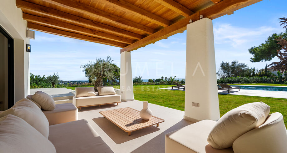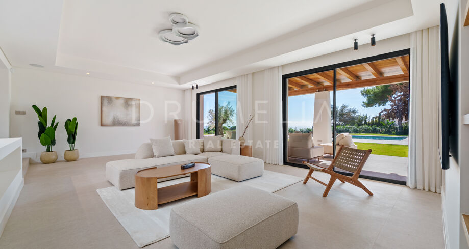 Villa contemporaine de plain-pied avec vue sur la mer et la montagne à El Rosario, Marbella Est