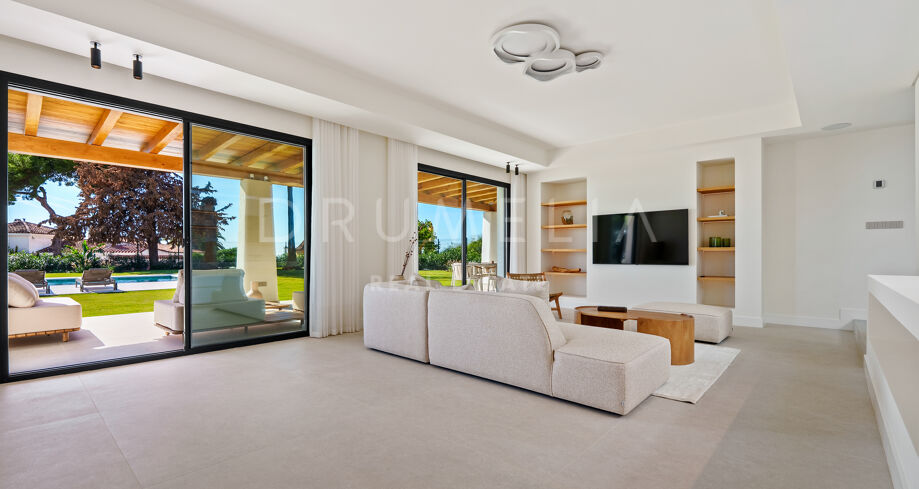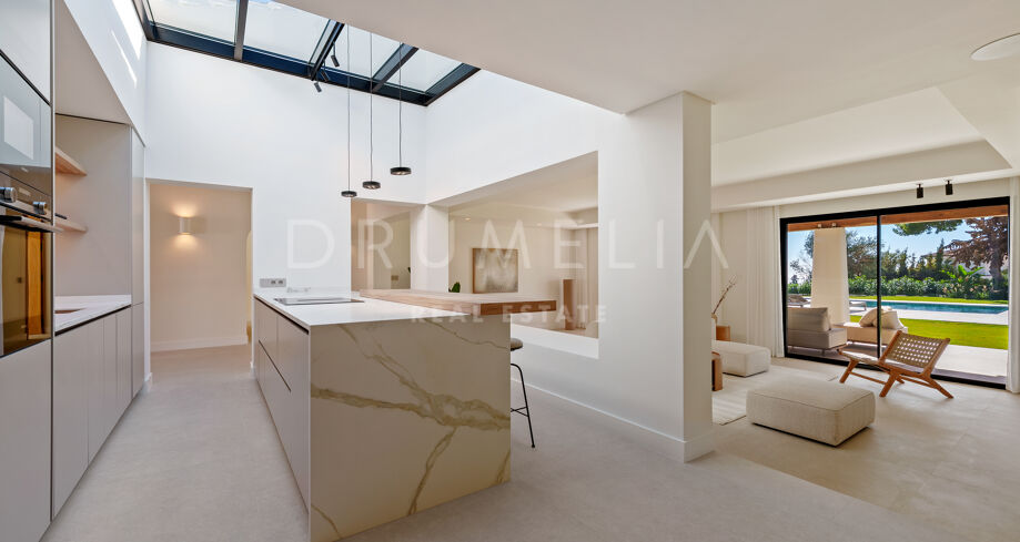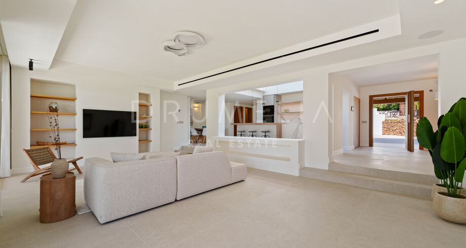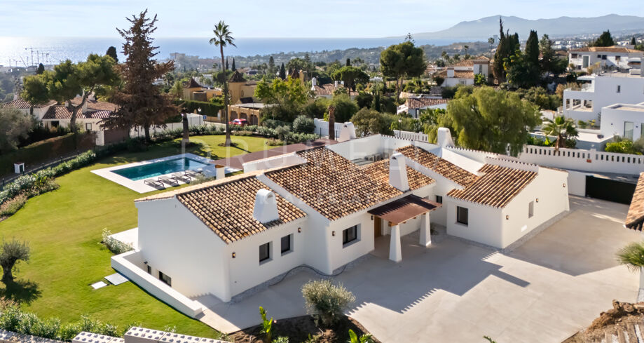 Située au sein de l’enclave résidentielle établie d’El Rosario, cette villa de plain-pied offre un équilibre raffiné entre design contemporain et caractère andalou. Implantée sur un vaste terrain de 2 076 m², la propriété jouit d’une intimité préservée ainsi que de vues dégagées sur la mer et les montagnes environnantes.