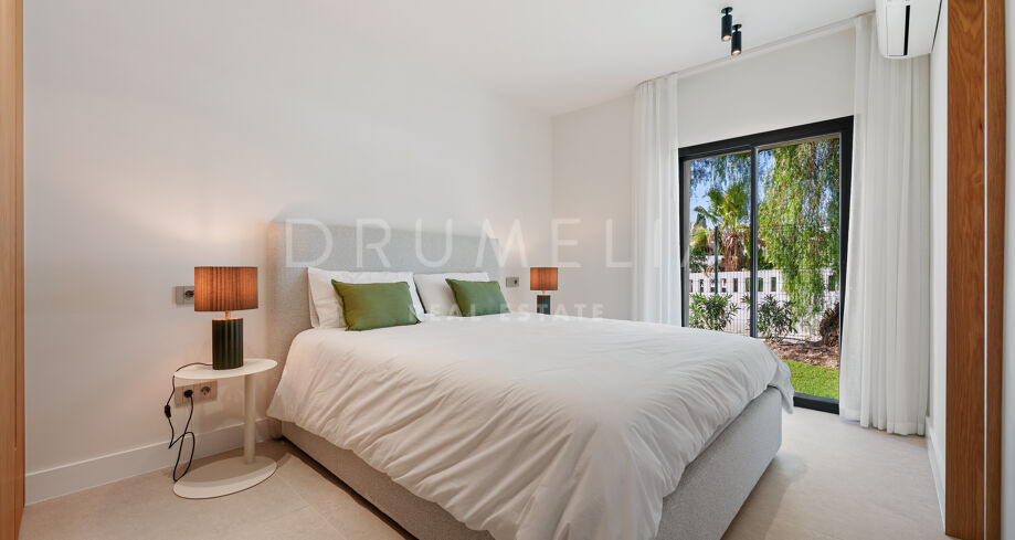 La propriété comprend cinq chambres et cinq salles de bains, toutes conçues dans une optique constante de confort et de simplicité. Les chambres bénéficient d’un accès direct aux espaces extérieurs, tandis que les salles de bains disposent de douches à l’italienne modernes et d’une baignoire autoportante. Construite à l’origine en 1973 et rénovée en 2025, la villa présente une habitation modernisée dans un cadre résidentiel bien établi.