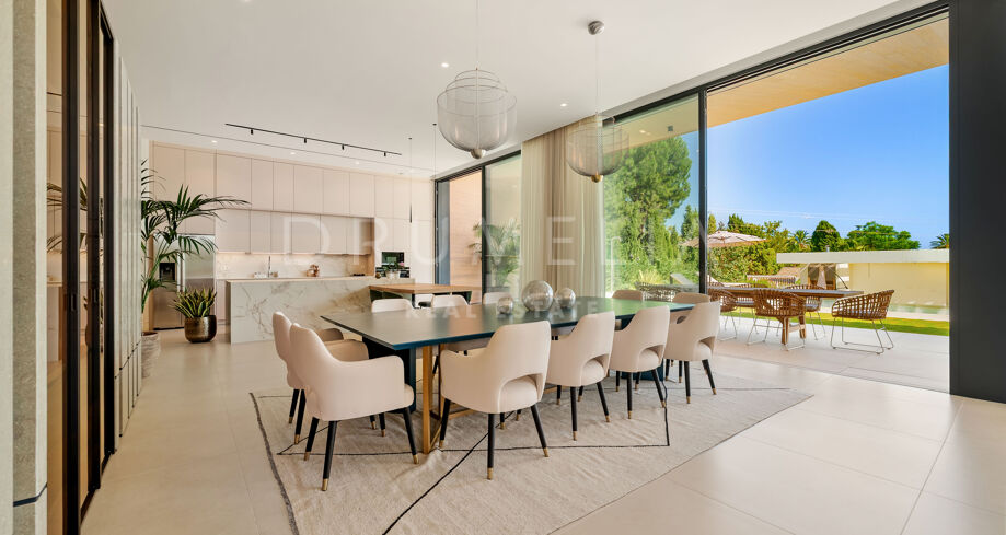 Cette élégante résidence contemporaine de six chambres est située sur un vaste terrain privé de plus de 1.600 m², dans l’un des quartiers les plus exclusifs de Marbella. Avec plus de 1.000 m² construits, elle se distingue par son architecture moderne, ses lignes épurées et ses grandes baies vitrées qui inondent les espaces de lumière naturelle. Les jardins soigneusement aménagés et l’intégration harmonieuse entre intérieur et extérieur confèrent à la propriété une présence sophistiquée et un charme unique.