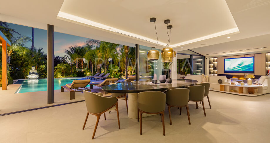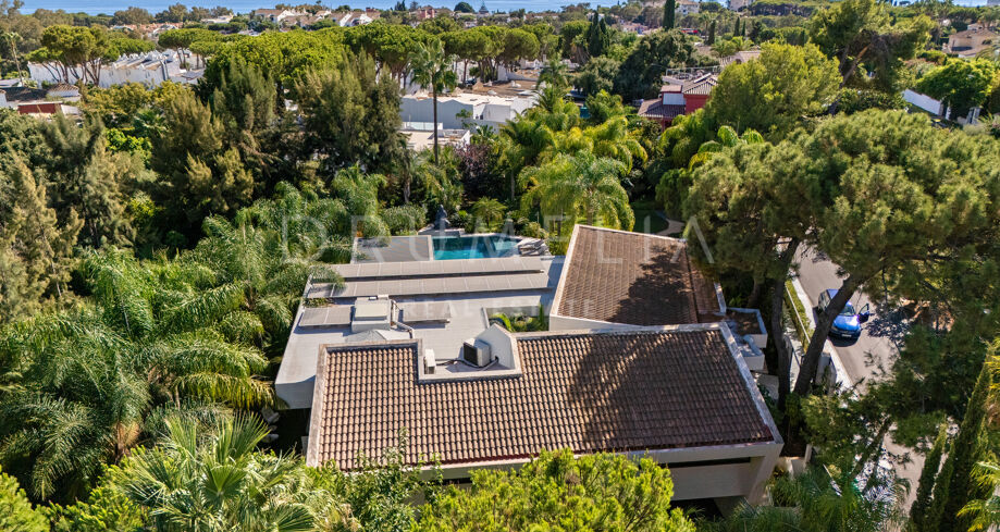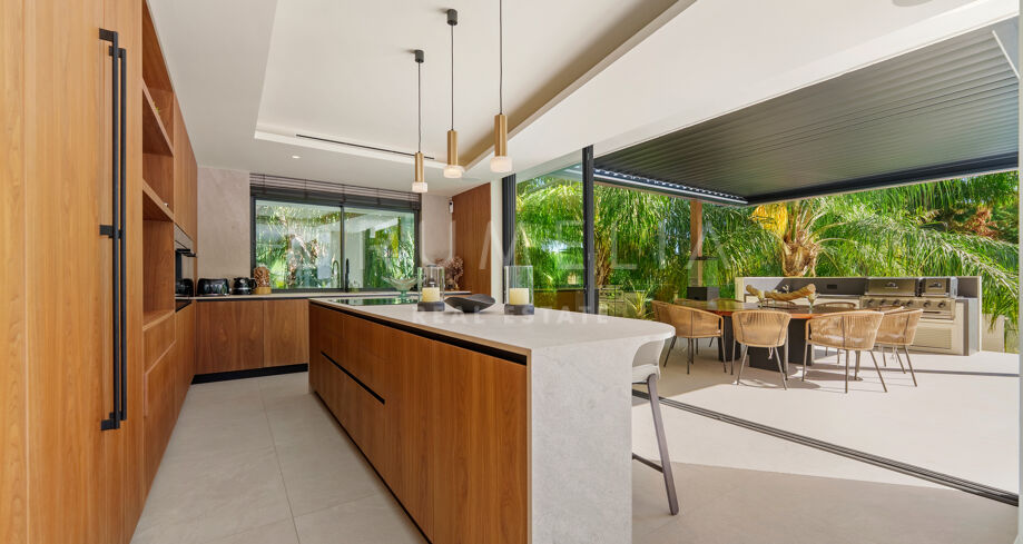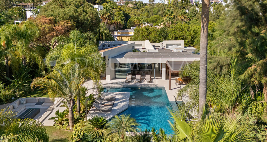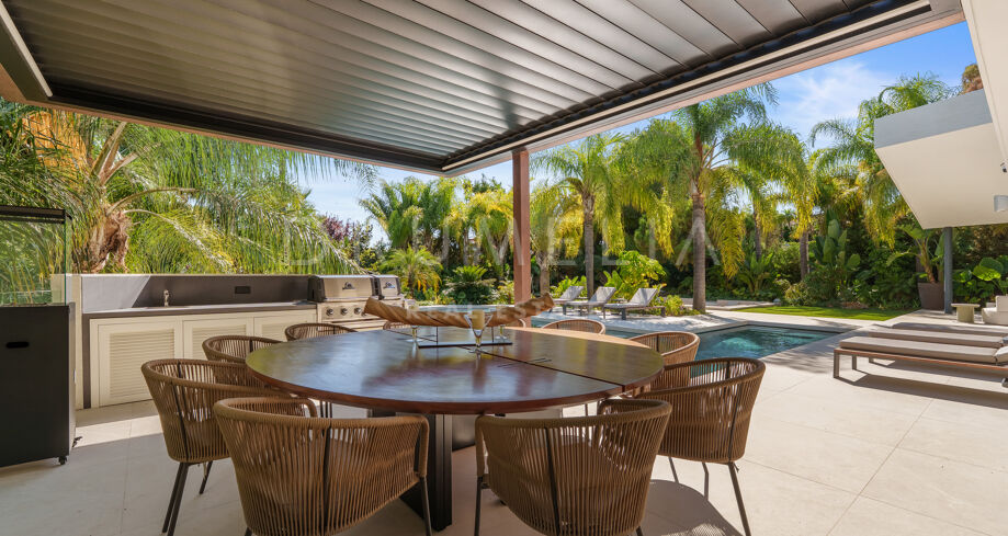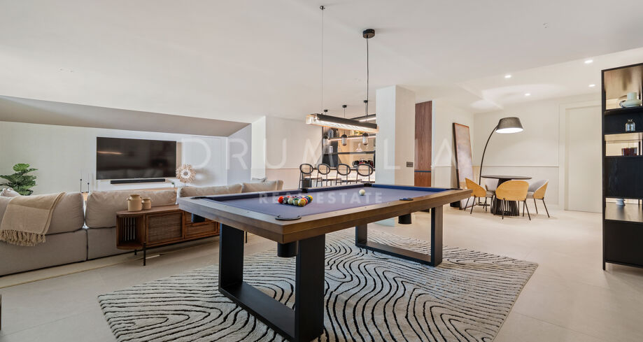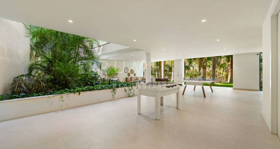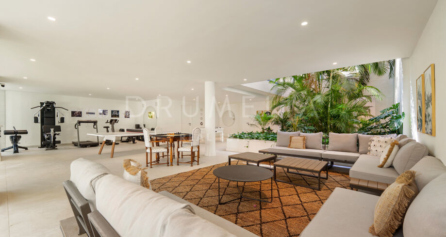 L’espace extérieur est conçu pour la détente et les loisirs, avec une piscine chauffée qui maintient une température agréable même en hiver. Une pergola électrique bioclimatique fournit de l’ombre, tandis que la végétation luxuriante renforce l’intimité. La propriété comprend également une salle de sport entièrement équipée, une élégante salle de jeux avec un billard, ainsi que le chauffage au sol et la climatisation pour un confort tout au long de l’année. Un abri couvert pouvant accueillir jusqu’à cinq voitures assure commodité et sécurité.