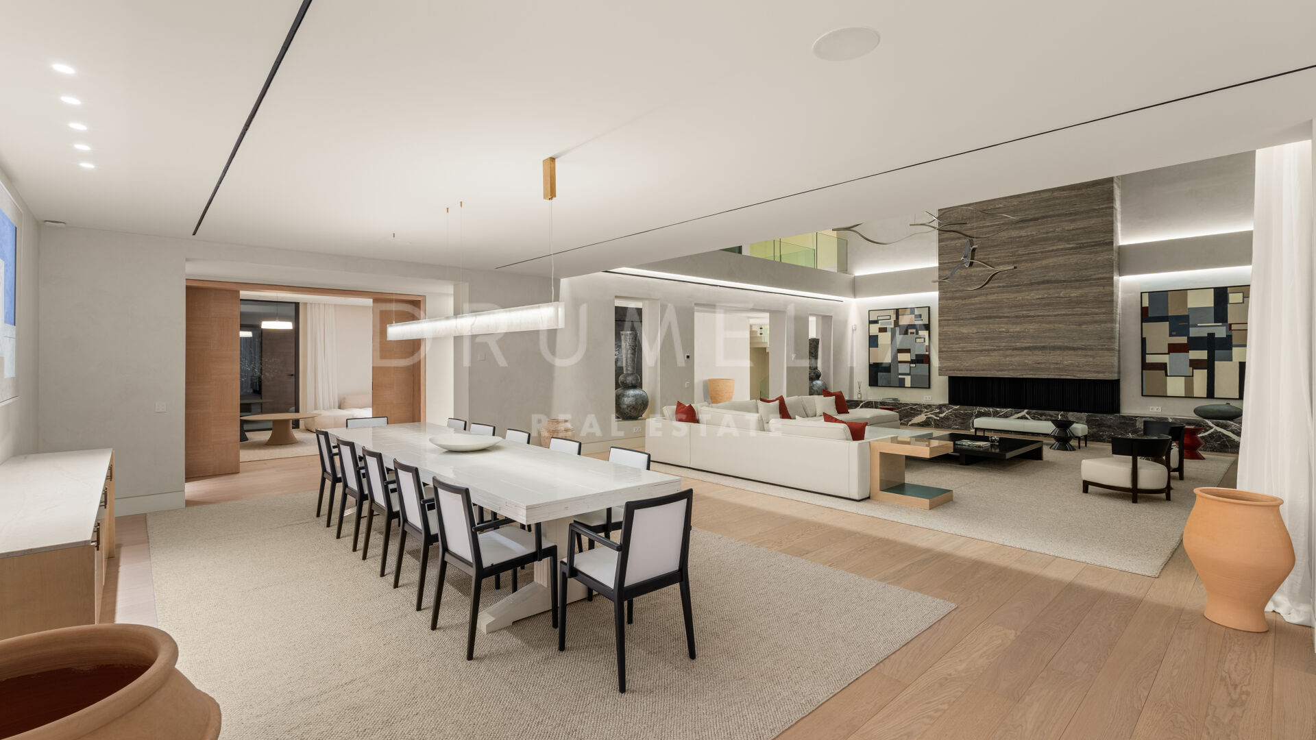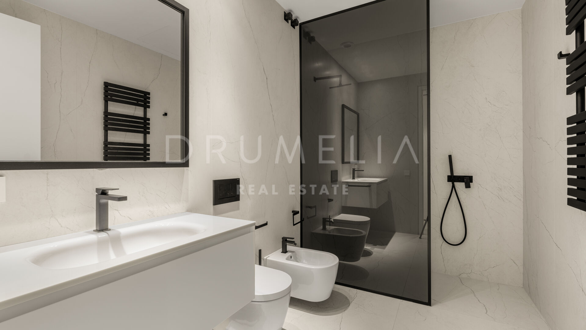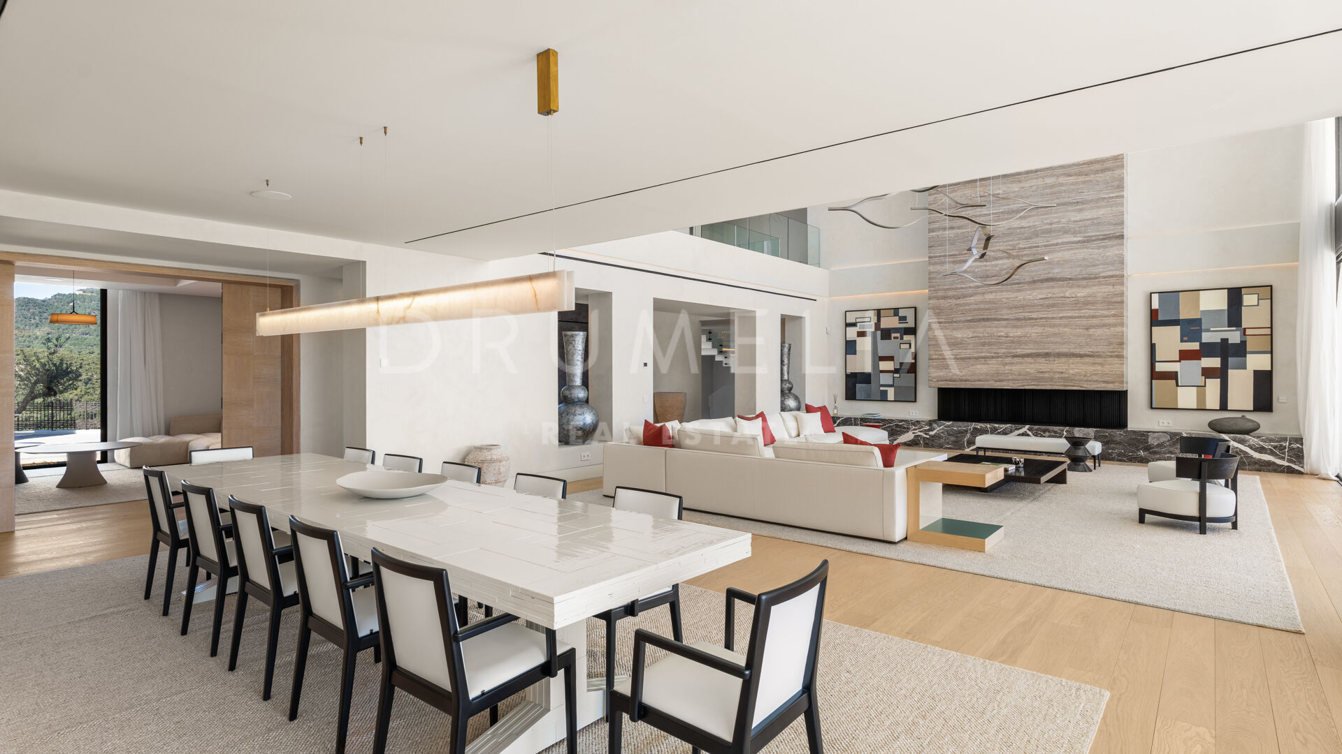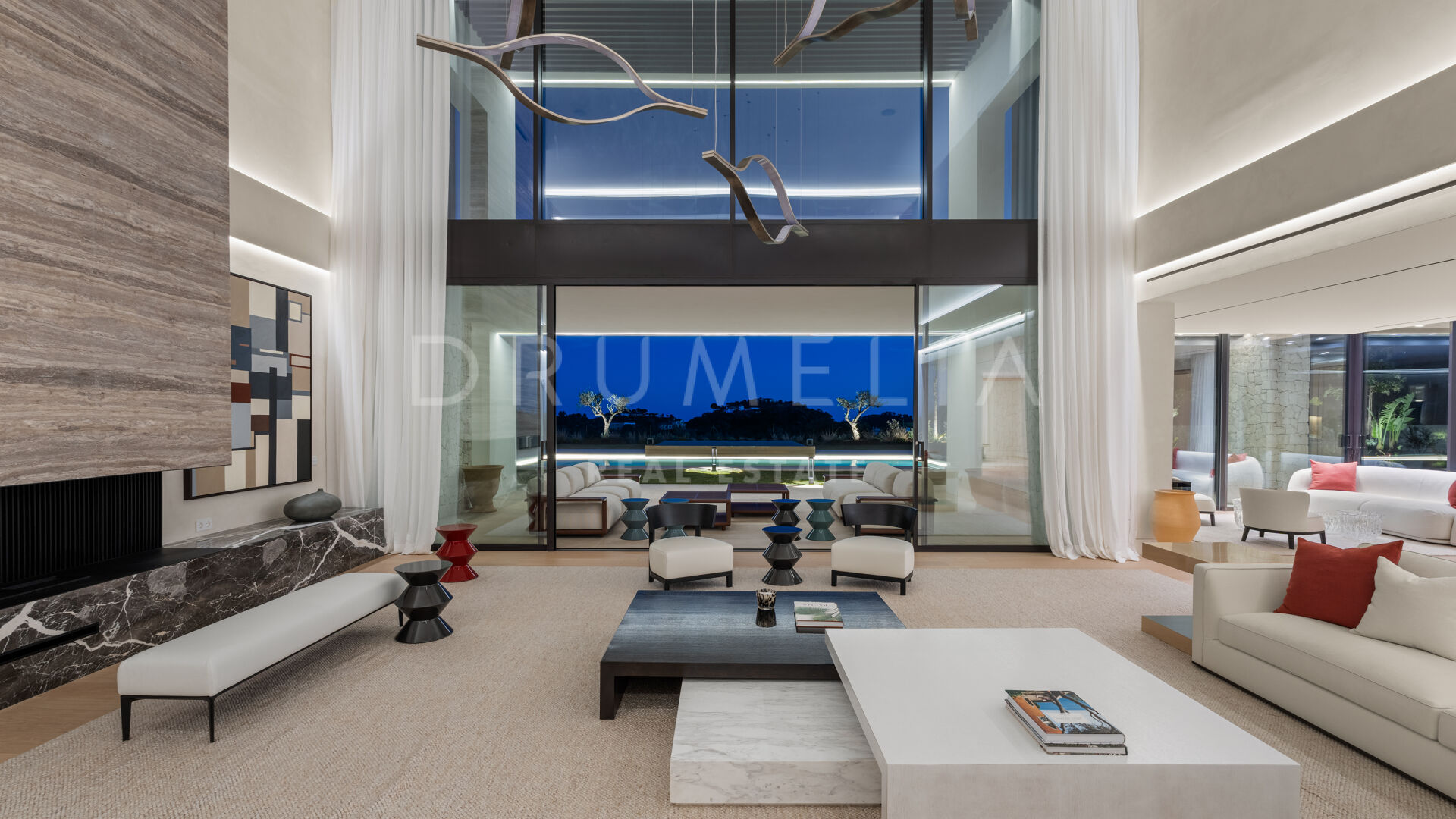La maison comprend six chambres, sept salles de bains et des toilettes invités, réparties harmonieusement sur trois niveaux. Conçue pour le confort et le raffinement, elle dispose de plafonds à double hauteur dans les espaces de vie, le salon principal et les chambres étant en cours d’ameublement. Parmi ses nombreux équipements de luxe, on retrouve un spa privé avec sauna et hammam, une salle de sport, une salle de massage et un appartement pour invités au sous-sol. De vastes terrasses, des jardins paysagers et de grandes baies vitrées assurent une parfaite continuité entre intérieur et extérieur. Parmi ses nombreux atouts, la propriété comprend également une piscine chauffée et couverte, idéale pour en profiter tout au long de l’année.