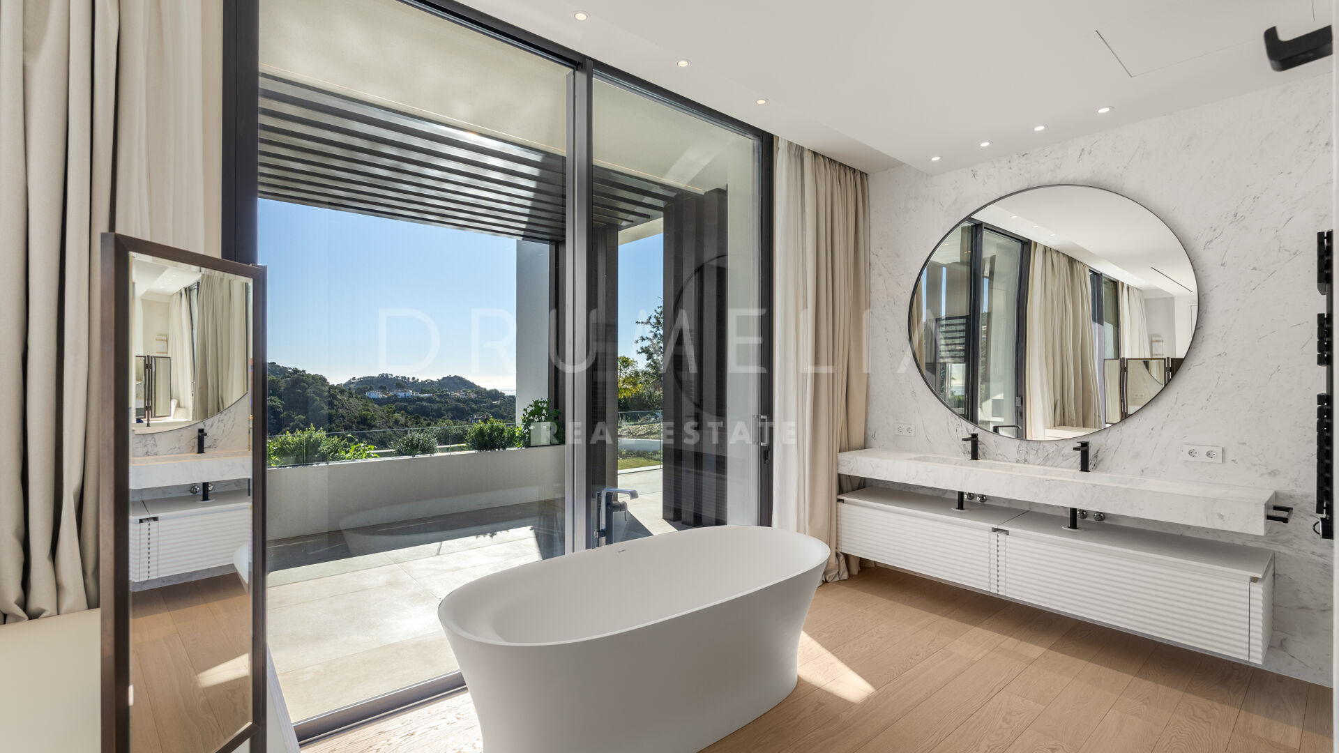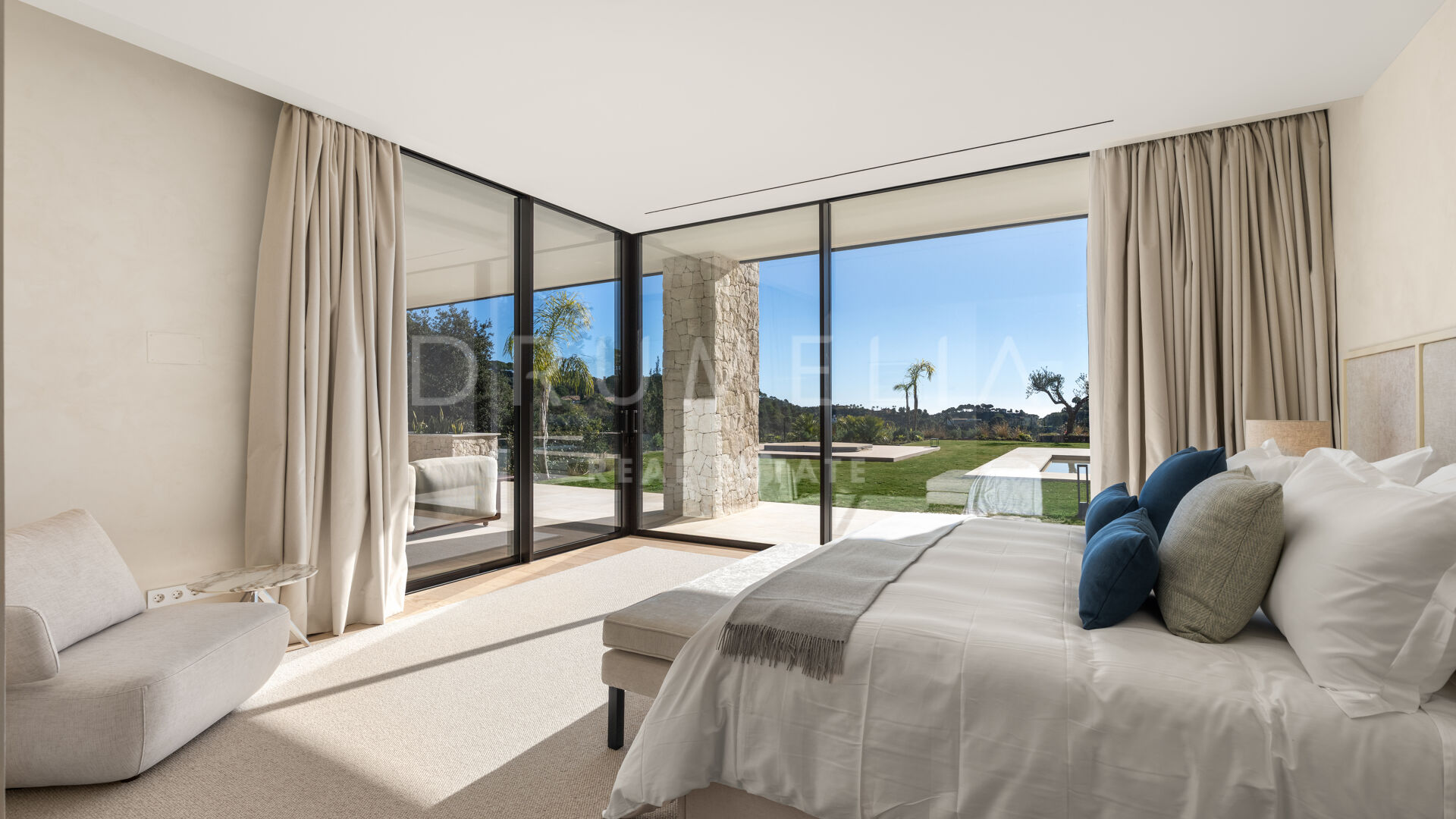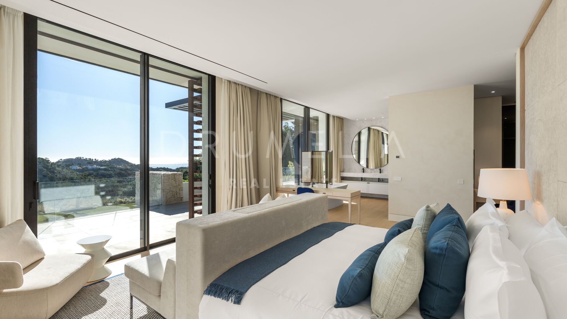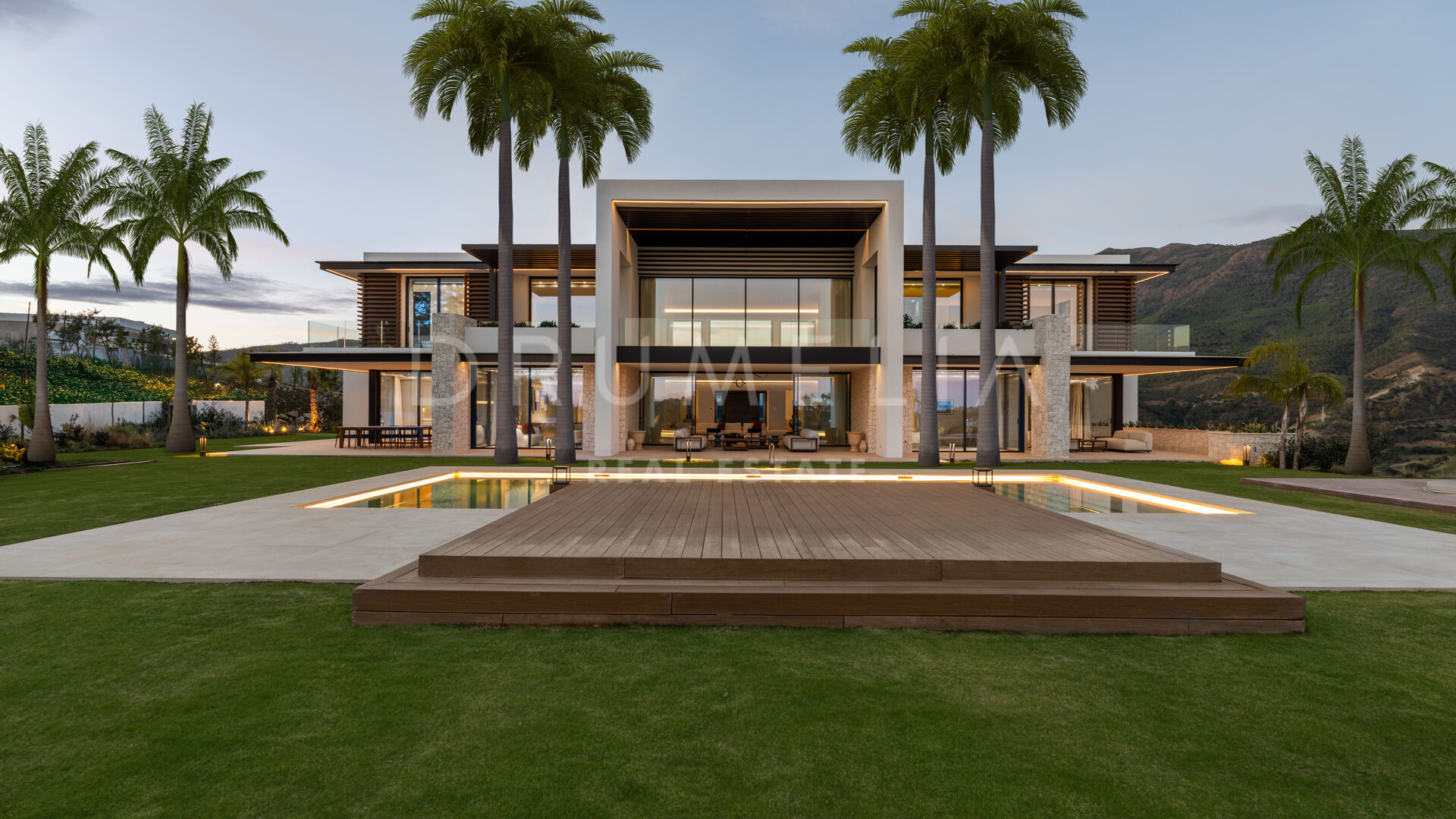 La maison comprend six chambres, sept salles de bains et des toilettes invités, réparties harmonieusement sur trois niveaux. Conçue pour le confort et le raffinement, elle dispose de plafonds à double hauteur dans les espaces de vie, le salon principal et les chambres étant en cours d’ameublement. Parmi ses nombreux équipements de luxe, on retrouve un spa privé avec sauna et hammam, une salle de sport, une salle de massage et un appartement pour invités au sous-sol. De vastes terrasses, des jardins paysagers et de grandes baies vitrées assurent une parfaite continuité entre intérieur et extérieur. Parmi ses nombreux atouts, la propriété comprend également une piscine chauffée et couverte, idéale pour en profiter tout au long de l’année.