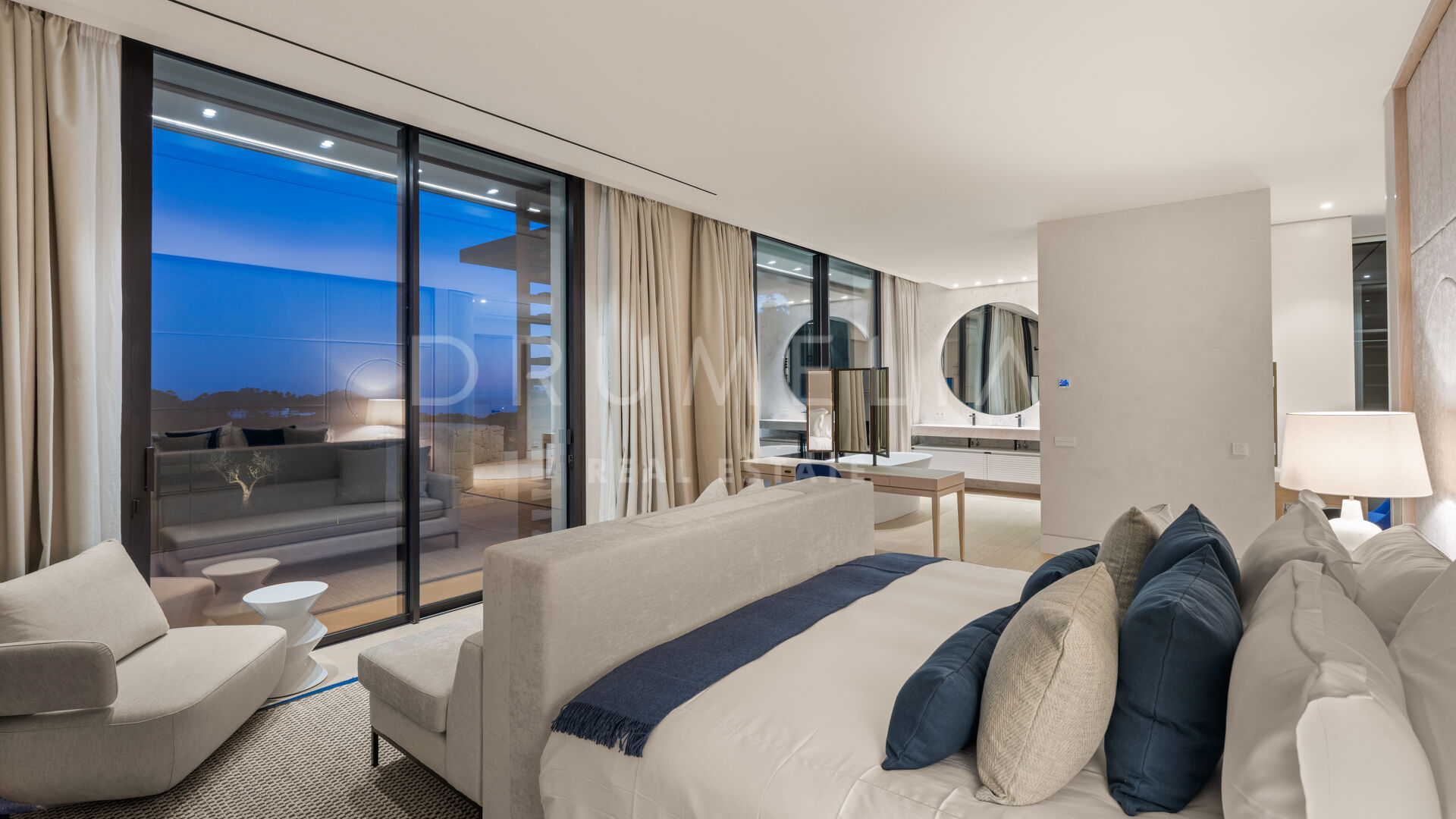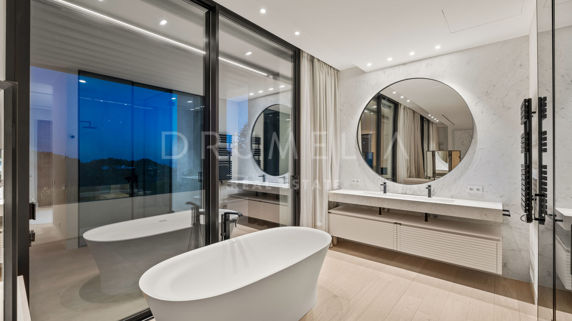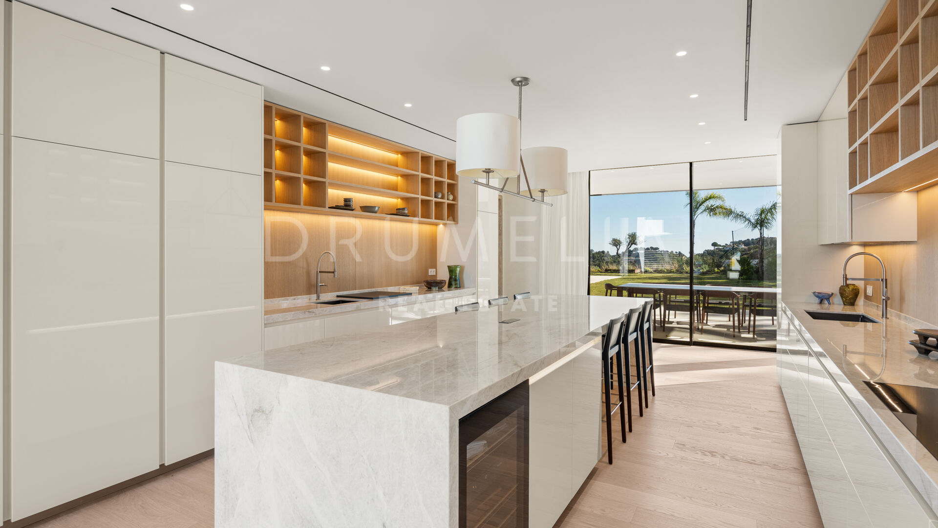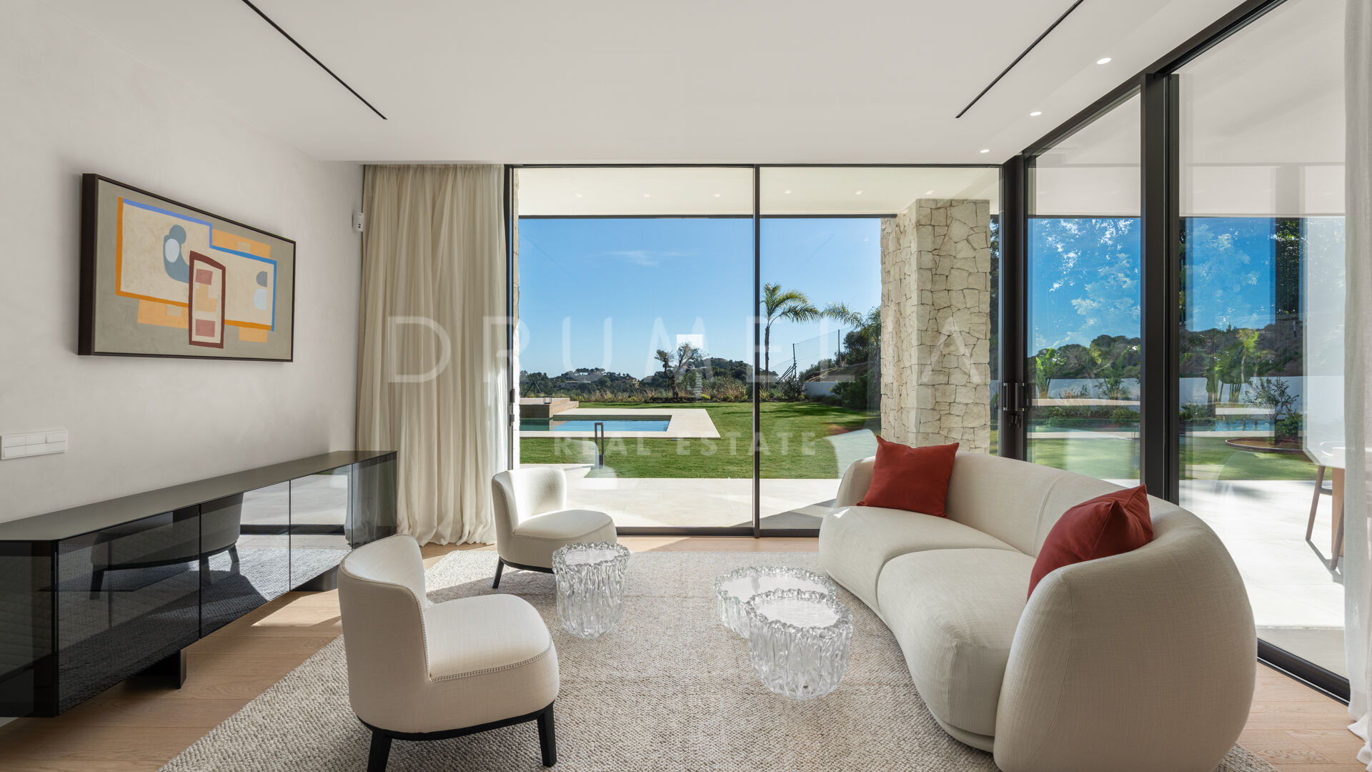 La maison comprend six chambres, sept salles de bains et des toilettes invités, réparties harmonieusement sur trois niveaux. Conçue pour le confort et le raffinement, elle dispose de plafonds à double hauteur dans les espaces de vie, le salon principal et les chambres étant en cours d’ameublement. Parmi ses nombreux équipements de luxe, on retrouve un spa privé avec sauna et hammam, une salle de sport, une salle de massage et un appartement pour invités au sous-sol. De vastes terrasses, des jardins paysagers et de grandes baies vitrées assurent une parfaite continuité entre intérieur et extérieur. Parmi ses nombreux atouts, la propriété comprend également une piscine chauffée et couverte, idéale pour en profiter tout au long de l’année.