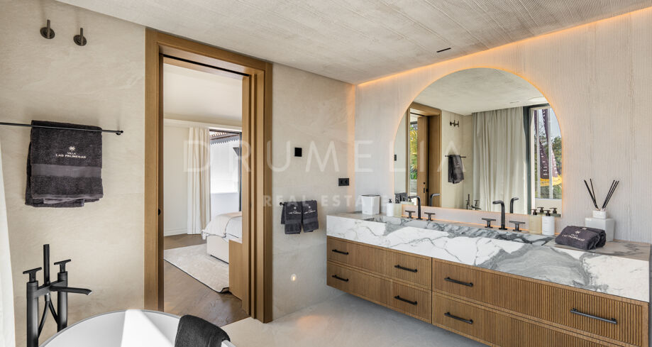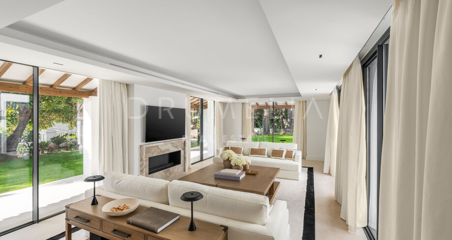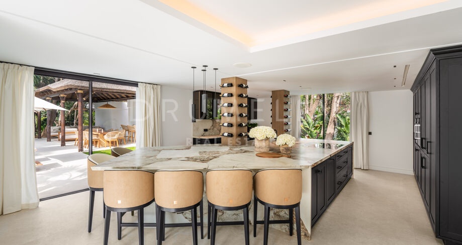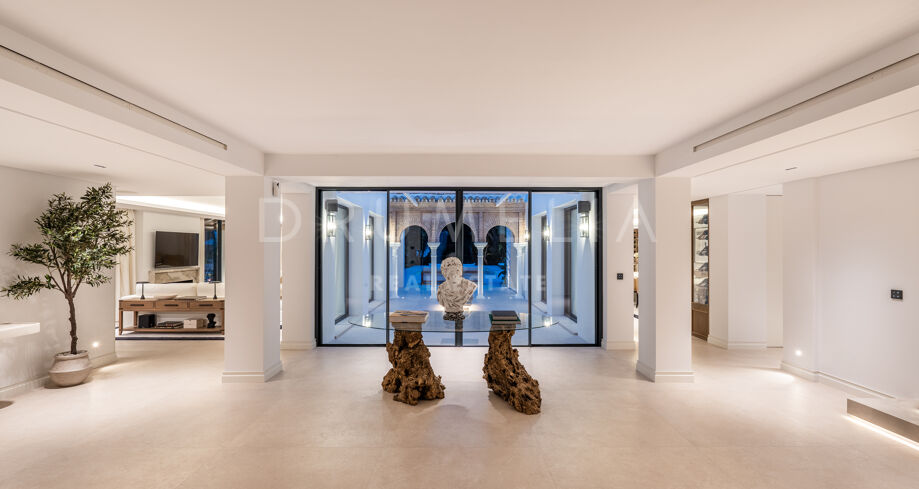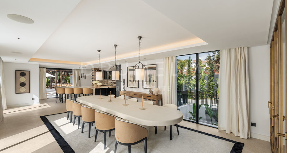 Cette élégante villa contemporaine située dans le complexe exclusif de Las Brisas, à Nueva Andalucía, fait actuellement l’objet d’une rénovation intégrale selon les normes les plus strictes. Elle est idéale pour vivre et recevoir avec style. Directement en face de la cuisine, il y a un impressionnant salon ouvert avec cheminée et une salle à manger formelle pour recevoir, une cuisine ouverte aérée avec une cave à vin et cinq chambres spacieuses et sereines.