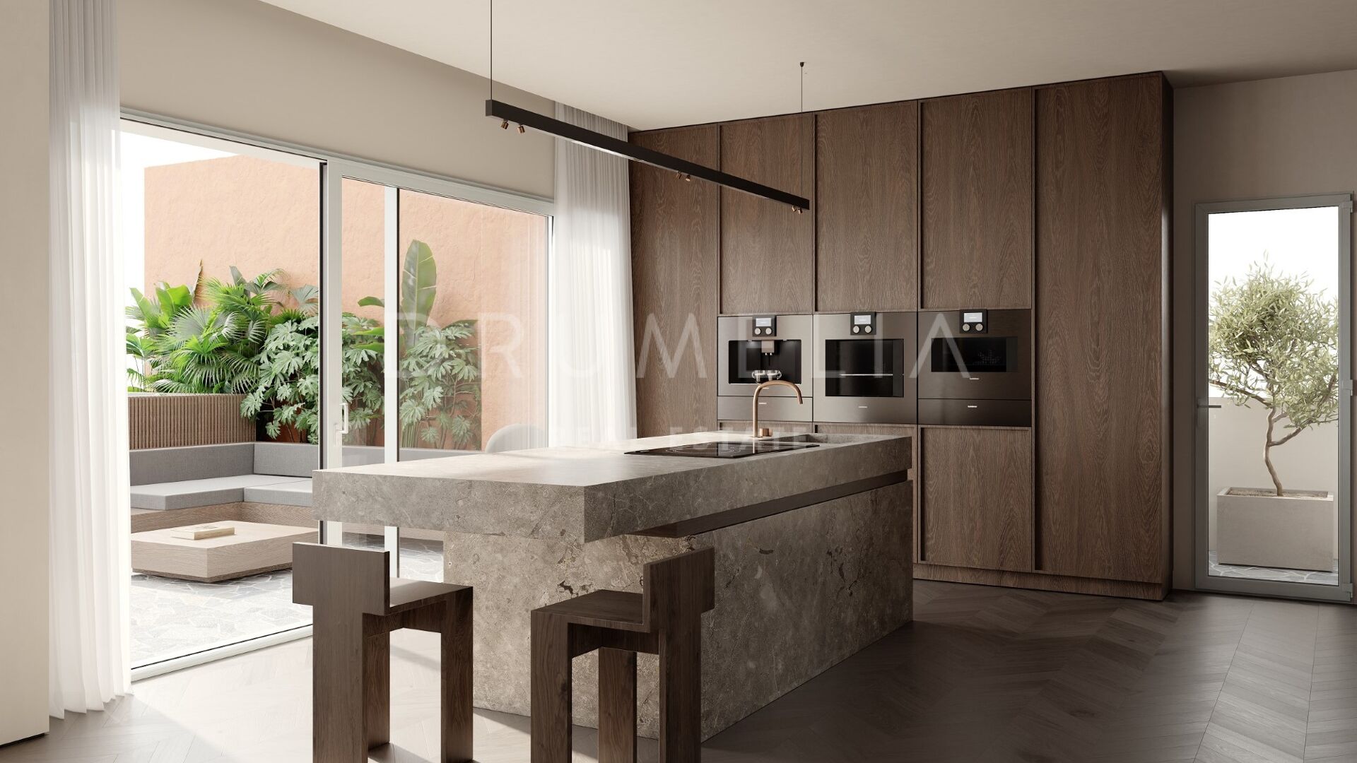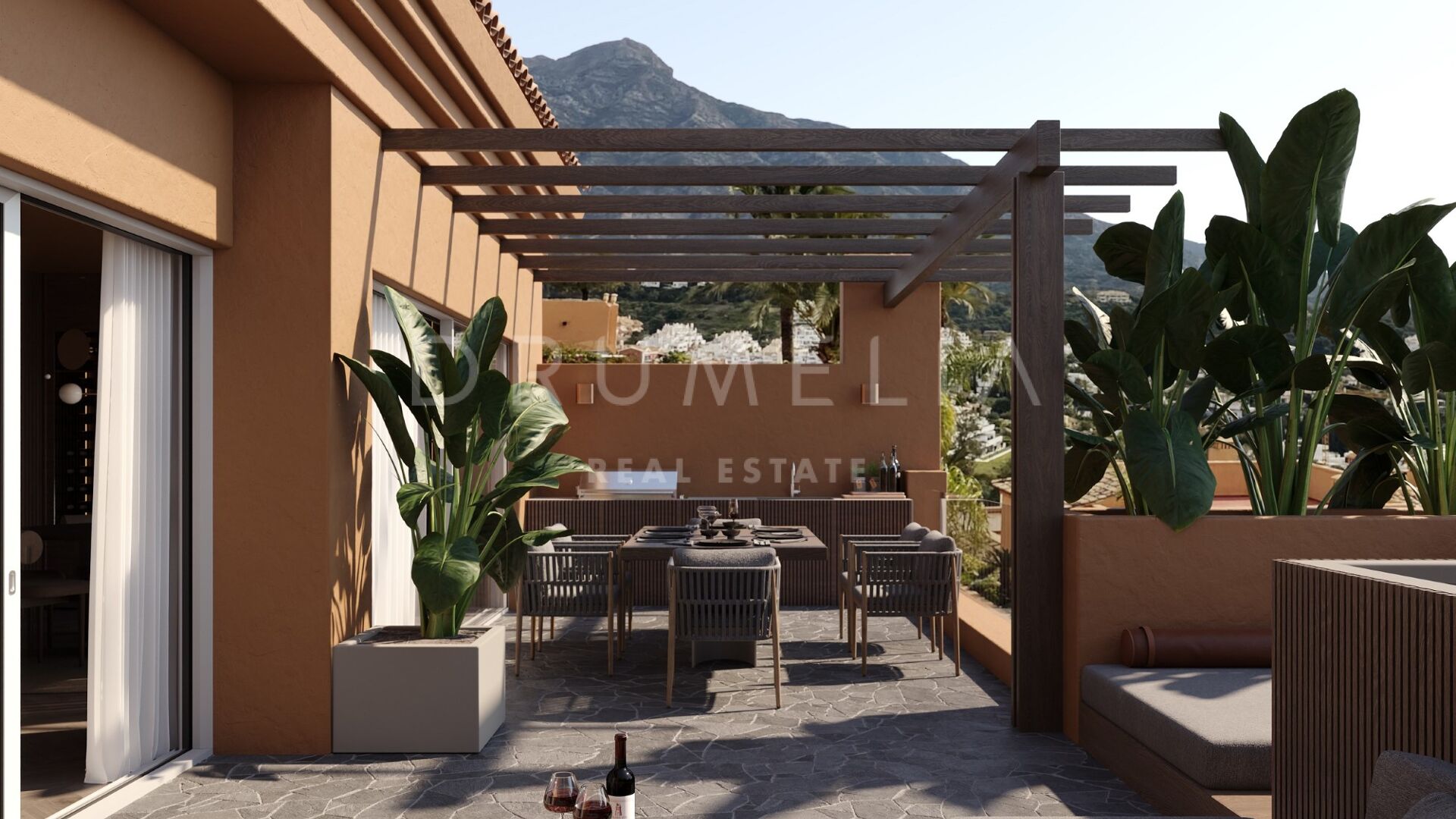 Découvrez ce magnifique penthouse en duplex rénové dans le prestigieux quartier de Les Belvederes, une charmante communauté fermée de Nueva Andalucía. Cette résidence de 4 chambres et 4 salles de bains allie harmonieusement un design moderne et celui du milieu du siècle, créant une atmosphère accueillante et sophistiquée.