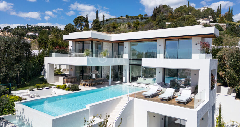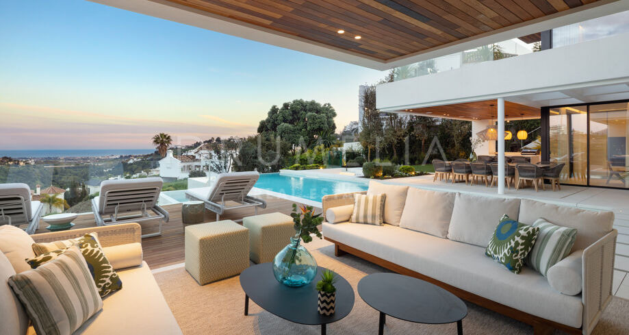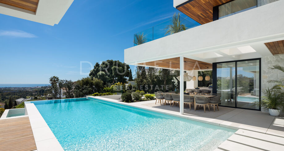 Cette exceptionnelle villa contemporaine située dans une communauté privée exclusive a été méticuleusement conçue par le célèbre architecte Carlos Lamas. Orientée plein sud, la propriété offre une vue panoramique spectaculaire sur la mer Méditerranée et arbore une esthétique moderne raffinée, garantissant luxe et confort dans les moindres détails.