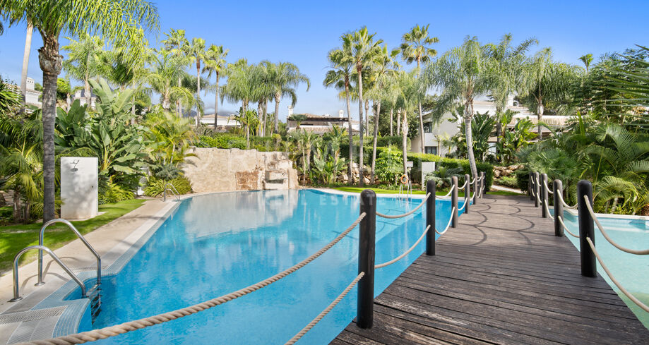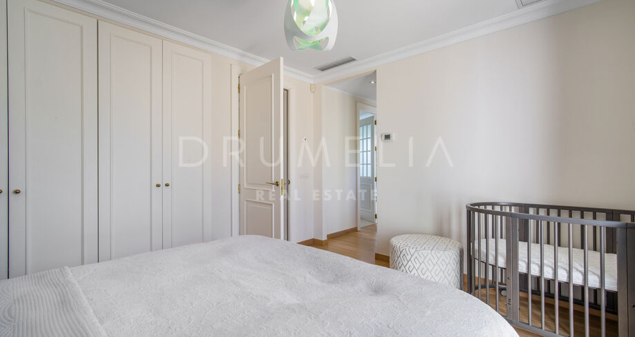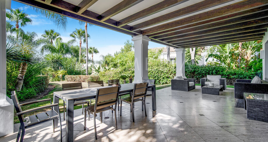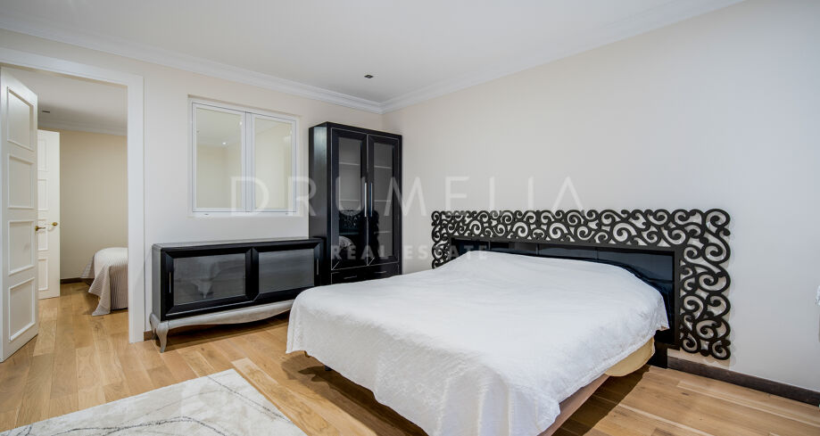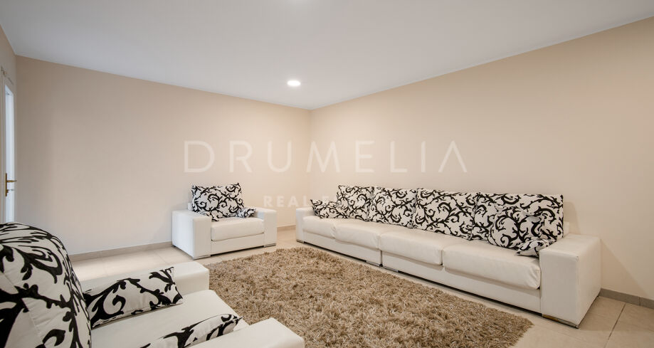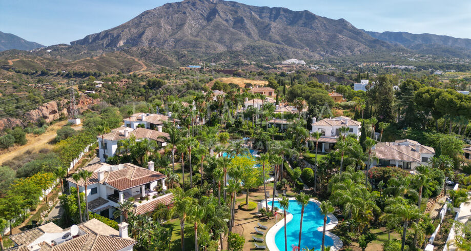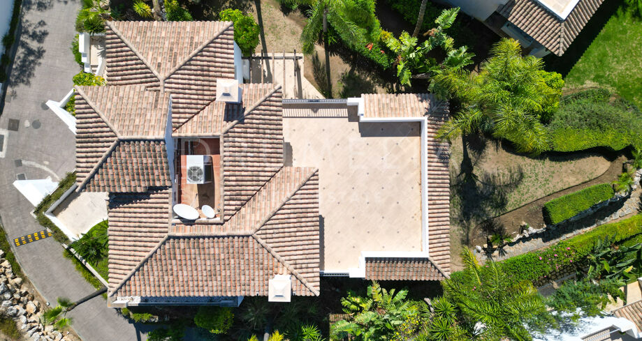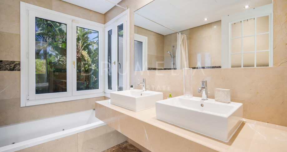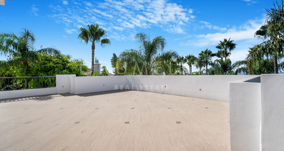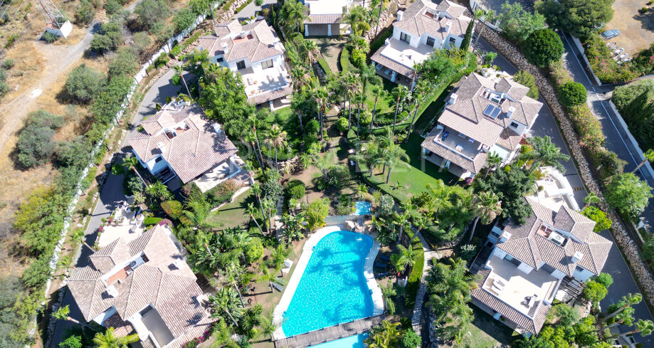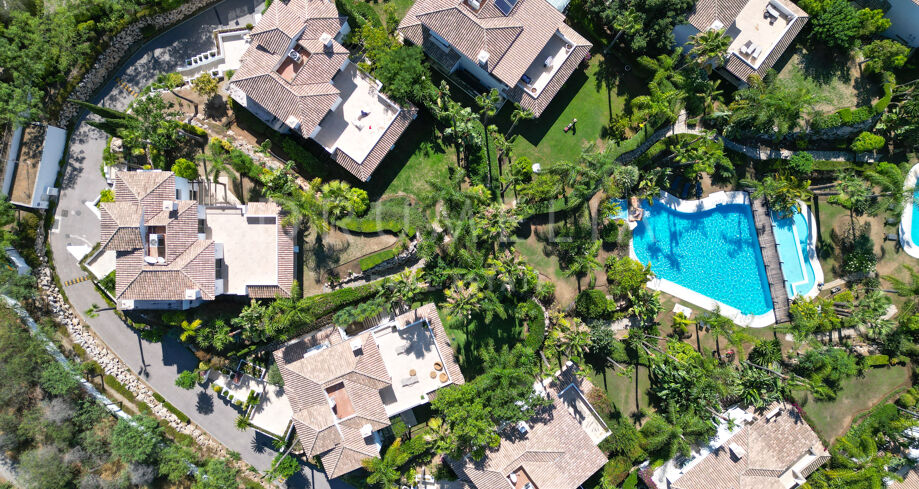 Cette villa orientée sud avec cinq chambres se trouve dans la résidence sécurisée Las Lomas de Magna Marbella, au cœur de la Milla de Oro. Le complexe offre une sécurité 24h/24, deux grandes piscines et de magnifiques jardins tropicaux, à proximité immédiate des plages, commerces, restaurants et golfs.