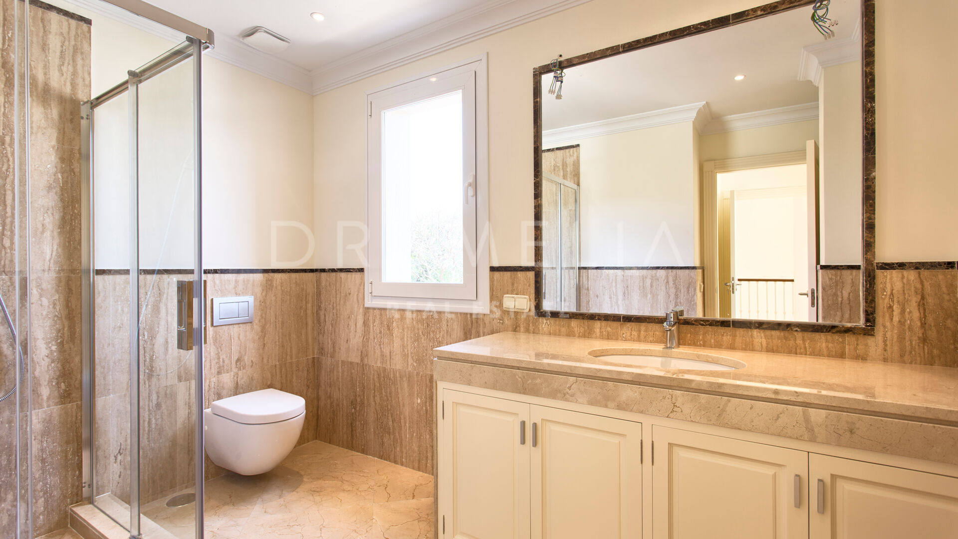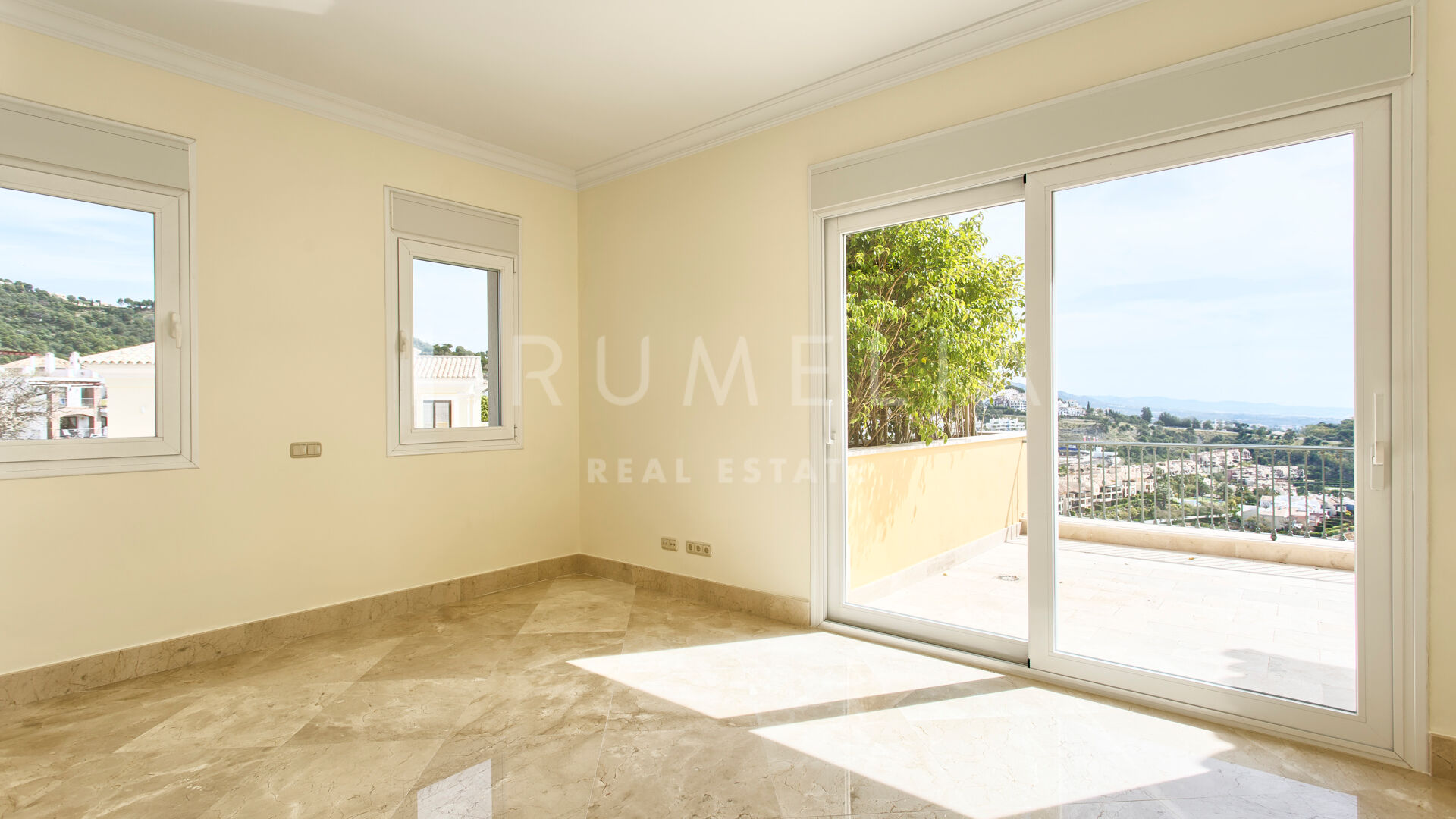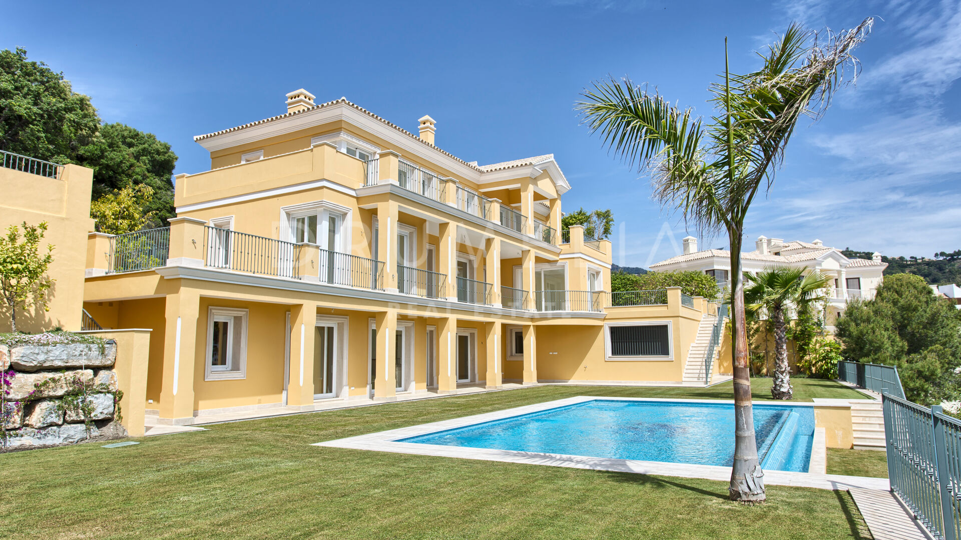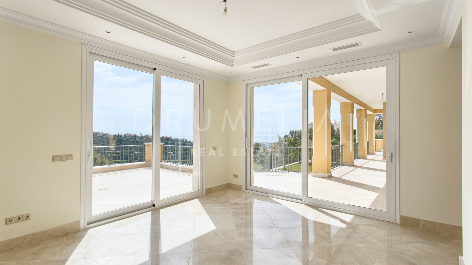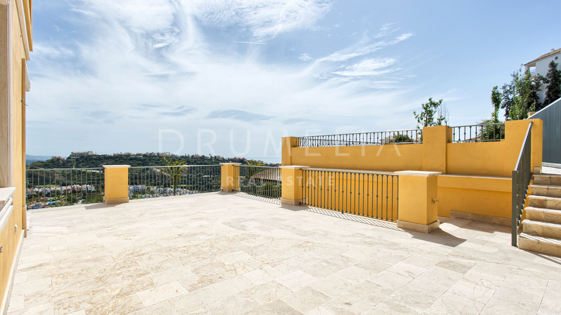 Grâce à sa position au sommet d’une colline et à son orientation sud-sud-est, la villa bénéficie d’une vue panoramique exceptionnelle sur la mer Méditerranée, Gibraltar et la côte africaine, la montagne emblématique de La Concha, les paisibles collines et vallées andalouses à la végétation luxuriante et les plantations d’oliviers. Beaucoup d’espace extérieur pour recevoir al fresco ou s’installer pour une soirée tranquille de repos, avec un livre ou un verre de bon vin espagnol en regardant les vues ou les célèbres couchers de soleil méditerranéens, une piscine de style moderne et un pavillon exotique avec toit africain idéal pour le barbecue doivent être mentionnés séparément. Les jardins paysagers bien entretenus attirent l’attention avec des pelouses vertes, des pins méditerranéens, des palmiers matures et des agrumes.