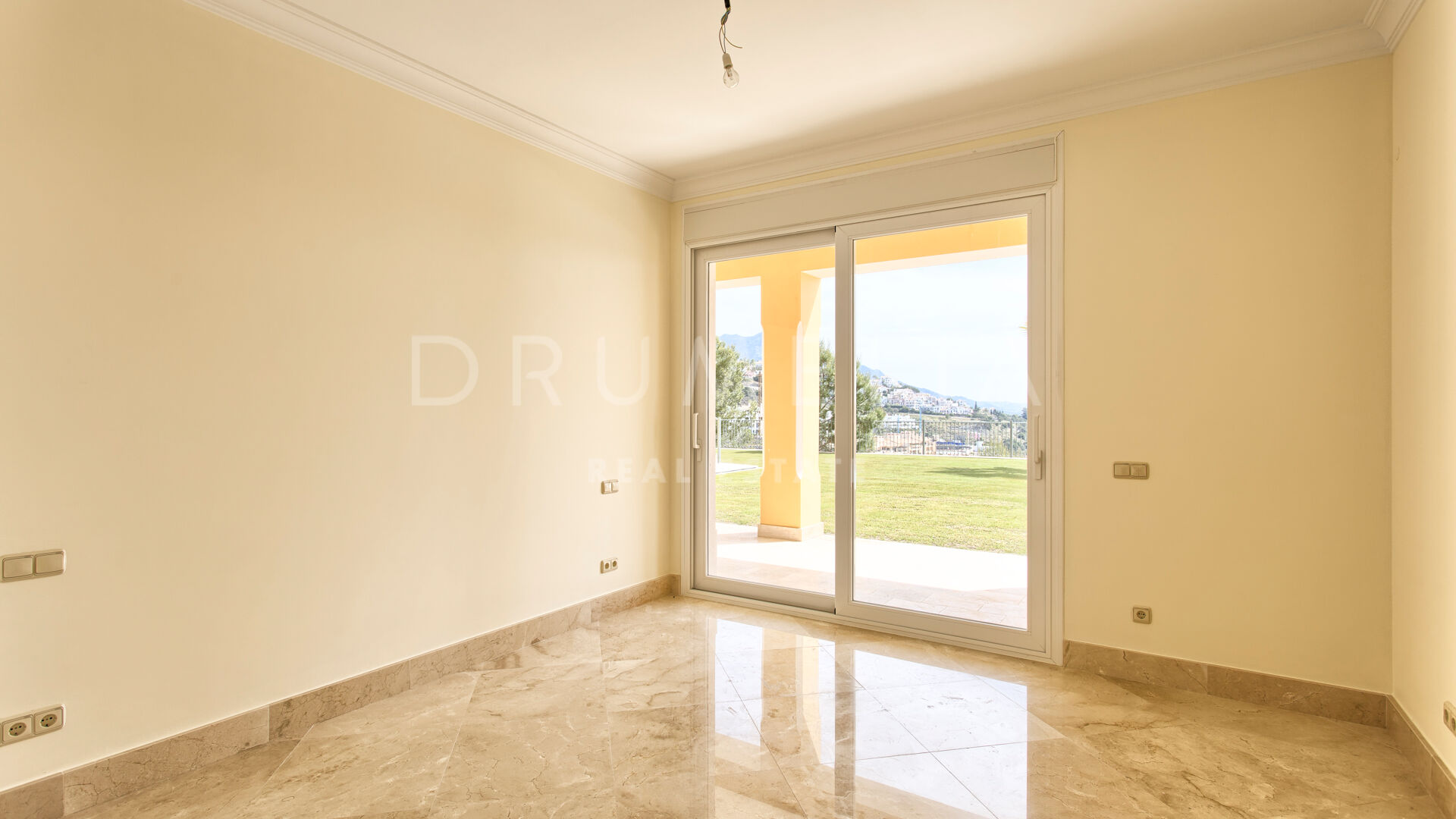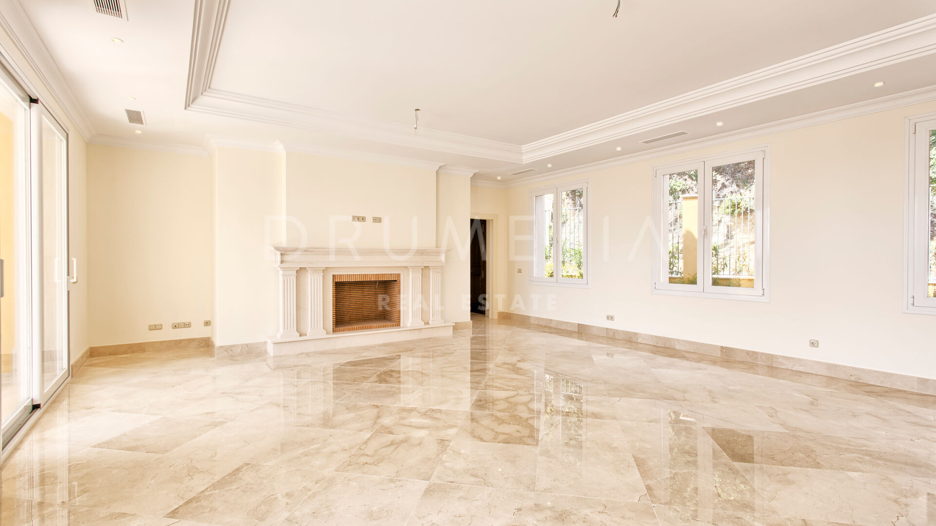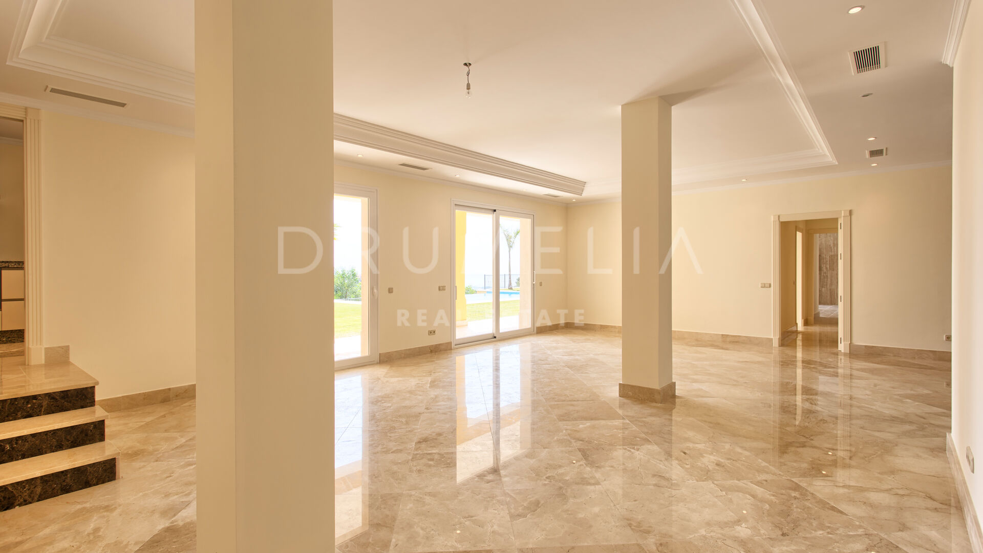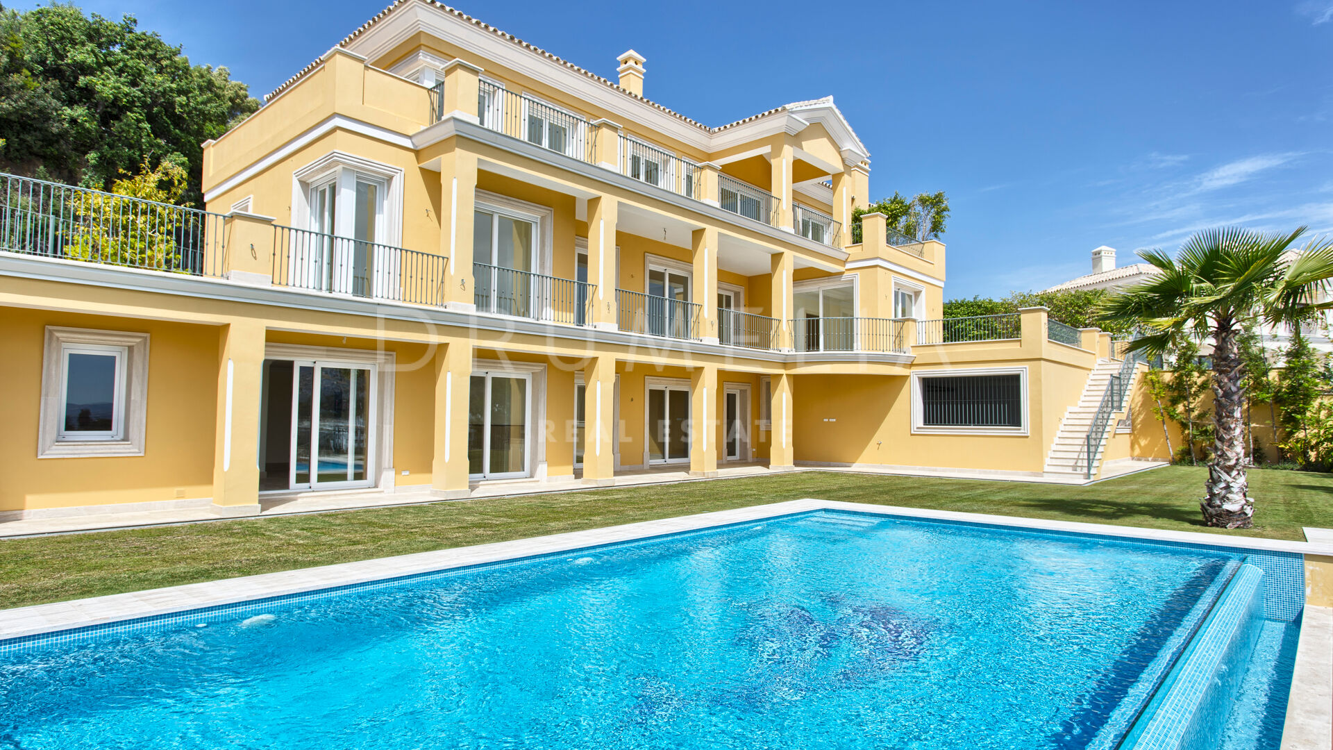Grâce à sa position au sommet d’une colline et à son orientation sud-sud-est, la villa bénéficie d’une vue panoramique exceptionnelle sur la mer Méditerranée, Gibraltar et la côte africaine, la montagne emblématique de La Concha, les paisibles collines et vallées andalouses à la végétation luxuriante et les plantations d’oliviers. Beaucoup d’espace extérieur pour recevoir al fresco ou s’installer pour une soirée tranquille de repos, avec un livre ou un verre de bon vin espagnol en regardant les vues ou les célèbres couchers de soleil méditerranéens, une piscine de style moderne et un pavillon exotique avec toit africain idéal pour le barbecue doivent être mentionnés séparément. Les jardins paysagers bien entretenus attirent l’attention avec des pelouses vertes, des pins méditerranéens, des palmiers matures et des agrumes.