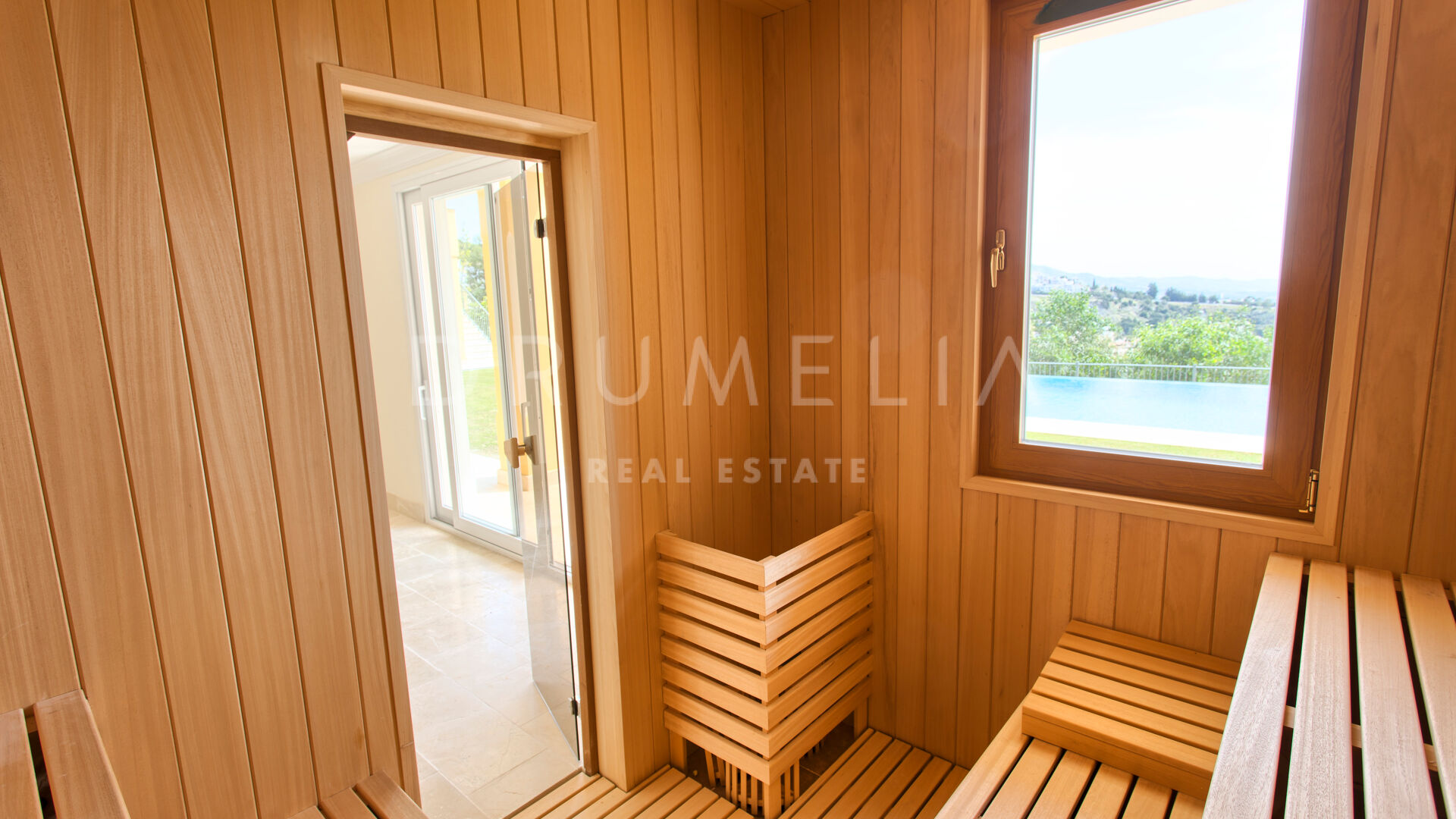 Créé dans un style méditerranéen moderne de qualité supérieure maison lumineuse et ensoleillée de 973 m² offre 3 étages. L’étage principal avec accès direct au patio, à la terrasse et à la piscine comprend un couloir, un grand salon avec cheminée, une salle à manger séparée, une cuisine entièrement équipée, deux toilettes pour les invités et une suite de chambre d’amis. L’étage supérieur abrite 3 chambres à coucher avec salles de bains de luxe : 2 suites d’invités et la suite principale avec dressing séparé. L’étage inférieur (rez-de-jardin), avec accès direct à la piscine et possibilité d’un appartement d’amis séparé, abrite une autre chambre d’amis avec salle de bains, des locaux pour le personnel, une buanderie, une deuxième cuisine, un garage pour 4 voitures, un espace de stockage et de fabuleux espaces de remise en forme et de divertissement avec salle de sport et toilettes, sauna et hammam, cinéma, salle de loisirs/jeux, cave à vin personnalisée avec des murs en verre.