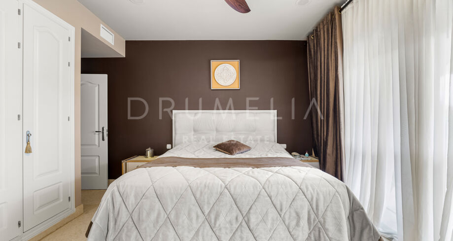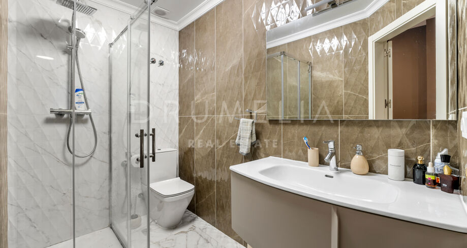 Ce magnifique appartement de 5 chambres et 5 salles de bain, situé dans la prestigieuse résidence Los Capanes del Golf à Benahavís, est une véritable perle de luxe moderne. Offrant 284 m² d’espaces de vie élégamment conçus et orienté au sud-est, il bénéficie d’une lumière naturelle abondante et de vues imprenables sur les montagnes et la campagne environnante. Récemment rénové avec des finitions impeccables, ce bien allie une élégance intemporelle à des équipements contemporains, créant un véritable havre de confort et de style.
