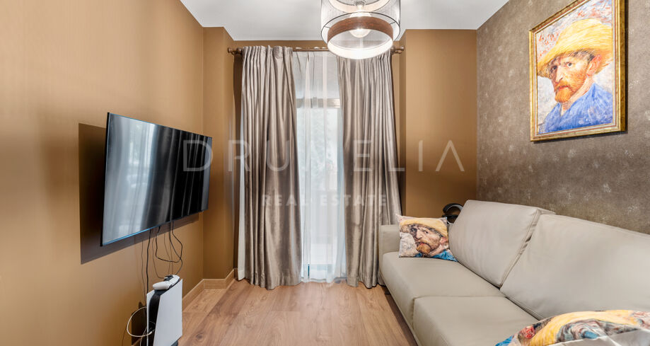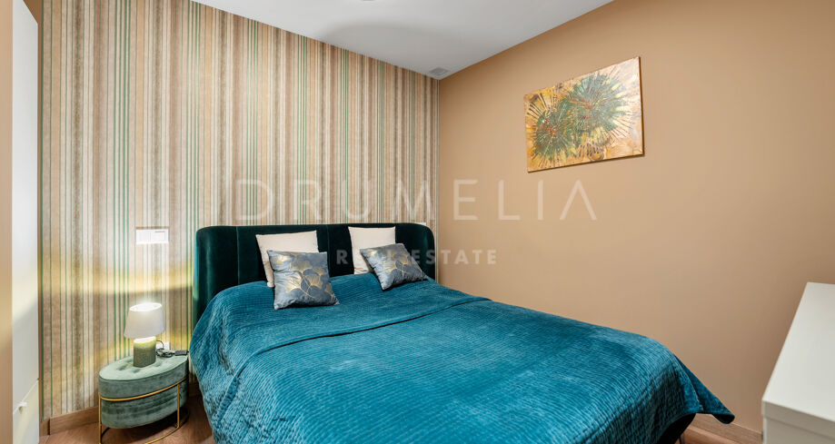 Chaque détail de cet appartement reflète le raffinement. La cuisine entièrement équipée et les intérieurs élégants sont complétés par des touches luxueuses comme le chauffage au sol dans les salles de bain et la climatisation dans toute la propriété. Profitez de moments paisibles sur votre terrasse privée ou votre balcon, ou recevez vos invités dans la terrasse couverte et l’espace barbecue entouré de jardins luxuriants.