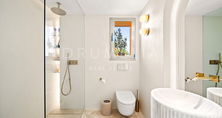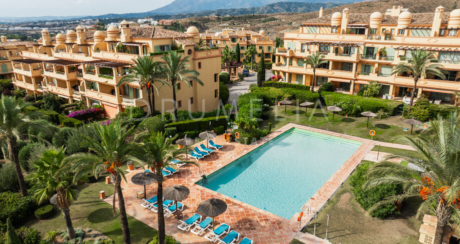Ce penthouse duplex rénové est situé à Four Seasons, Los Flamingos, une zone résidentielle privée et sécurisée reconnue pour ses jardins paysagers et sa proximité avec le Villa Padierna Golf & Hotel Resort. L’emplacement offre un équilibre entre tranquillité et commodité, Puerto Banús et Estepona étant accessibles en environ 15 minutes.