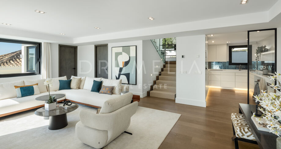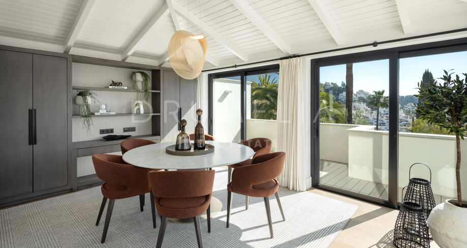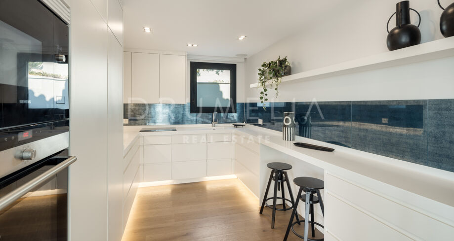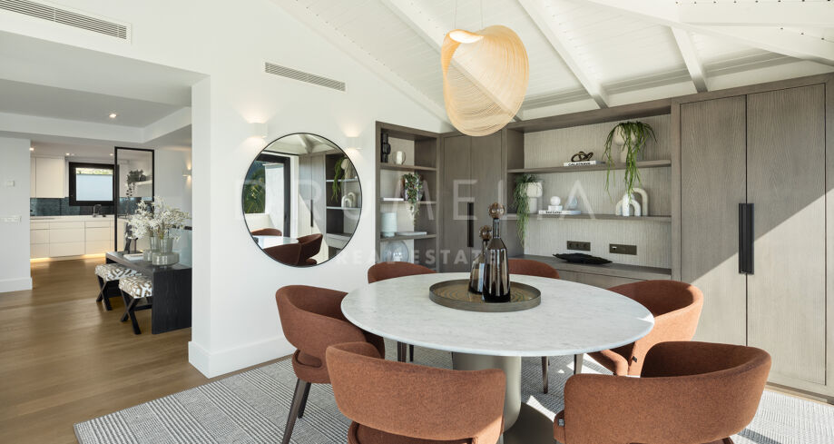 À l’intérieur, vous découvrirez un havre d’élégance, où des meubles et des accessoires incroyables ornent chaque coin, conçus par le célèbre cabinet d’architecture d’intérieur La Albaida. La fluidité entre le salon et la salle à manger est accentuée par de nombreuses fenêtres qui offrent des vues directes et un accès aux terrasses. La cuisine moderne, équipée d’appareils électroménagers de pointe, allie fonctionnalité et esthétique, et offre de nombreux espaces de rangement et de travail pour plus de commodité.