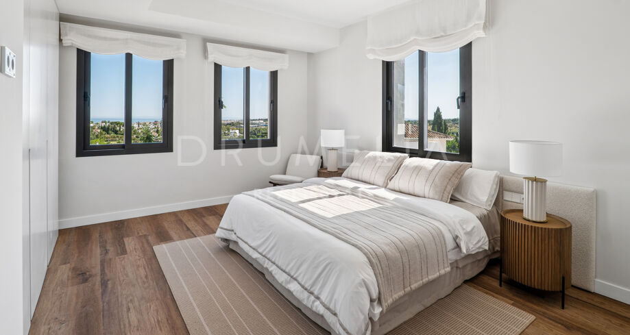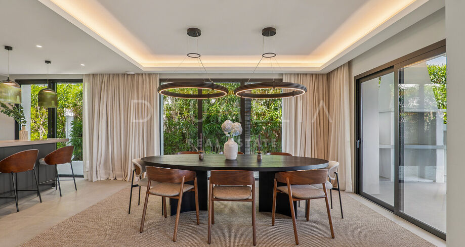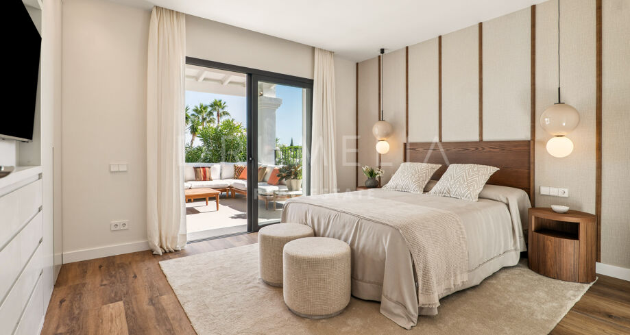 Cette élégante résidence méditerranéenne située dans le prestigieux quartier de Nueva Andalucía, Marbella, allie confort moderne et raffinement intemporel. Entièrement meublée et décorée avec goût, elle permet une installation immédiate dans un cadre de vie sophistiqué.