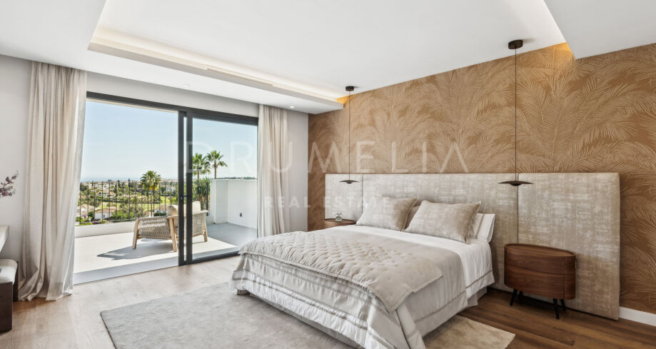 Avec 508 m² répartis sur trois niveaux spacieux, sur un terrain de 873 m², la propriété dispose de cinq chambres soigneusement aménagées et de cinq salles de bains modernes — idéale pour une famille ou recevoir des invités avec style. Son emplacement surélevé offre une vue panoramique sur la mer, avec de vastes terrasses parfaites pour profiter du soleil ou dîner en plein air.