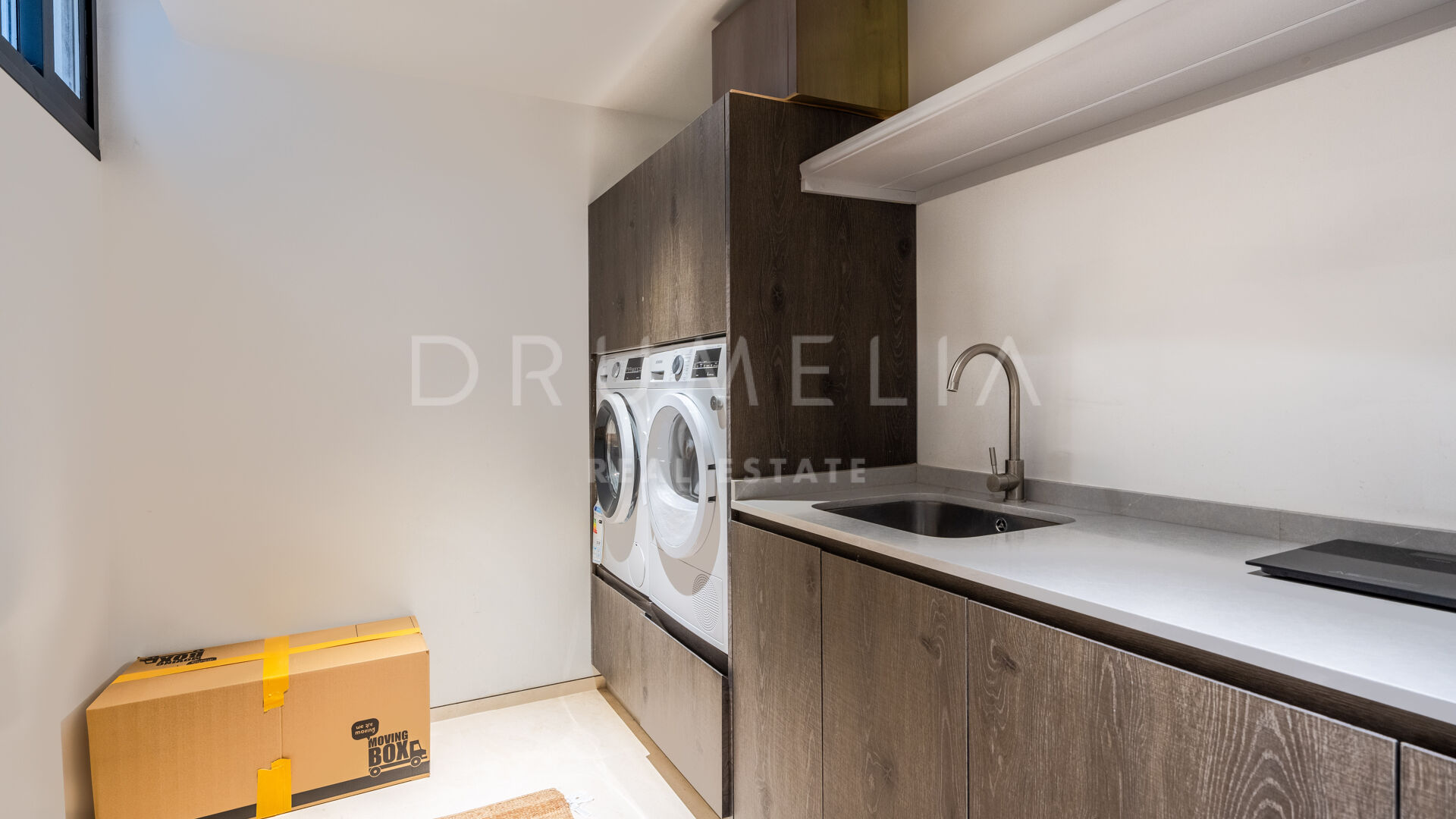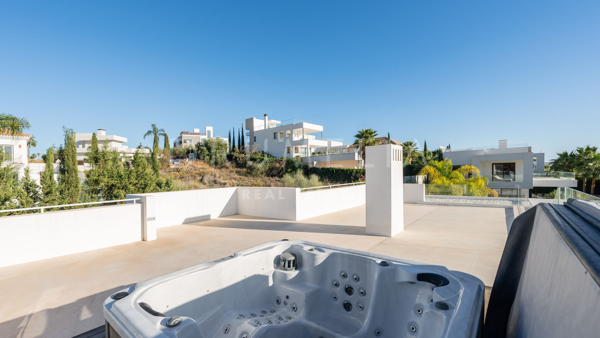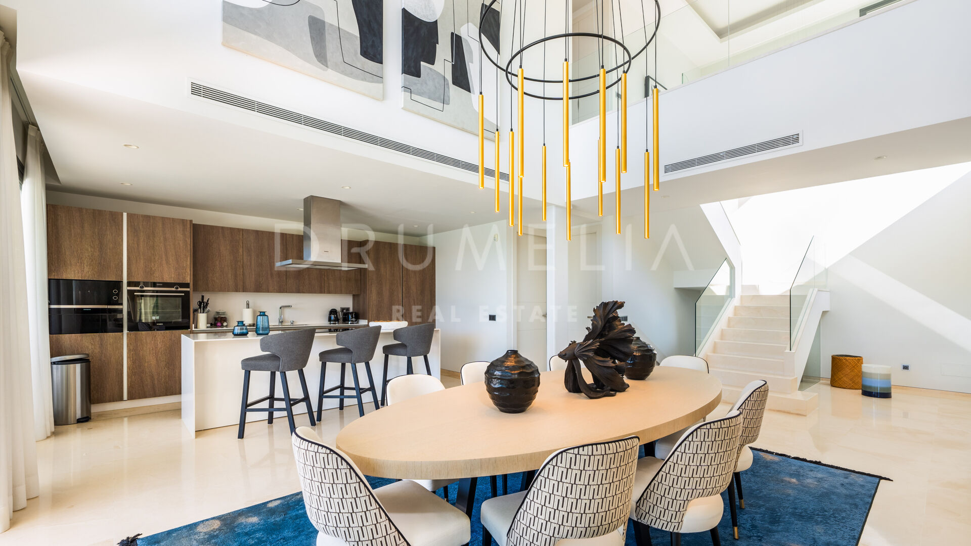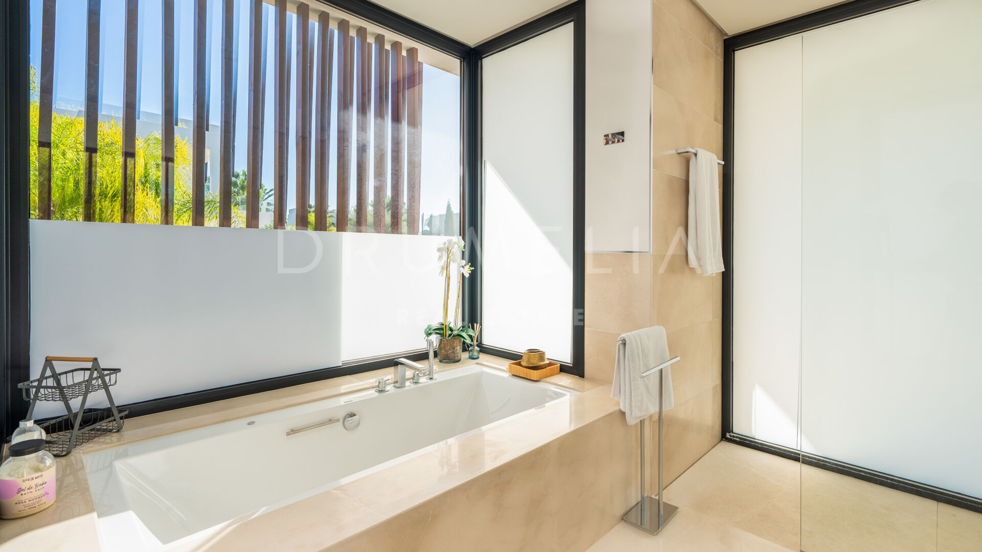 La maison de luxe écologique et économe en énergie est vendue meublée avec goût, avec des panneaux solaires, la climatisation, des salles de stockage et de lavage, des portes coulissantes, du double vitrage, un barbecue, des lumières LED, des armoires encastrées, des stores électriques et bien d’autres caractéristiques. Un service de sécurité 24 heures sur 24 dans la communauté fermée, un système d’alarme et des volets de sécurité vous apporteront la tranquillité d’esprit. Le design contemporain, les équipements de luxe et l’emplacement enviable font de cette propriété un véritable joyau au cœur de Nueva Andalucía. Plus que cela, vous avez l’opportunité de posséder non seulement une maison de luxe dans l’un des quartiers résidentiels les plus recherchés, mais aussi un style de vie de sophistication et de tranquillité dans la glorieuse station balnéaire méditerranéenne de Marbella.