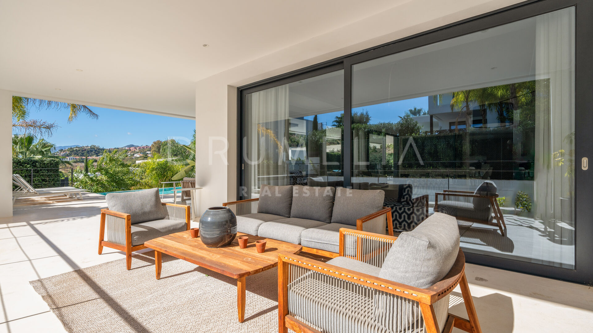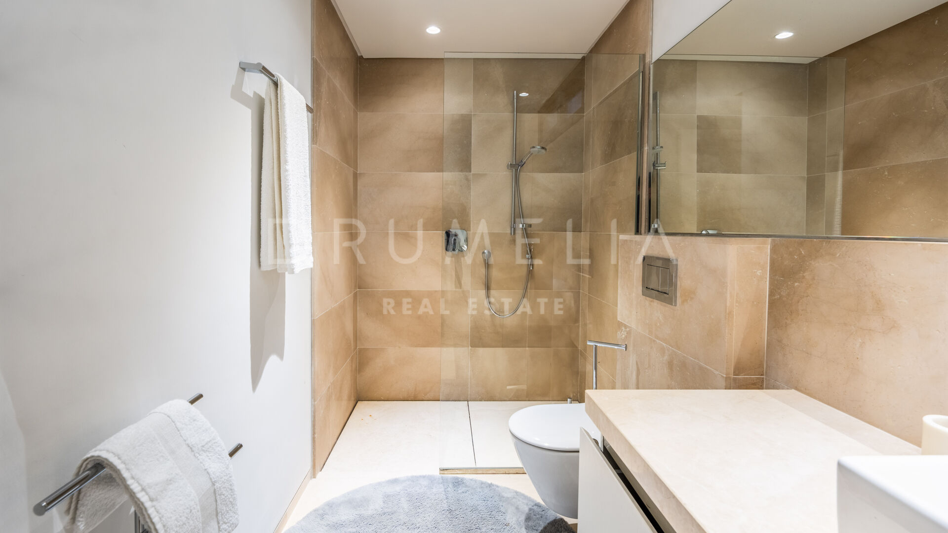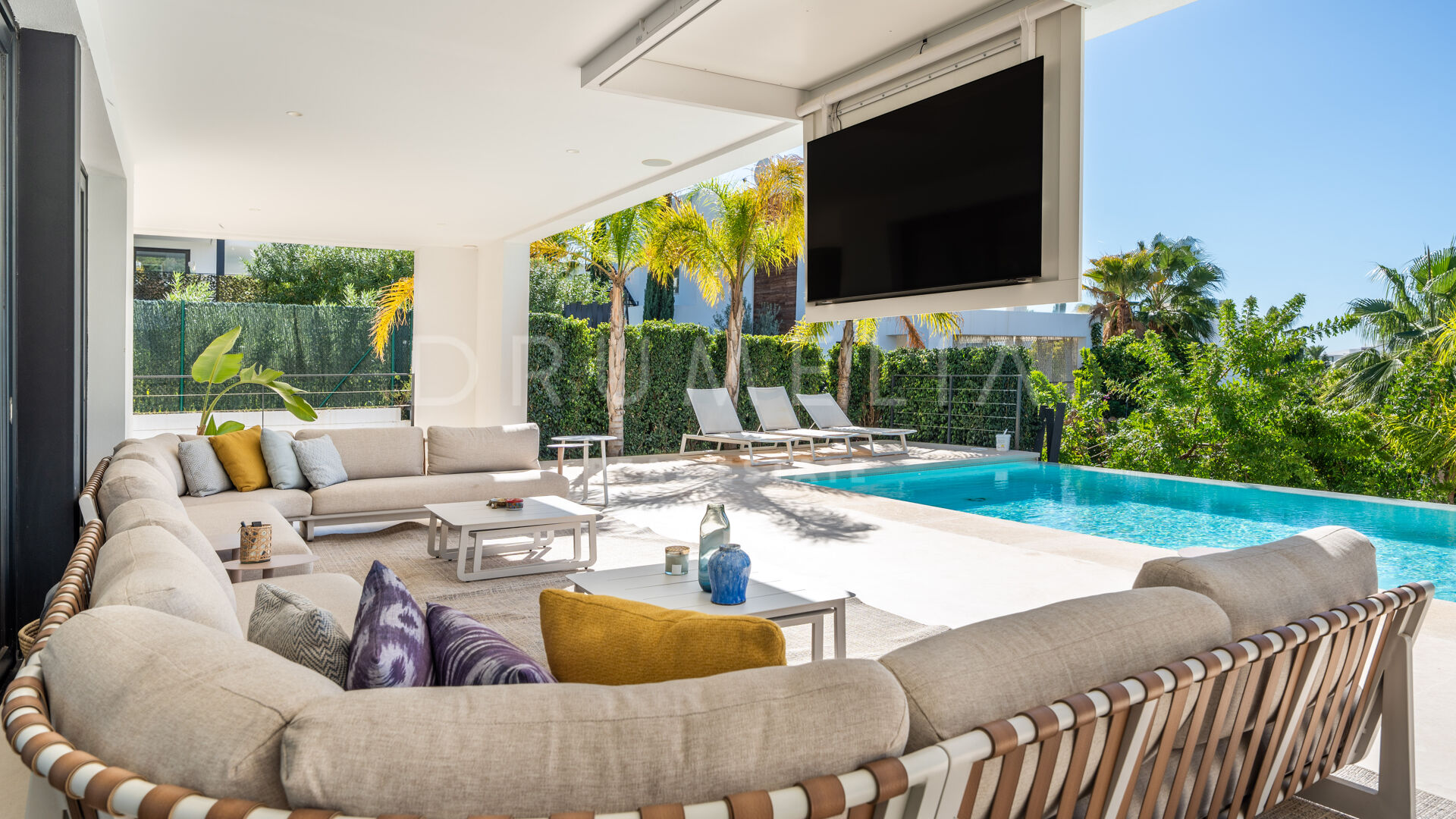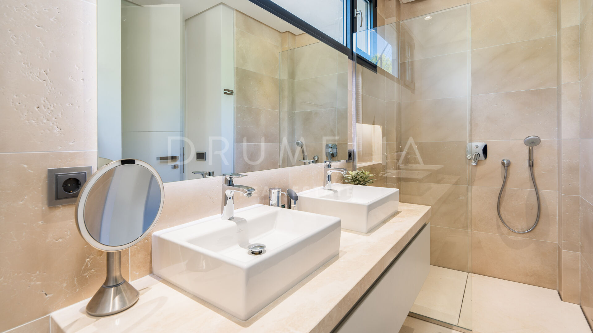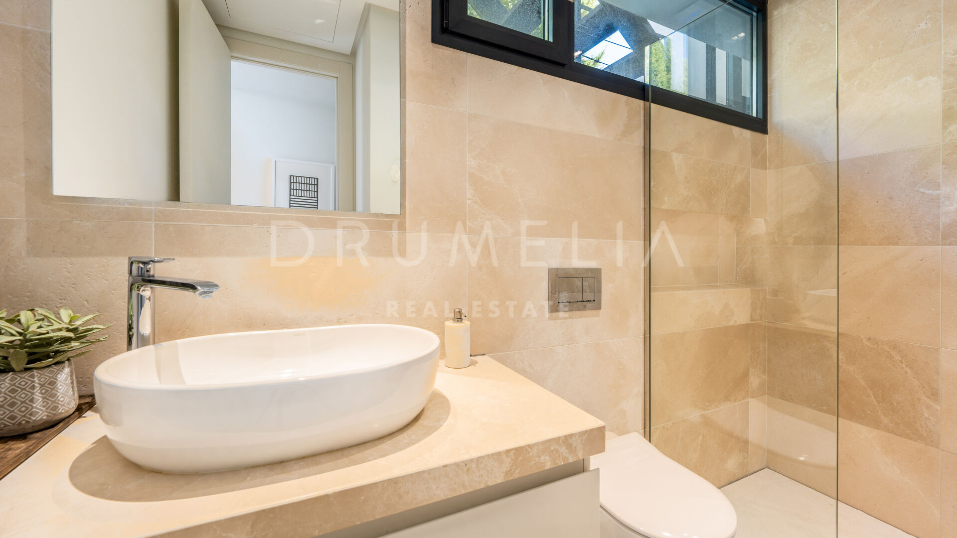 La maison de luxe écologique et économe en énergie est vendue meublée avec goût, avec des panneaux solaires, la climatisation, des salles de stockage et de lavage, des portes coulissantes, du double vitrage, un barbecue, des lumières LED, des armoires encastrées, des stores électriques et bien d’autres caractéristiques. Un service de sécurité 24 heures sur 24 dans la communauté fermée, un système d’alarme et des volets de sécurité vous apporteront la tranquillité d’esprit. Le design contemporain, les équipements de luxe et l’emplacement enviable font de cette propriété un véritable joyau au cœur de Nueva Andalucía. Plus que cela, vous avez l’opportunité de posséder non seulement une maison de luxe dans l’un des quartiers résidentiels les plus recherchés, mais aussi un style de vie de sophistication et de tranquillité dans la glorieuse station balnéaire méditerranéenne de Marbella.