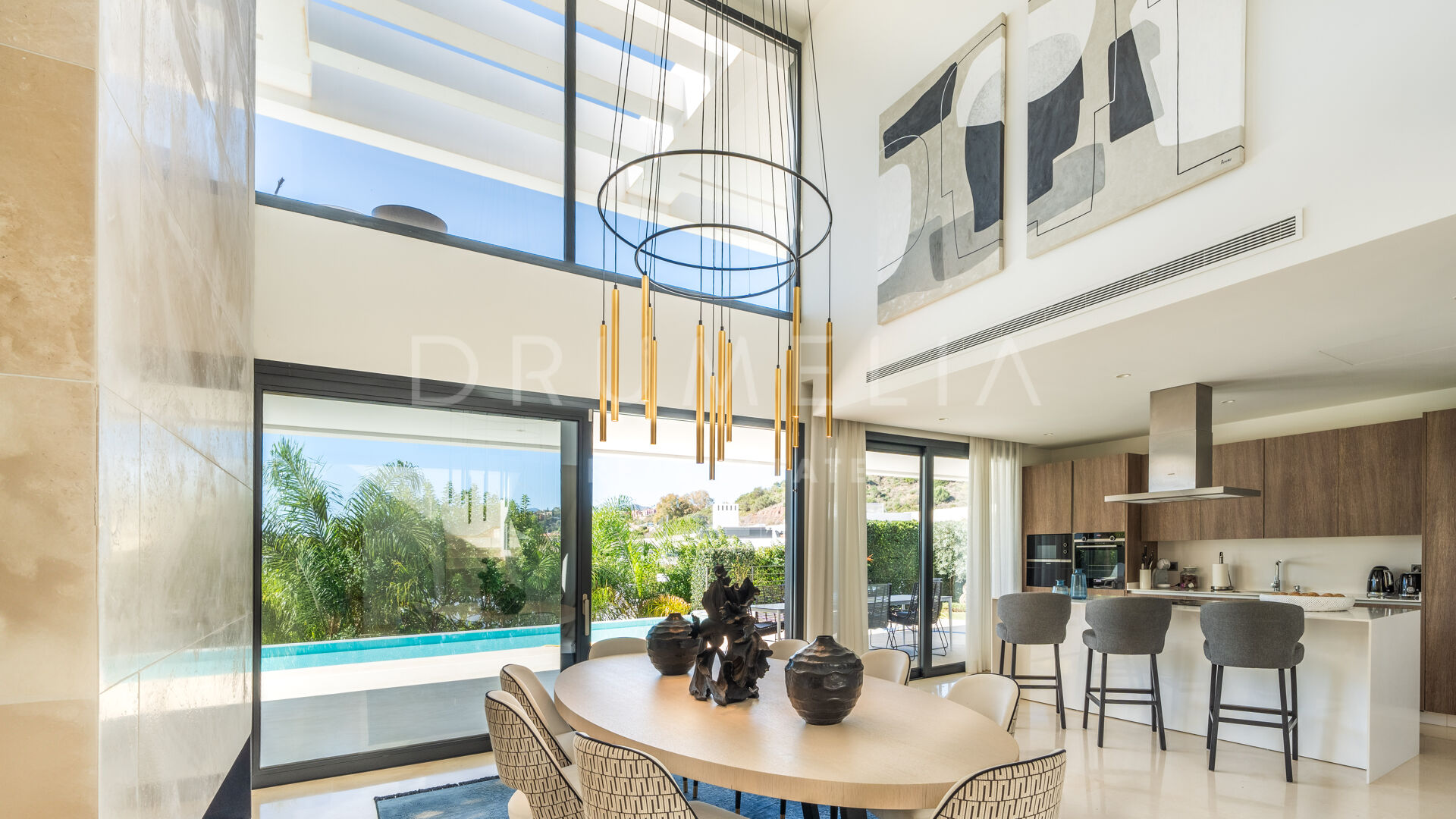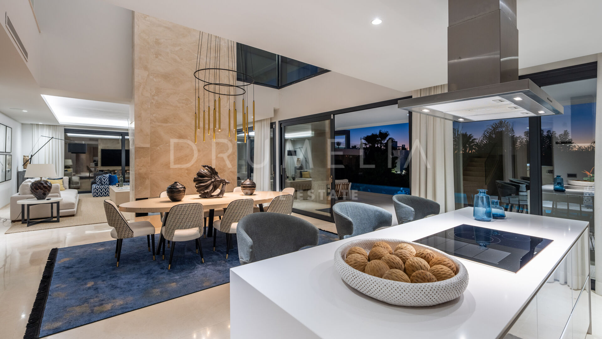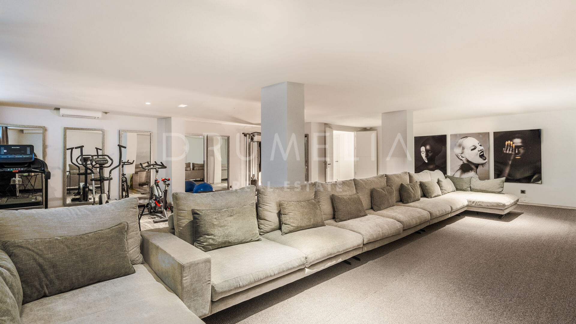 Entourée de propriétés similaires de grande qualité à Nueva Andalucia, cette villa est l’un des joyaux de la couronne du quartier. Son design moderne et sophistiqué offre les plus hauts standards de confort, avec des qualités de luxe dans toute la maison et une attention particulière aux détails. Étant l’une des plus grandes unités du quartier, elle présente l’avantage rare d’avoir deux points d’accès, garantissant à la fois l’intimité et la facilité d’accès pour les résidents. Le mobilier a été spécialement choisi pour obtenir le meilleur résultat et chaque recoin de cette maison respire l’opulence et le style. Les vastes espaces de vie et de repas sont méticuleusement conçus pour créer une aura d’espace, de luxe et de confort, ornés de finitions haut de gamme et de détails exquis qui redéfinissent le sens de la vie de luxe. Une cheminée moderne sépare un salon confortable et une salle à manger. Le cœur de cette merveille architecturale réside dans sa salle à manger à double hauteur et dans une cuisine ultramoderne et entièrement équipée au design contemporain épuré, taillée sur mesure pour les gourmets et les hôtes. Offrant sophistication et raffinement, cette superbe maison dispose de 6 chambres tranquilles et spacieuses et de 5 salles de bains modernes où vous pourrez vous adonner à l’expérience du SPA. Une salle de jeux invite à s’amuser avec les amis et les membres de la famille. Une salle de cinéma offre un cadre idéal pour les soirées cinéma. Une salle de sport vous permettra de rester en forme et en bonne santé.