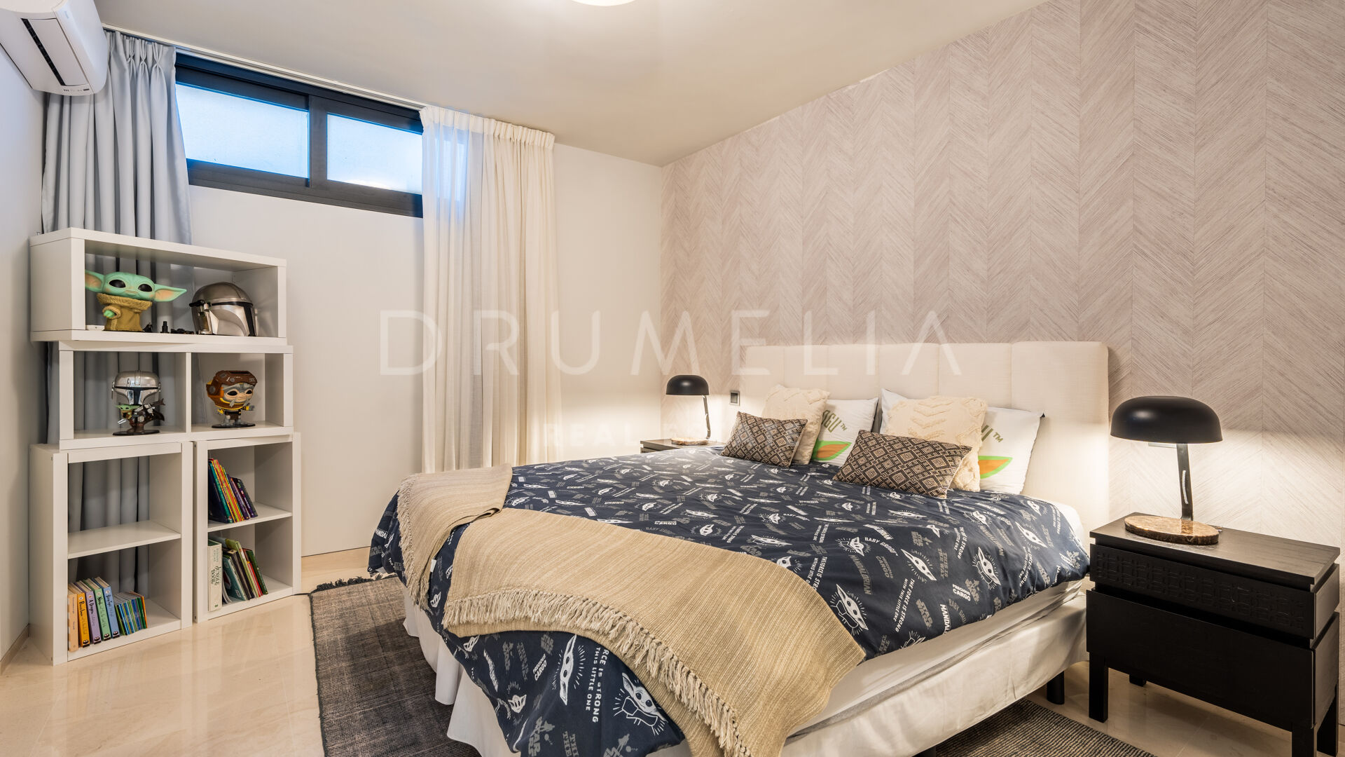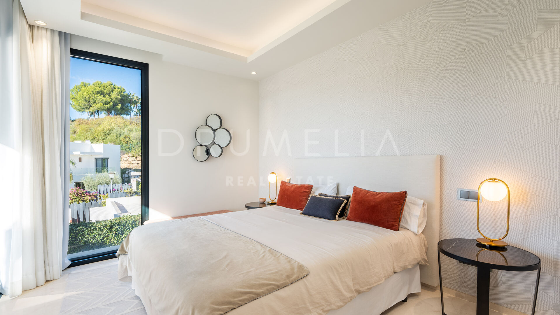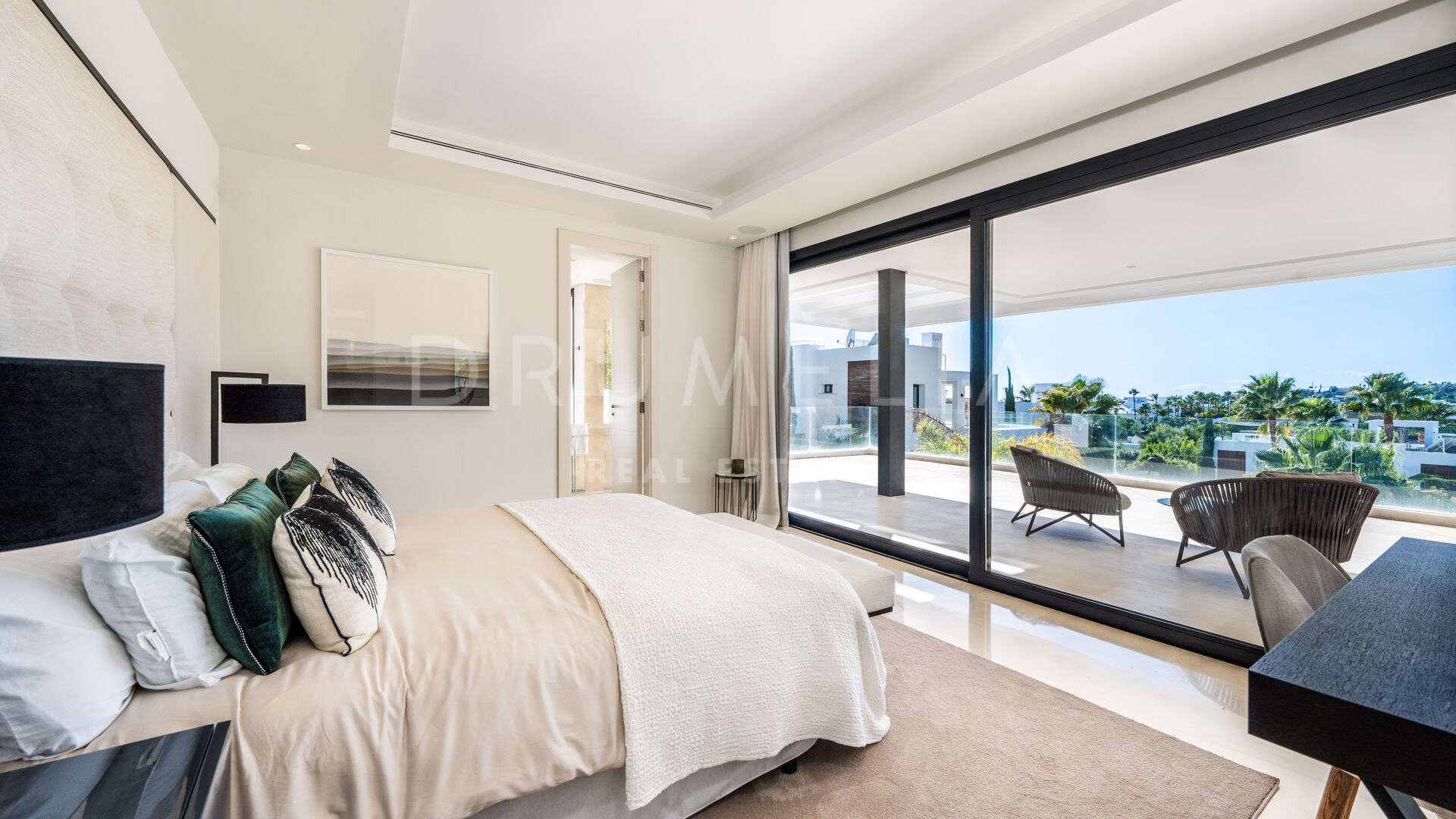 Entourée de propriétés similaires de grande qualité à Nueva Andalucia, cette villa est l’un des joyaux de la couronne du quartier. Son design moderne et sophistiqué offre les plus hauts standards de confort, avec des qualités de luxe dans toute la maison et une attention particulière aux détails. Étant l’une des plus grandes unités du quartier, elle présente l’avantage rare d’avoir deux points d’accès, garantissant à la fois l’intimité et la facilité d’accès pour les résidents. Le mobilier a été spécialement choisi pour obtenir le meilleur résultat et chaque recoin de cette maison respire l’opulence et le style. Les vastes espaces de vie et de repas sont méticuleusement conçus pour créer une aura d’espace, de luxe et de confort, ornés de finitions haut de gamme et de détails exquis qui redéfinissent le sens de la vie de luxe. Une cheminée moderne sépare un salon confortable et une salle à manger. Le cœur de cette merveille architecturale réside dans sa salle à manger à double hauteur et dans une cuisine ultramoderne et entièrement équipée au design contemporain épuré, taillée sur mesure pour les gourmets et les hôtes. Offrant sophistication et raffinement, cette superbe maison dispose de 6 chambres tranquilles et spacieuses et de 5 salles de bains modernes où vous pourrez vous adonner à l’expérience du SPA. Une salle de jeux invite à s’amuser avec les amis et les membres de la famille. Une salle de cinéma offre un cadre idéal pour les soirées cinéma. Une salle de sport vous permettra de rester en forme et en bonne santé.