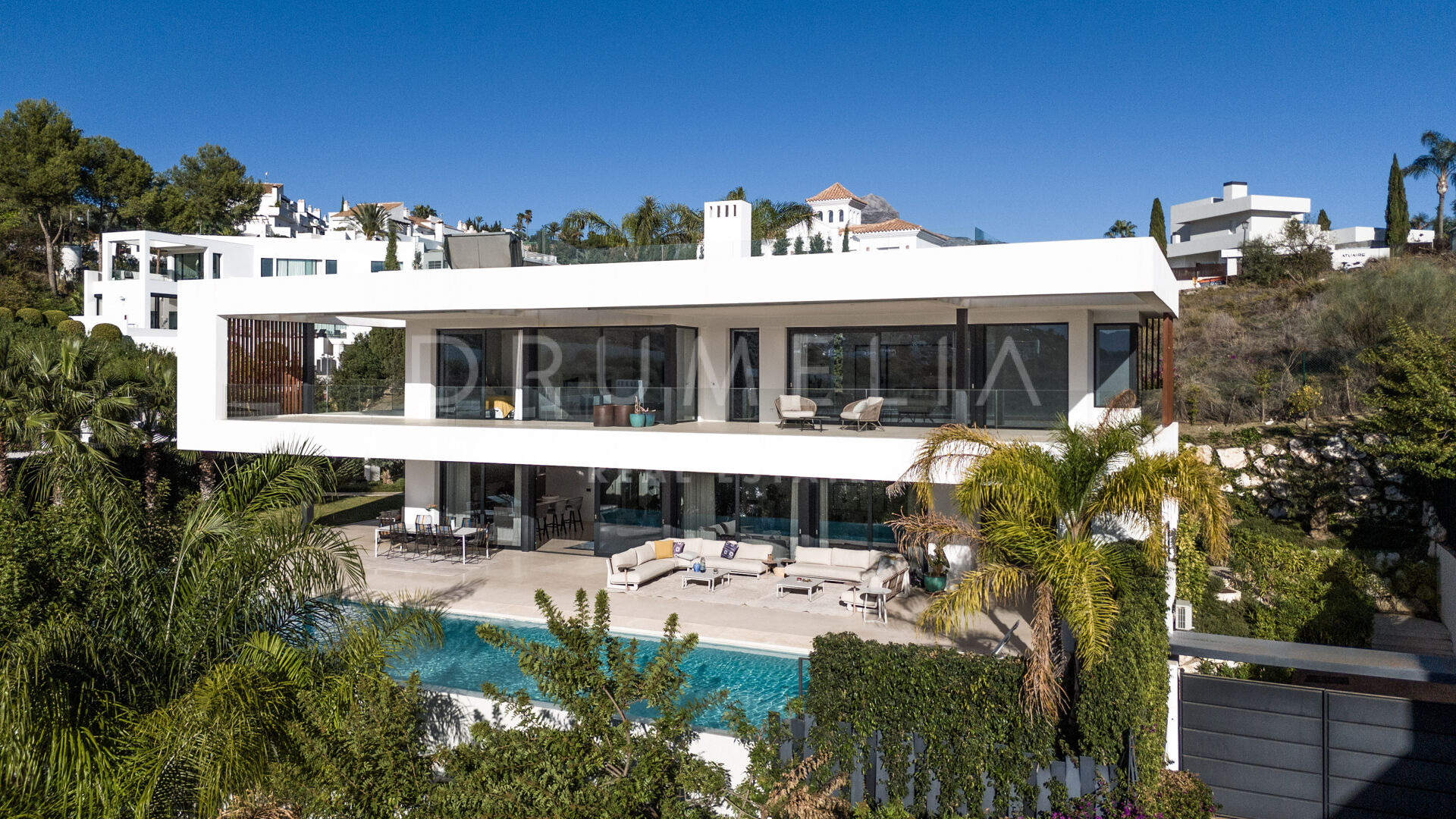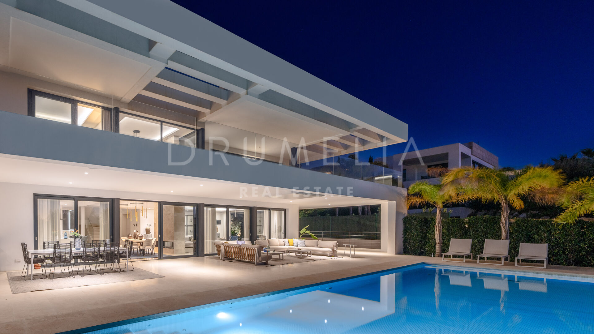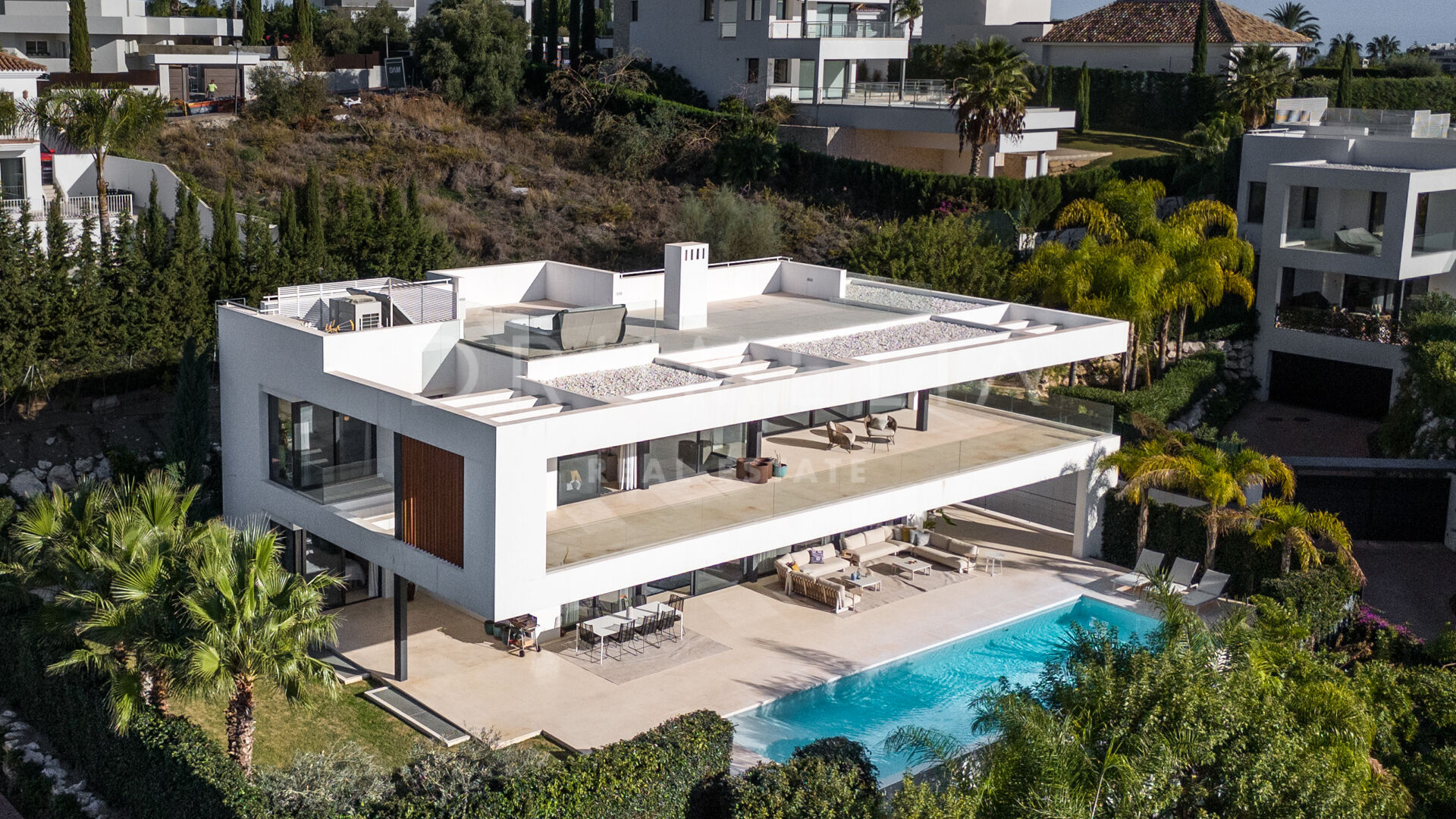 Cette villa moderne de 6 chambres au design contemporain élégant est proposée à la vente au cœur de la vallée du golf, à Marbella. Elle est située dans l’urbanisation exclusive de Los Olivos, nichée dans la prestigieuse enclave résidentielle de Haza del Conde, dans la magnifique Nueva Andalucía. Les environs offrent des vues pittoresques sur le paysage. La villa allie la sérénité d’un environnement méditerranéen naturel au meilleur de l’architecture contemporaine et à des matériaux et des finitions de grande qualité. Elle se trouve à proximité de toutes les commodités et de tous les services locaux, notamment des terrains de golf, des magasins et des supermarchés, des restaurants, des bars et des cafés bio, du casino, de plusieurs écoles internationales, de la Marbella Arena, des marchés en plein air et des installations sportives et de loisirs. L’hôtel se trouve également à proximité des plages de couleur bleue, des célèbres clubs de plage, des boutiques de créateurs et de la vie nocturne de la fabuleuse Puerto Banus. San Pedro et Marbella Center ne sont qu’à une minute en voiture.