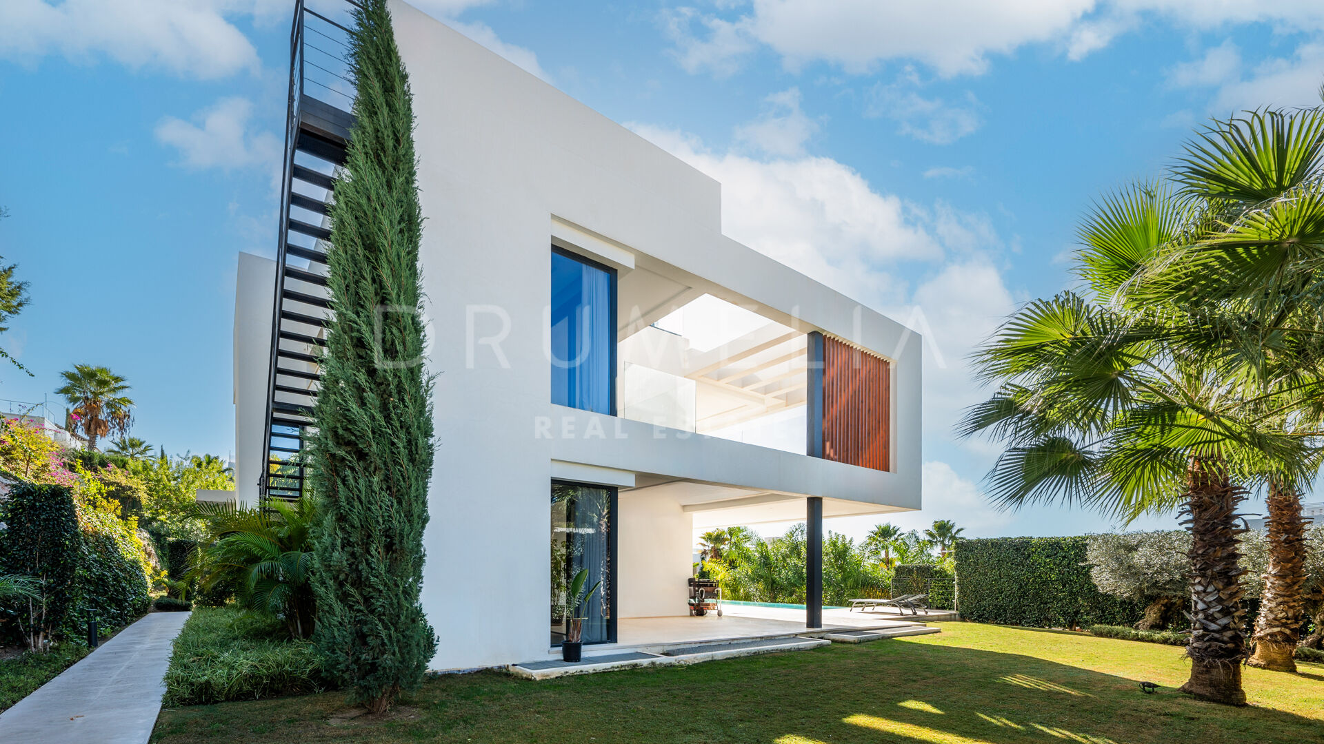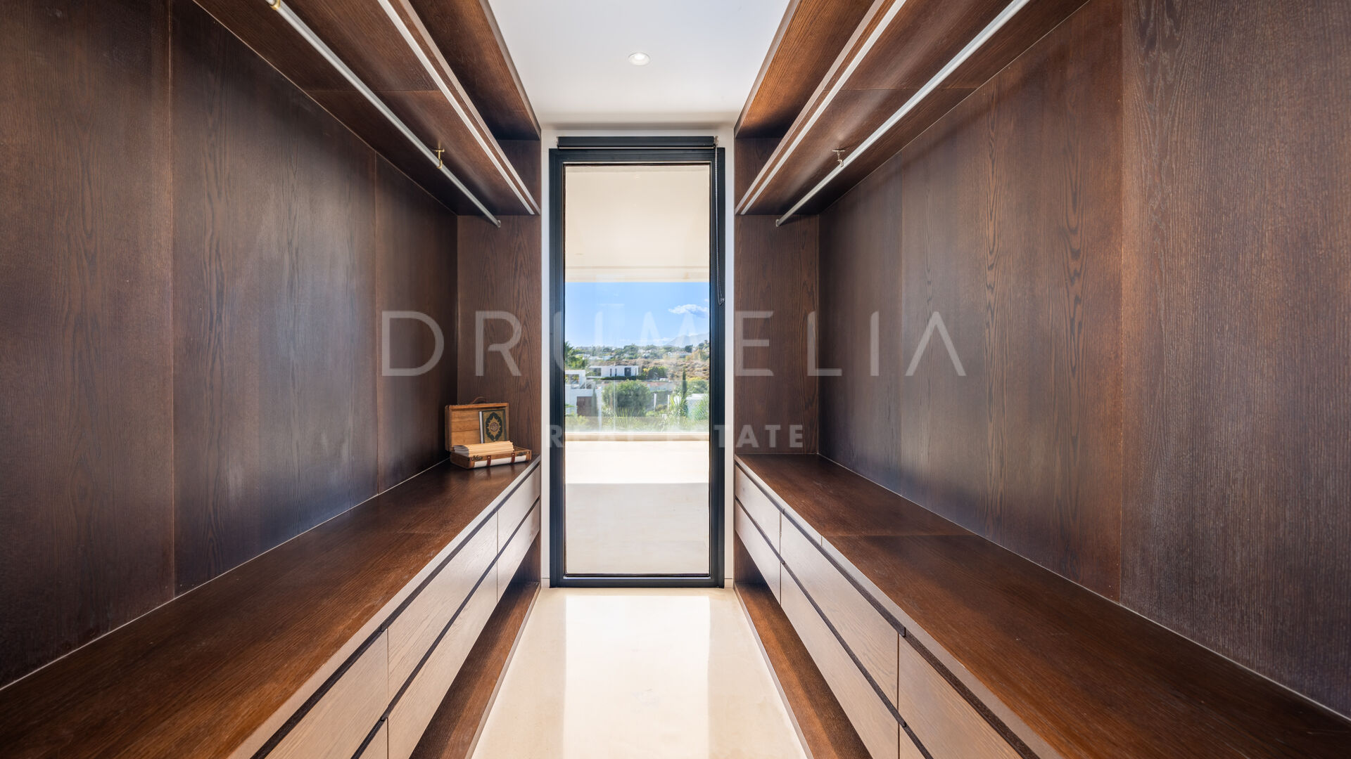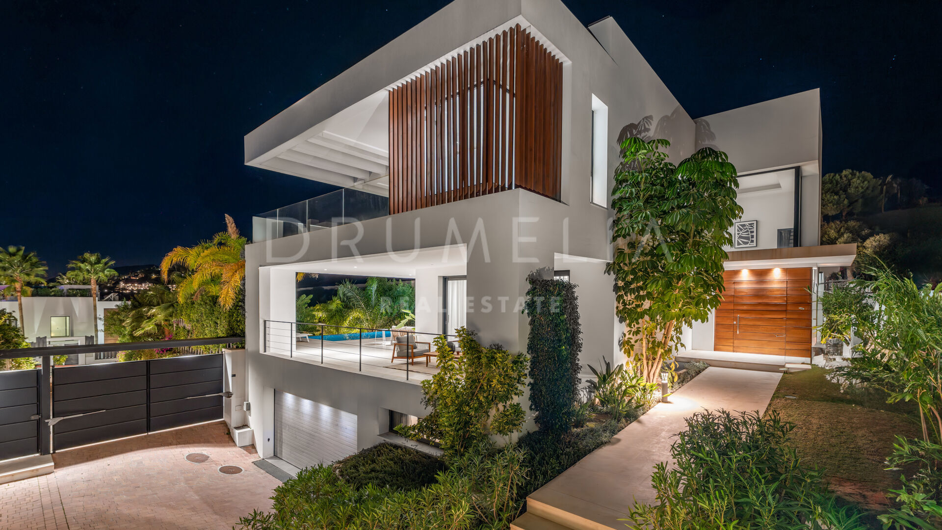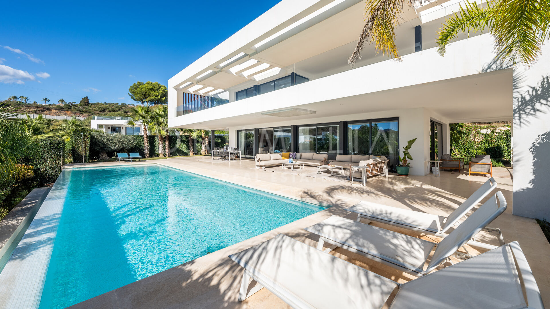 Cette villa moderne de 6 chambres au design contemporain élégant est proposée à la vente au cœur de la vallée du golf, à Marbella. Elle est située dans l’urbanisation exclusive de Los Olivos, nichée dans la prestigieuse enclave résidentielle de Haza del Conde, dans la magnifique Nueva Andalucía. Les environs offrent des vues pittoresques sur le paysage. La villa allie la sérénité d’un environnement méditerranéen naturel au meilleur de l’architecture contemporaine et à des matériaux et des finitions de grande qualité. Elle se trouve à proximité de toutes les commodités et de tous les services locaux, notamment des terrains de golf, des magasins et des supermarchés, des restaurants, des bars et des cafés bio, du casino, de plusieurs écoles internationales, de la Marbella Arena, des marchés en plein air et des installations sportives et de loisirs. L’hôtel se trouve également à proximité des plages de couleur bleue, des célèbres clubs de plage, des boutiques de créateurs et de la vie nocturne de la fabuleuse Puerto Banus. San Pedro et Marbella Center ne sont qu’à une minute en voiture.