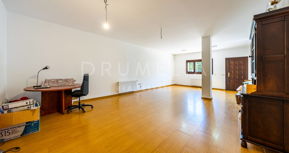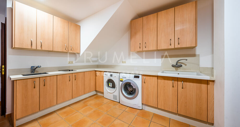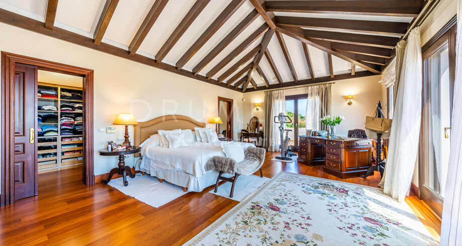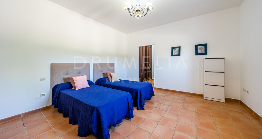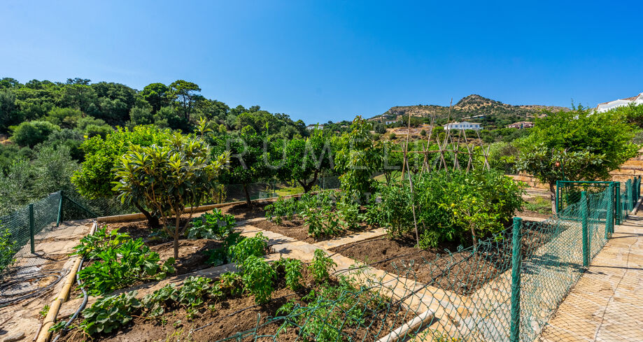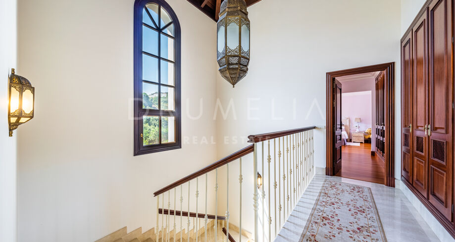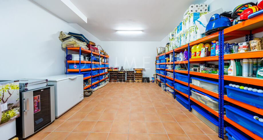 L’étage supérieur comprend une suite d’invités et une chambre principale avec parquet, une salle de bains pour elle et lui, un énorme dressing et un accès à la grande terrasse. Le sous-sol comprend 2 autres chambres à coucher avec salle de bain, un logement pour les femmes de chambre avec son propre accès, une grande buanderie et un accès au garage pour 4-6 voitures. Il y a également un parking extérieur pour 8 à 10 voitures. Le terrain dispose de jardins subtropicaux paysagers avec une belle zone de verger, et une piscine avec des zones de bronzage.