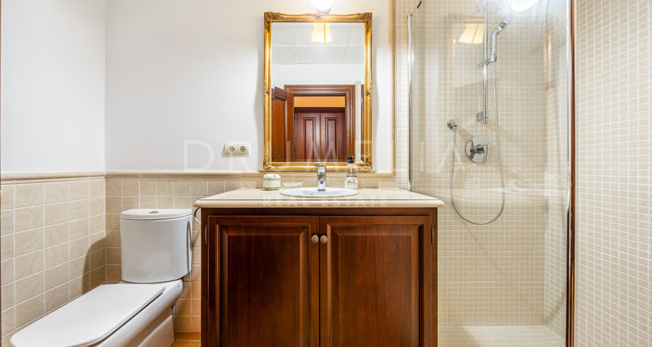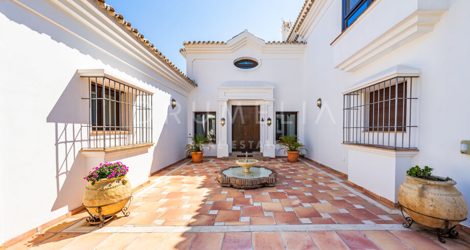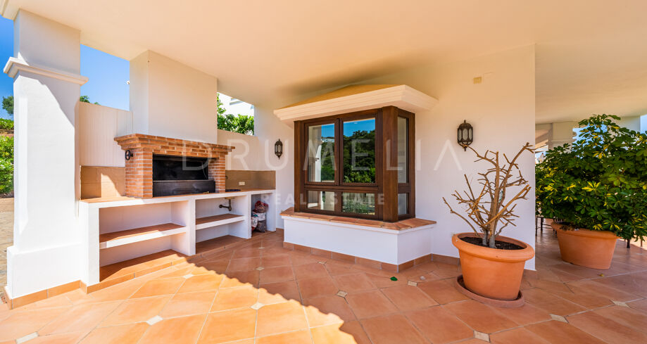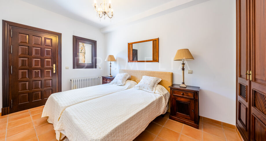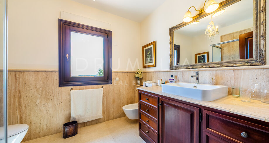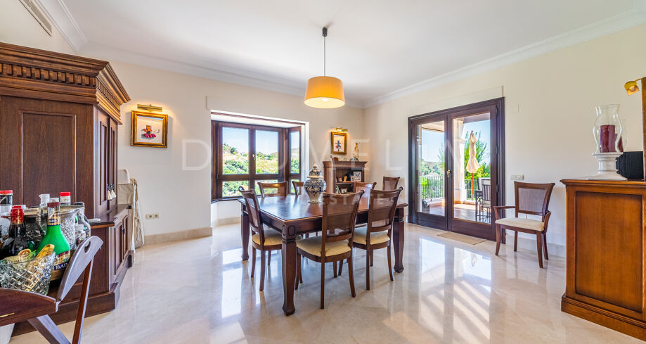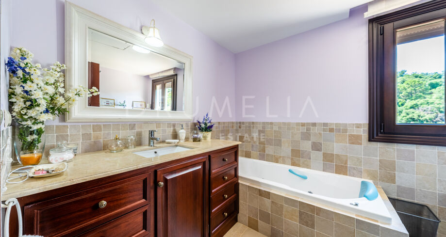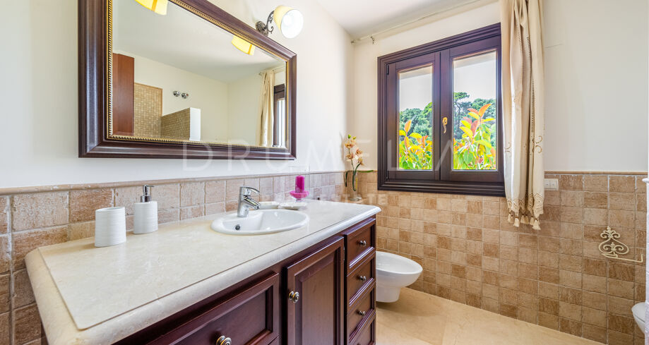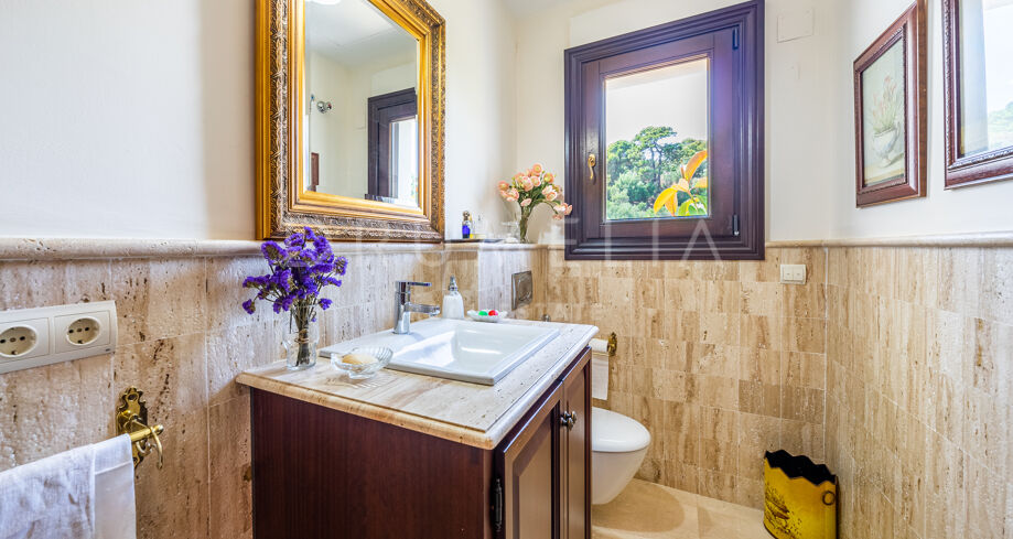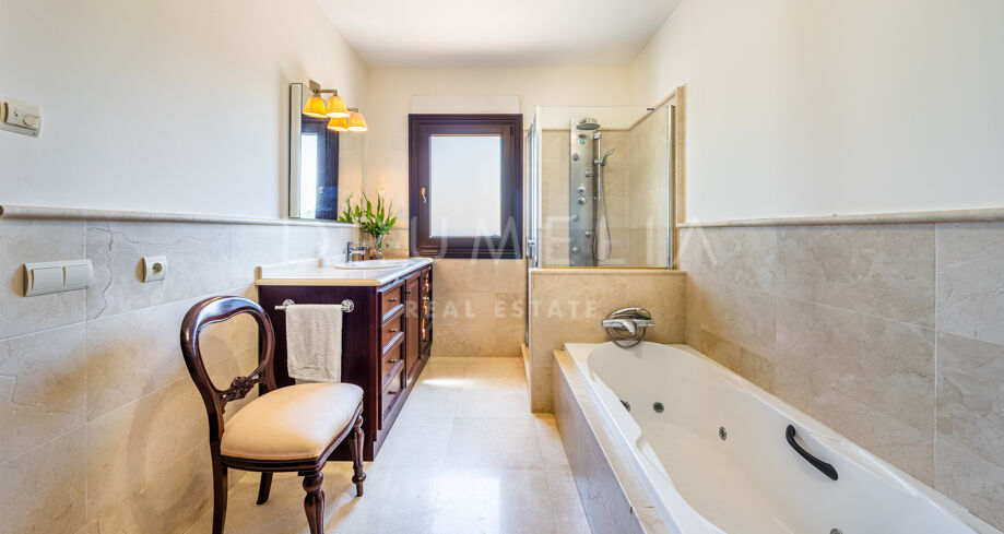 Cette villa haut de gamme est proposée à la vente en excellent état, avec panneaux solaires, sols en marbre avec chauffage au sol (partiel), climatisation, stores électriques, double vitrage, etc. De nombreuses caractéristiques ajoutent de l’exclusivité et rendent la vie encore plus agréable et confortable : un appartement séparé, une salle de cinéma, une cheminée, un sauna, un barbecue, de magnifiques terrasses couvertes et ensoleillées de 135 m². La tranquillité d’esprit est garantie par le haut niveau de sécurité ! La maison est entièrement équipée d’une alarme, d’une entrée vidéo et de caméras à l’intérieur et à l’extérieur. Marbella Club Golf Resort est une communauté fermée avec un service de sécurité 24 heures sur 24 et un accès restreint.