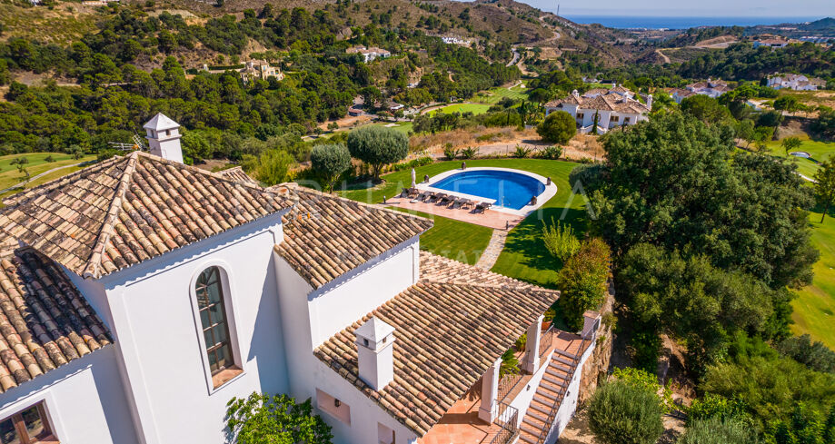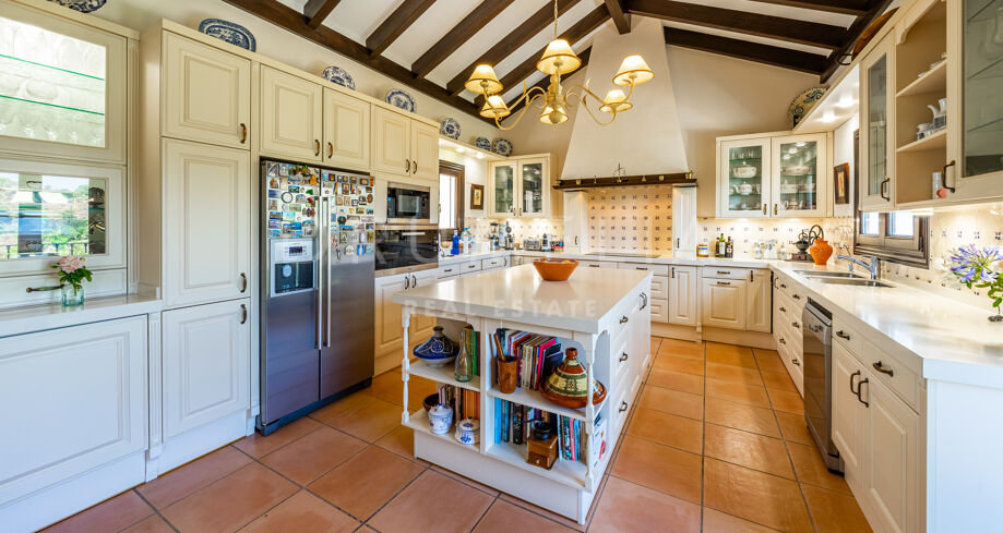 Située sur un grand terrain plat de 3 240 m², au milieu des collines verdoyantes de Benahavis, cette villa de style méditerranéen de 700 m² orientée sud a été achevée en 2008 avec le souci du détail. Elle est entourée de paysages andalous bucoliques, de zones boisées, de terrains de golf, de collines et de montagnes paisibles, ainsi que des propriétés haut de gamme similaires du Marbella Club Golf Resort. Cette maison offre 3 niveaux et dispose de logements spacieux pleins de lumière, de soleil et d’air. Au rez-de-chaussée, vous trouverez un salon, une salle à manger séparée, un salon ou un bureau, une grande cuisine entièrement équipée avec des appareils de qualité supérieure et une chambre avec salle de bains en-suite.