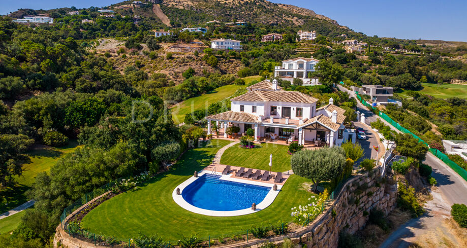 Cette villa de golf en première ligne à vendre à Marbella Club Golf Resort, Benahavis, est le rêve méditerranéen ultime ! Elle a tout pour plaire : un emplacement dans l’un des plus prestigieux complexes de golf, un intérieur classique, des finitions luxueuses, un confort moderne et, bien sûr, une vue panoramique imprenable sur le golf et la mer. Les montagnes d’Andalousie et les montagnes du Rif en Afrique, Gibraltar et le littoral sont visibles sous tous les angles. Fabuleux !
