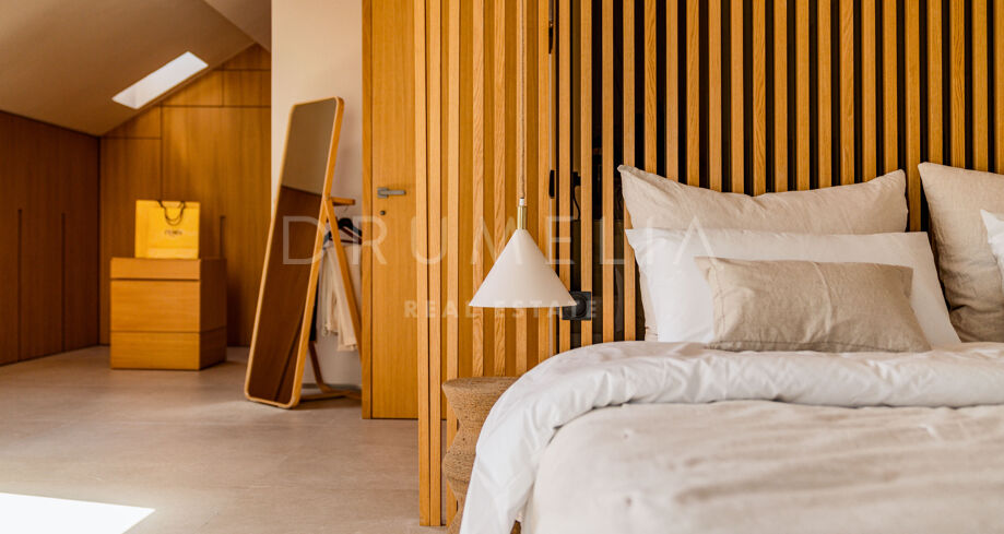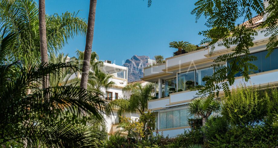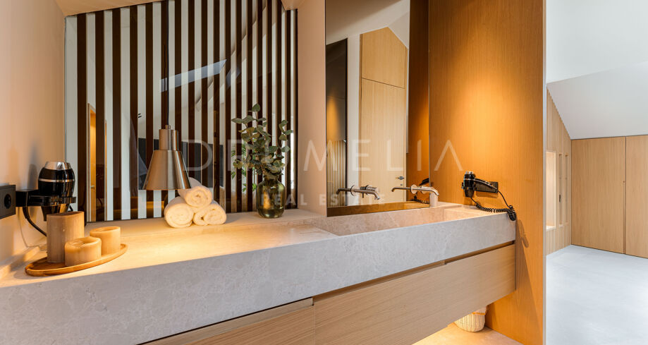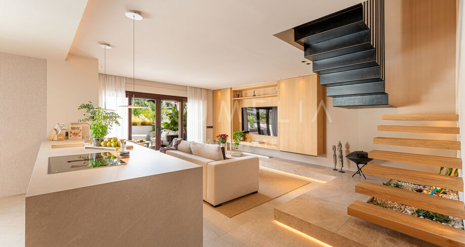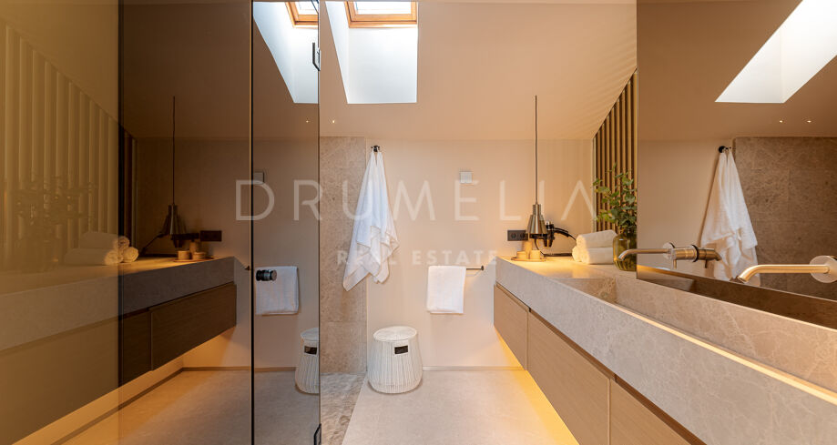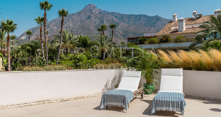 Ce duplex‑penthouse élégant à Lomas del Rey, Marbella Golden Mile, allie confort, technologie et design contemporain. Entièrement rénové avec des matériaux de haute qualité, il offre une ambiance moderne et fonctionnelle avec des systèmes de domotique, climatisation Air Zone, chauffage par le sol, éclairage LED, système audio intégré et volets automatisés. La propriété bénéficie d’une vue sur la montagne de La Concha et sur les jardins communautaires, créant un environnement serein et exclusif.