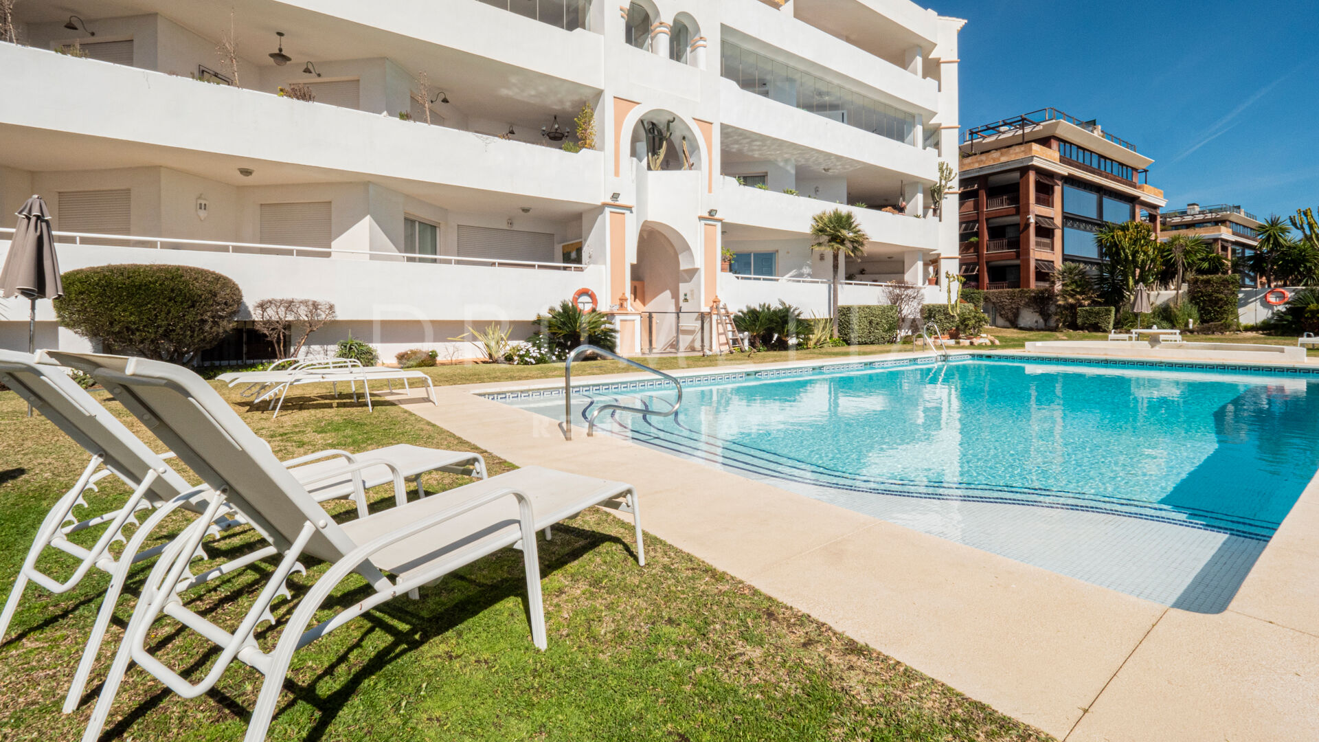 La communauté dispose de jardins paysagers, d’une piscine et d’un accès direct à la plage, ainsi qu’un ascenseur et une entrée sécurisée.