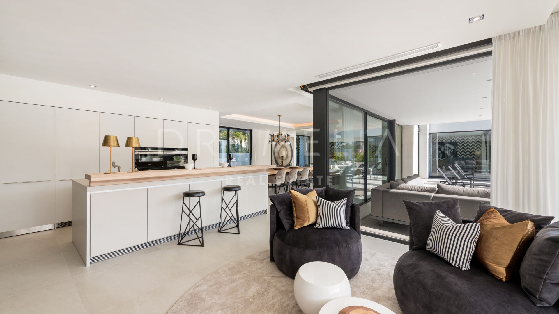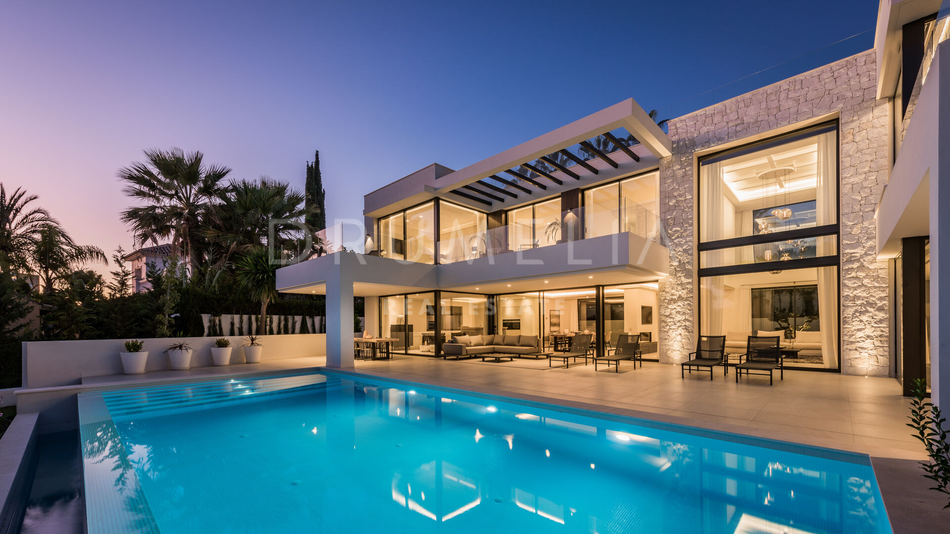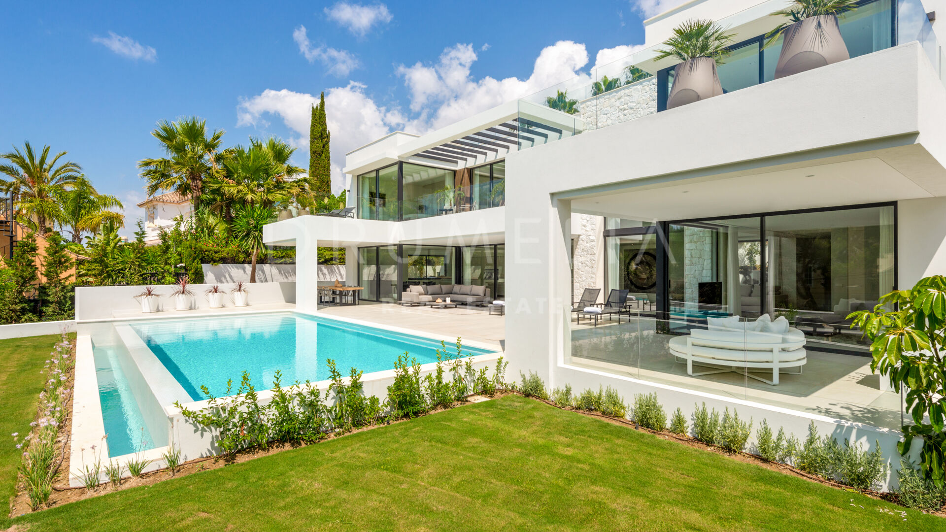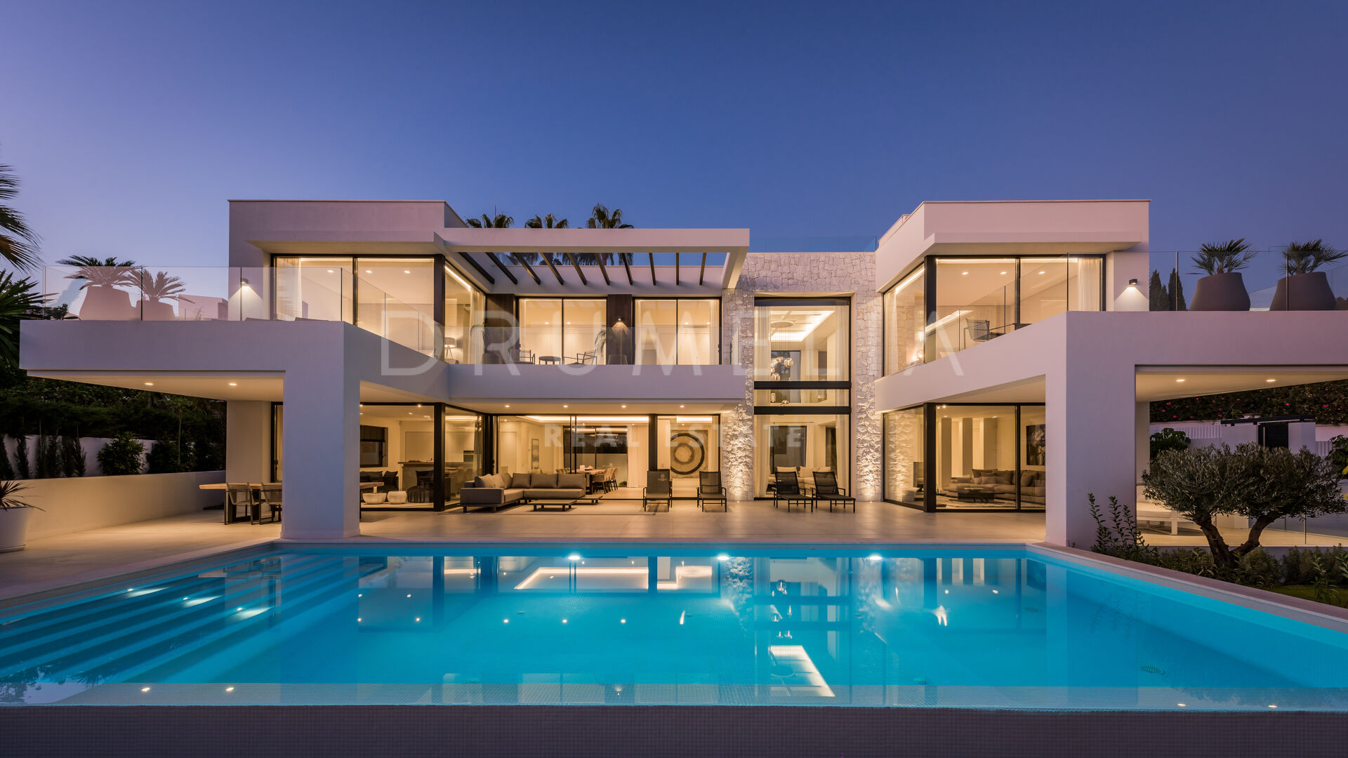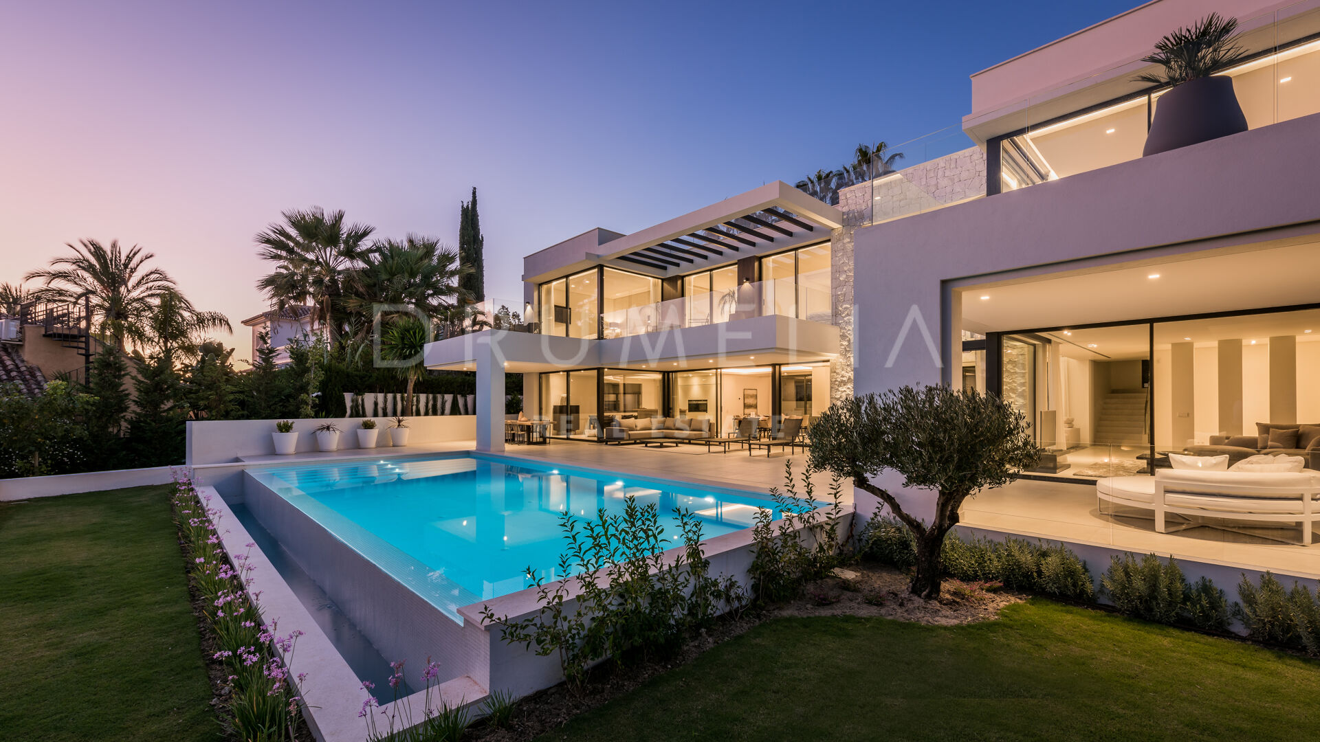 Cette propriété haut de gamme, respectueuse de l’environnement et économe en énergie, est dotée de solutions d’éclairage sophistiquées, de superbes équipements et appareils électroménagers des meilleures marques de designers et de toutes les caractéristiques luxueuses pour rendre votre style de vie vraiment spécial. Les portes vitrées panoramiques et les grandes fenêtres donnent aux espaces une impression d’aération. Il en va de même pour la palette de couleurs neutres restreintes qui ne se démodent jamais. Une imposante piscine est entourée de pelouses vertes. Les espaces extérieurs seront idéaux, que vous souhaitiez vous détendre, dîner al fresco, nager, prendre un bain de soleil, profiter des couchers et levers de soleil, faire un barbecue ou organiser des fêtes autour de la piscine. Tout définit l’essence de la meilleure vie contemporaine de Marbella. Le luxe moderne à tous les niveaux – ce qui nécessite un investissement important mais qui vaut chaque centime !