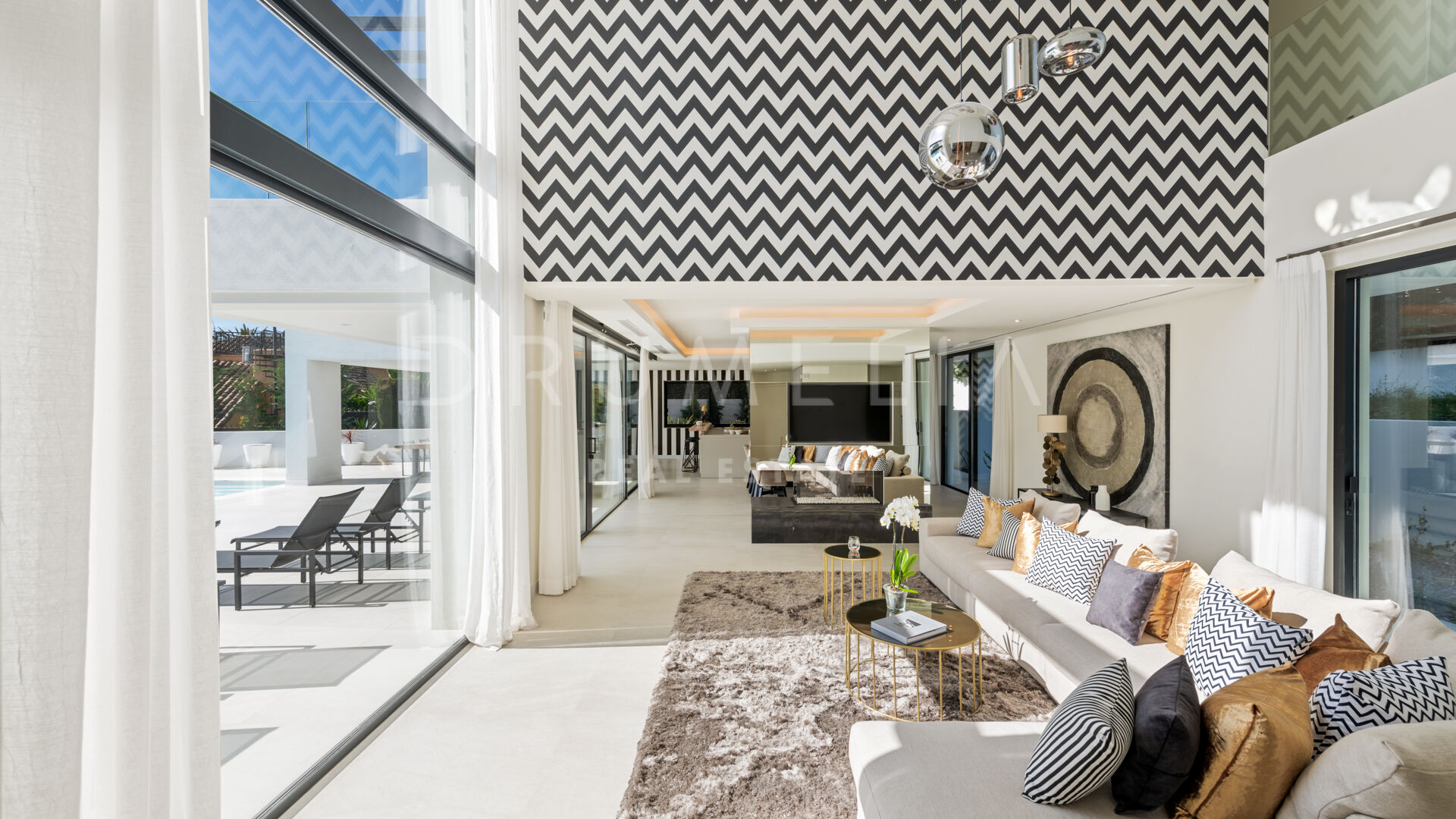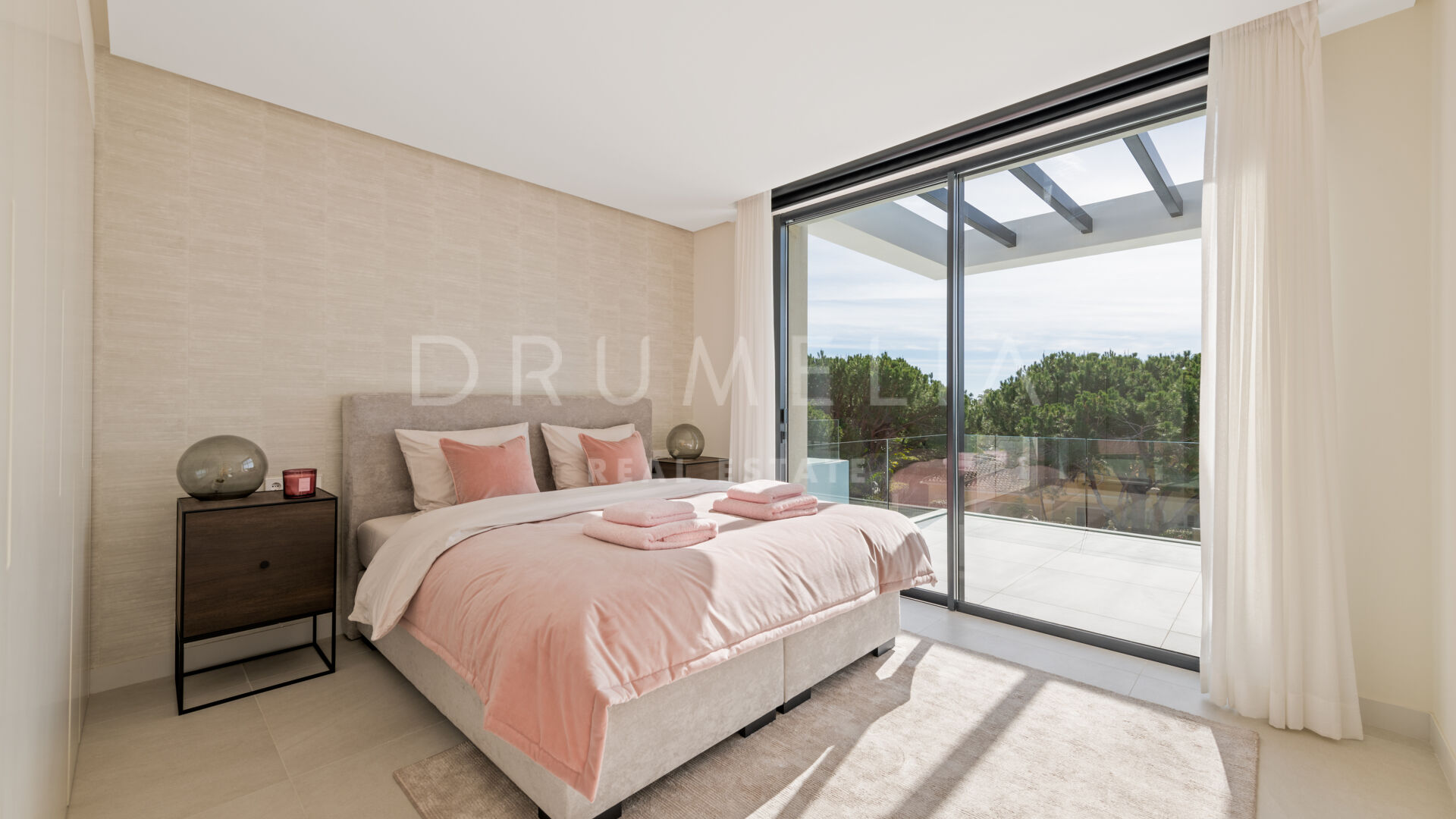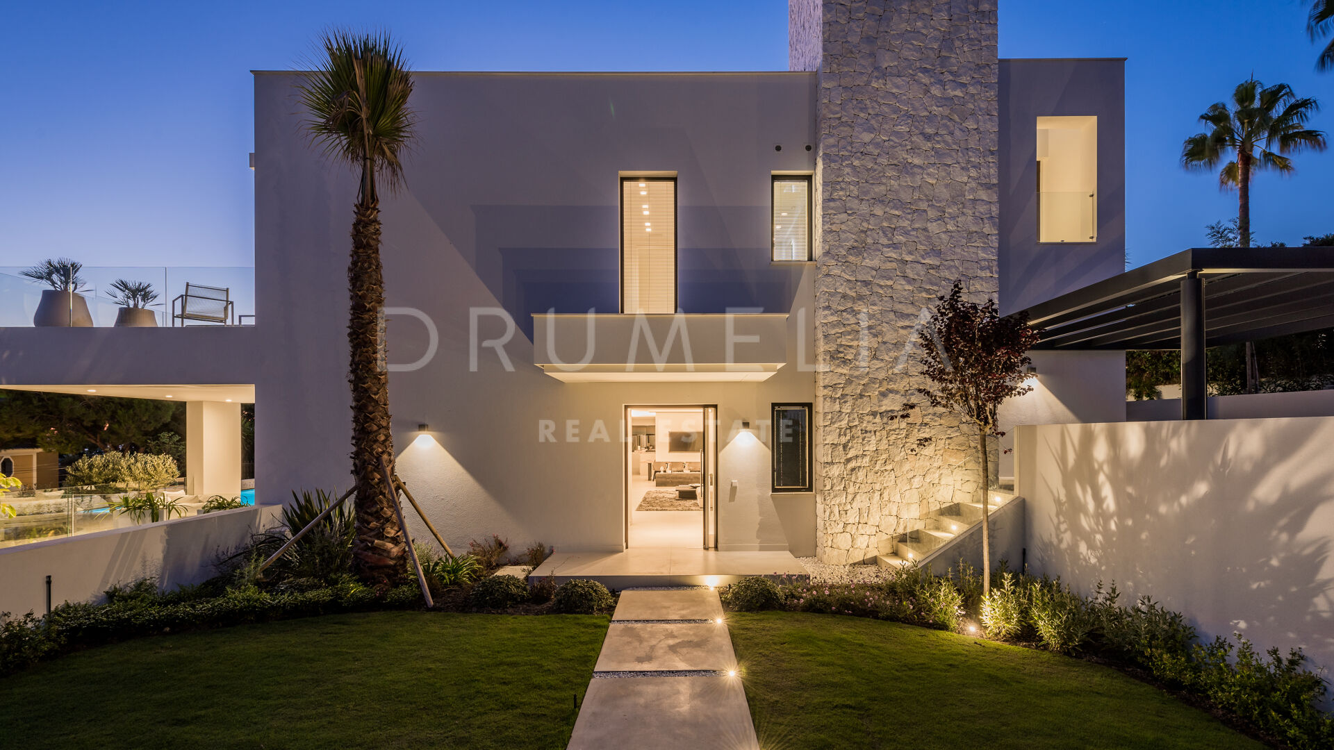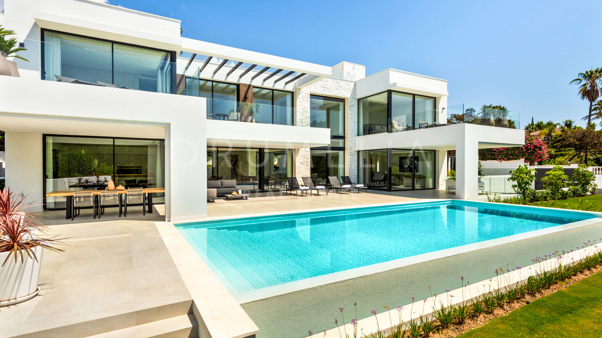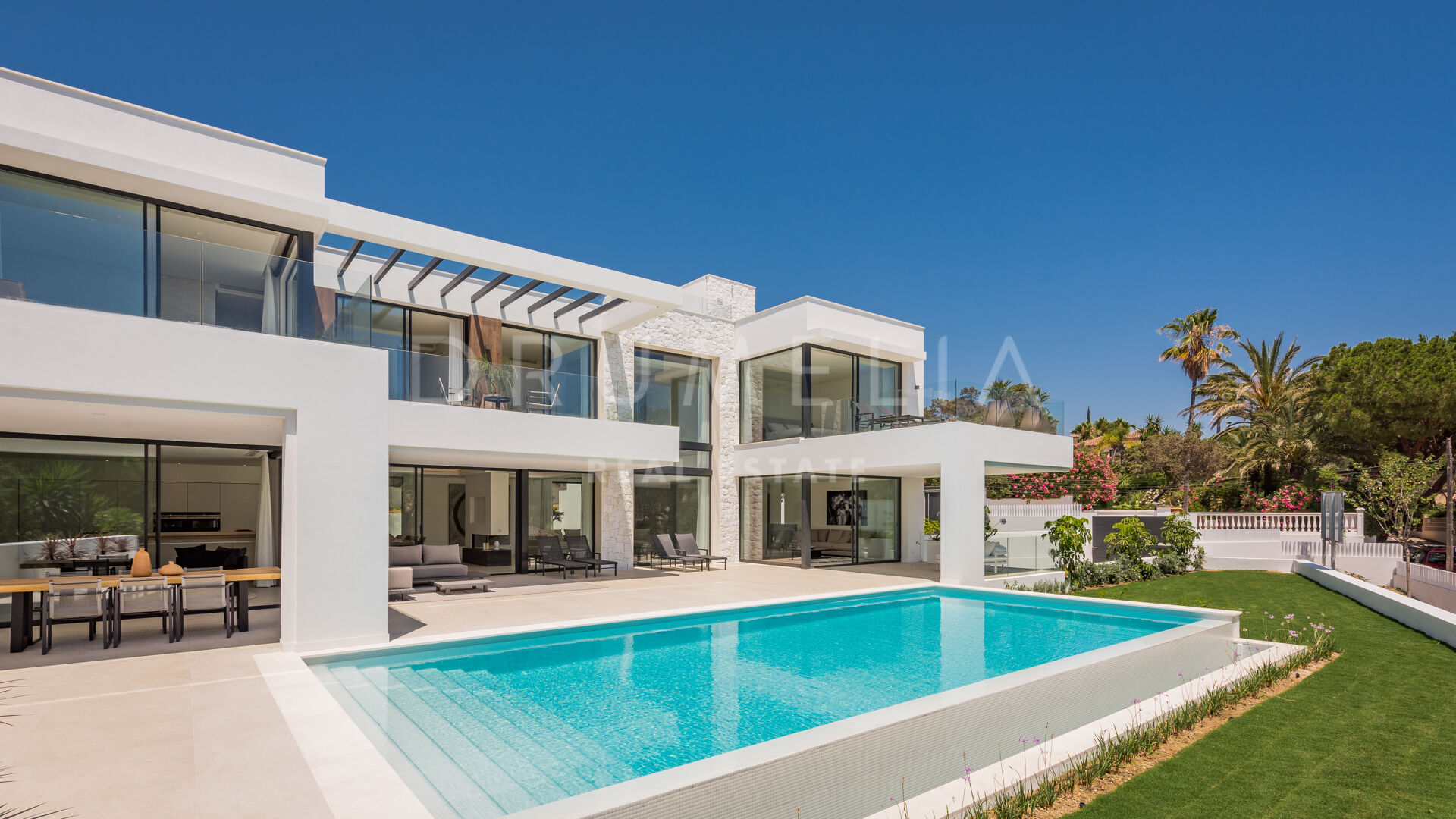 Cette propriété haut de gamme, respectueuse de l’environnement et économe en énergie, est dotée de solutions d’éclairage sophistiquées, de superbes équipements et appareils électroménagers des meilleures marques de designers et de toutes les caractéristiques luxueuses pour rendre votre style de vie vraiment spécial. Les portes vitrées panoramiques et les grandes fenêtres donnent aux espaces une impression d’aération. Il en va de même pour la palette de couleurs neutres restreintes qui ne se démodent jamais. Une imposante piscine est entourée de pelouses vertes. Les espaces extérieurs seront idéaux, que vous souhaitiez vous détendre, dîner al fresco, nager, prendre un bain de soleil, profiter des couchers et levers de soleil, faire un barbecue ou organiser des fêtes autour de la piscine. Tout définit l’essence de la meilleure vie contemporaine de Marbella. Le luxe moderne à tous les niveaux – ce qui nécessite un investissement important mais qui vaut chaque centime !
