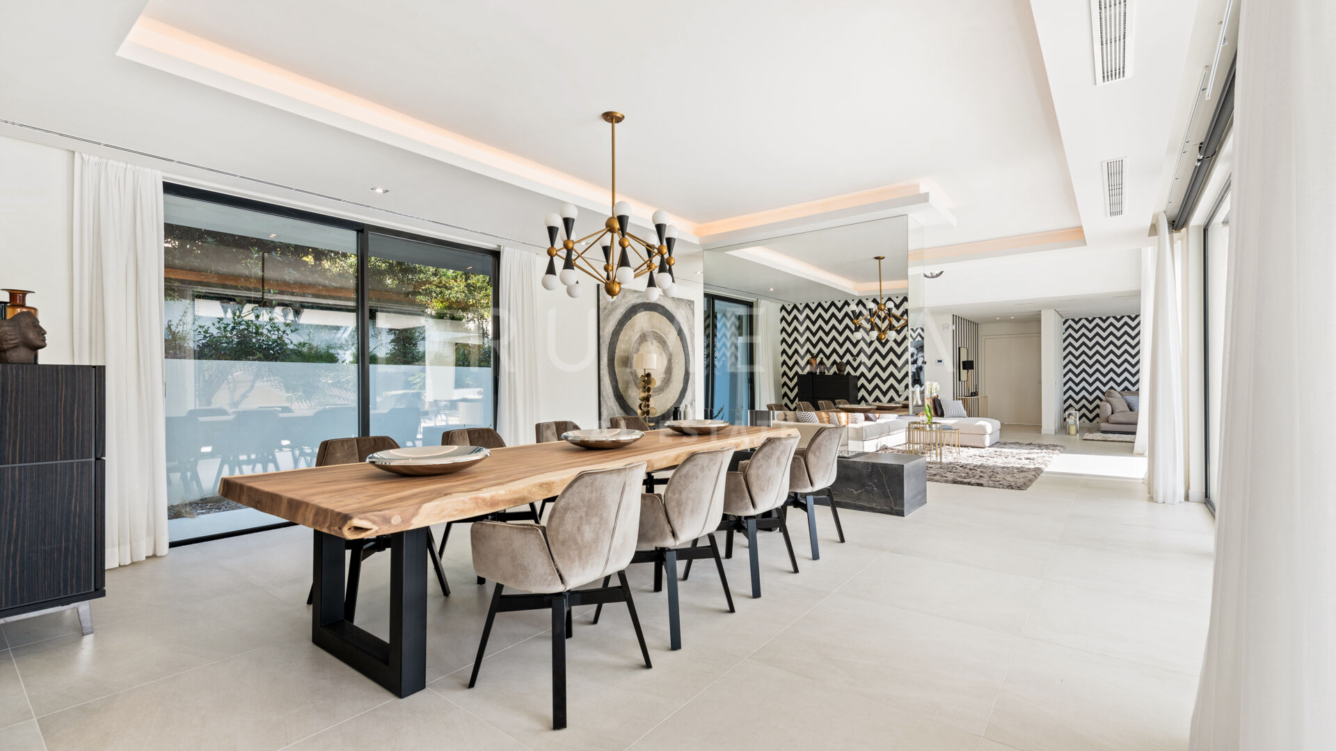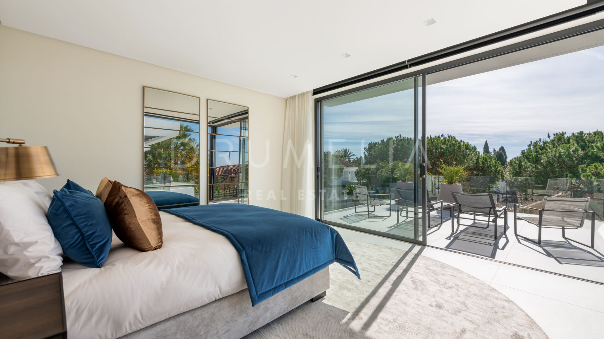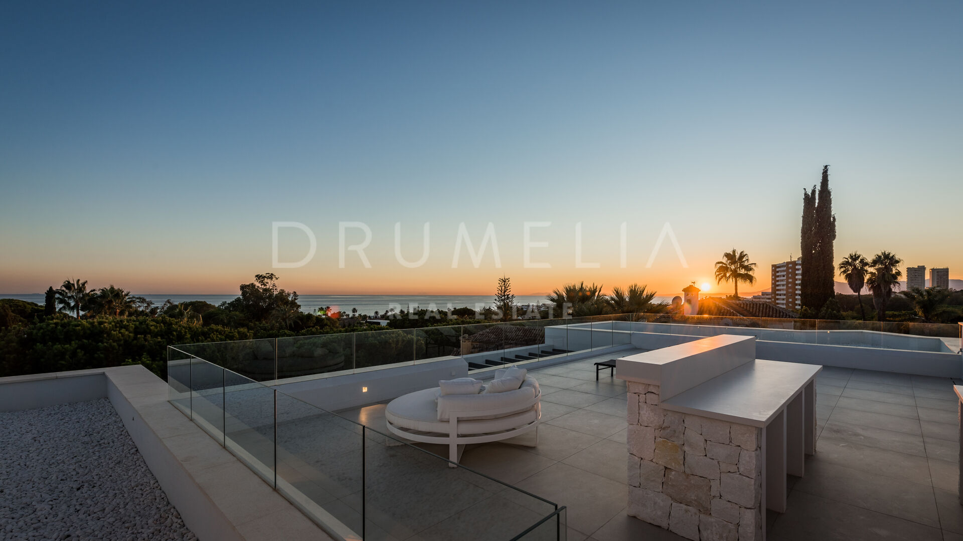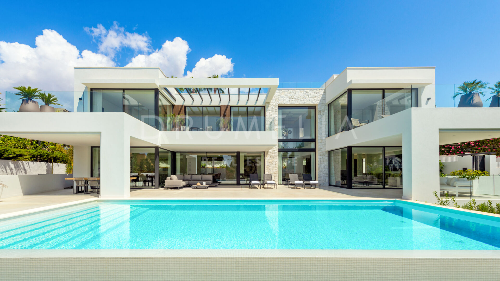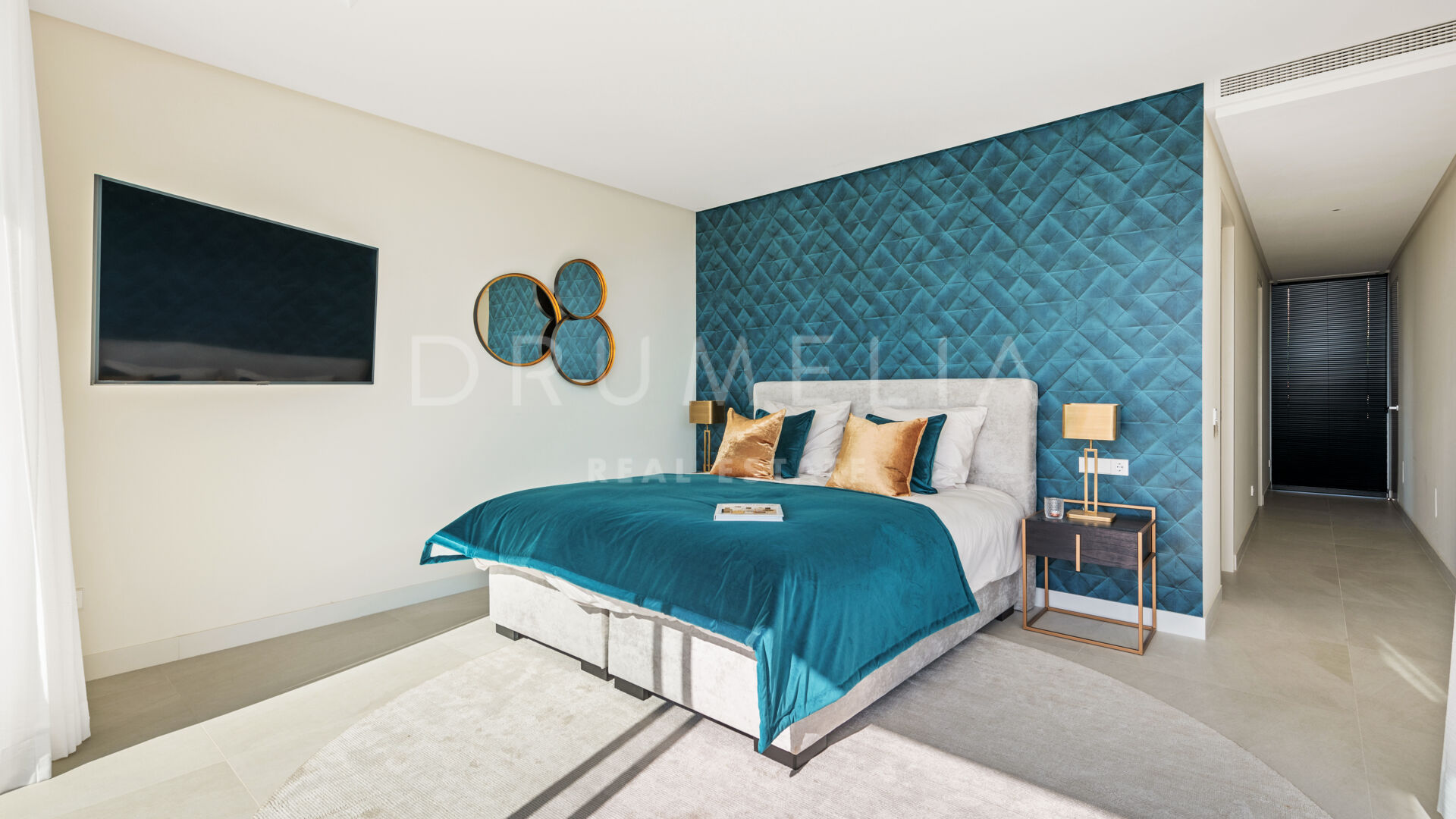 Cette propriété haut de gamme, respectueuse de l’environnement et économe en énergie, est dotée de solutions d’éclairage sophistiquées, de superbes équipements et appareils électroménagers des meilleures marques de designers et de toutes les caractéristiques luxueuses pour rendre votre style de vie vraiment spécial. Les portes vitrées panoramiques et les grandes fenêtres donnent aux espaces une impression d’aération. Il en va de même pour la palette de couleurs neutres restreintes qui ne se démodent jamais. Une imposante piscine est entourée de pelouses vertes. Les espaces extérieurs seront idéaux, que vous souhaitiez vous détendre, dîner al fresco, nager, prendre un bain de soleil, profiter des couchers et levers de soleil, faire un barbecue ou organiser des fêtes autour de la piscine. Tout définit l’essence de la meilleure vie contemporaine de Marbella. Le luxe moderne à tous les niveaux – ce qui nécessite un investissement important mais qui vaut chaque centime !