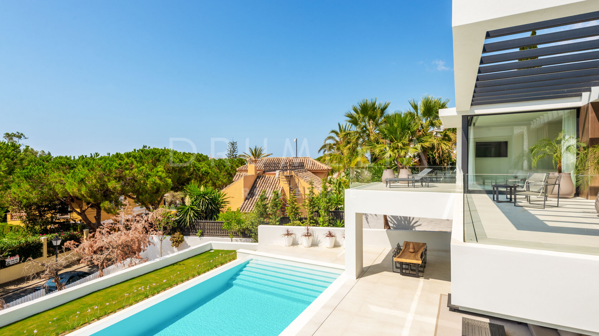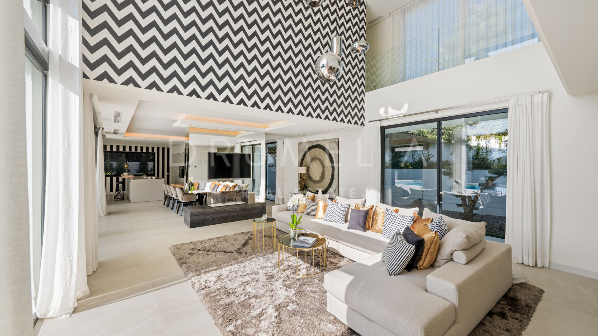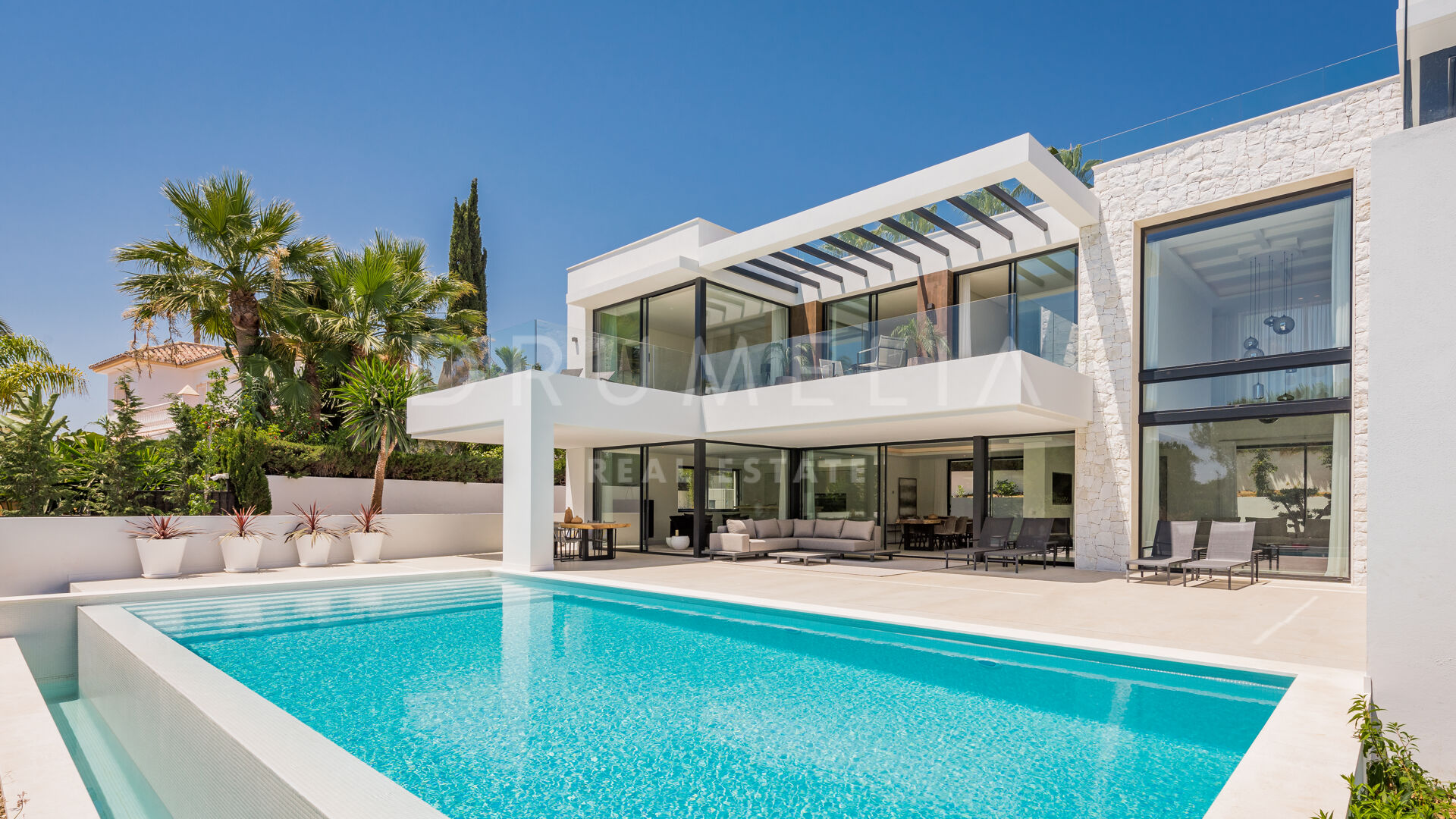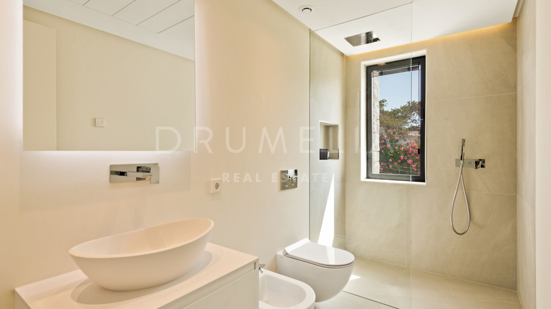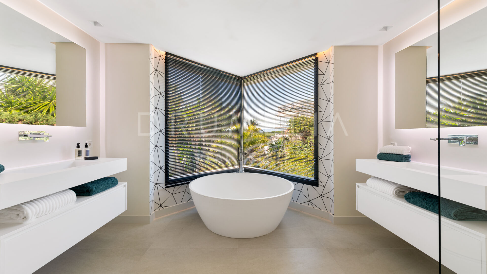 Cette propriété haut de gamme, respectueuse de l’environnement et économe en énergie, est dotée de solutions d’éclairage sophistiquées, de superbes équipements et appareils électroménagers des meilleures marques de designers et de toutes les caractéristiques luxueuses pour rendre votre style de vie vraiment spécial. Les portes vitrées panoramiques et les grandes fenêtres donnent aux espaces une impression d’aération. Il en va de même pour la palette de couleurs neutres restreintes qui ne se démodent jamais. Une imposante piscine est entourée de pelouses vertes. Les espaces extérieurs seront idéaux, que vous souhaitiez vous détendre, dîner al fresco, nager, prendre un bain de soleil, profiter des couchers et levers de soleil, faire un barbecue ou organiser des fêtes autour de la piscine. Tout définit l’essence de la meilleure vie contemporaine de Marbella. Le luxe moderne à tous les niveaux – ce qui nécessite un investissement important mais qui vaut chaque centime !