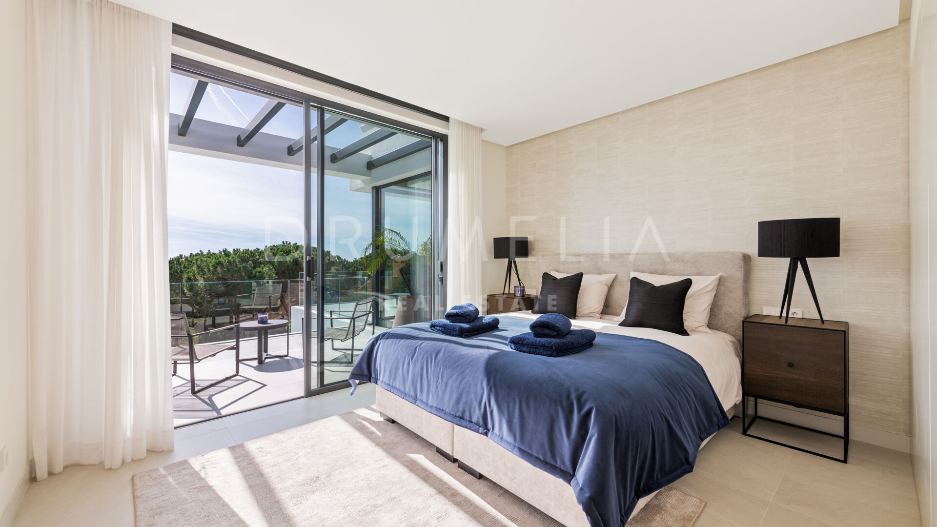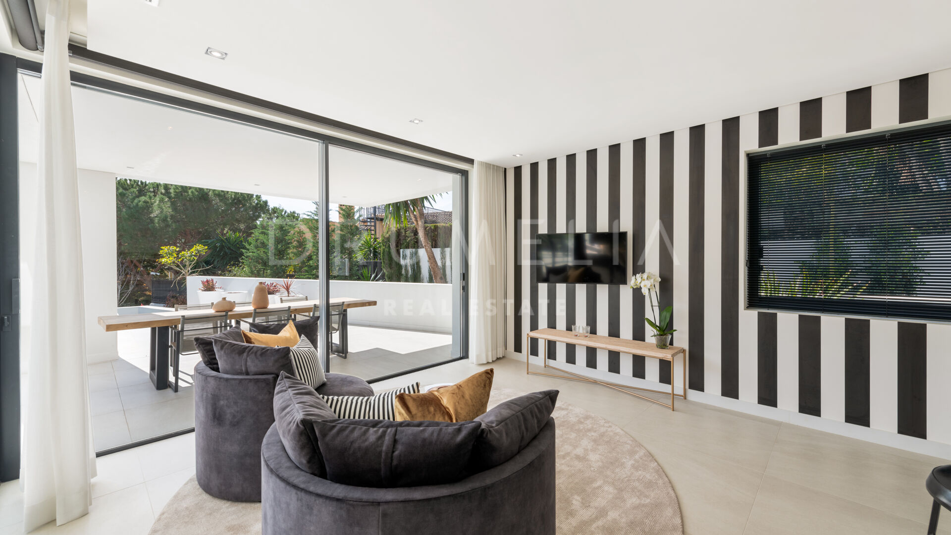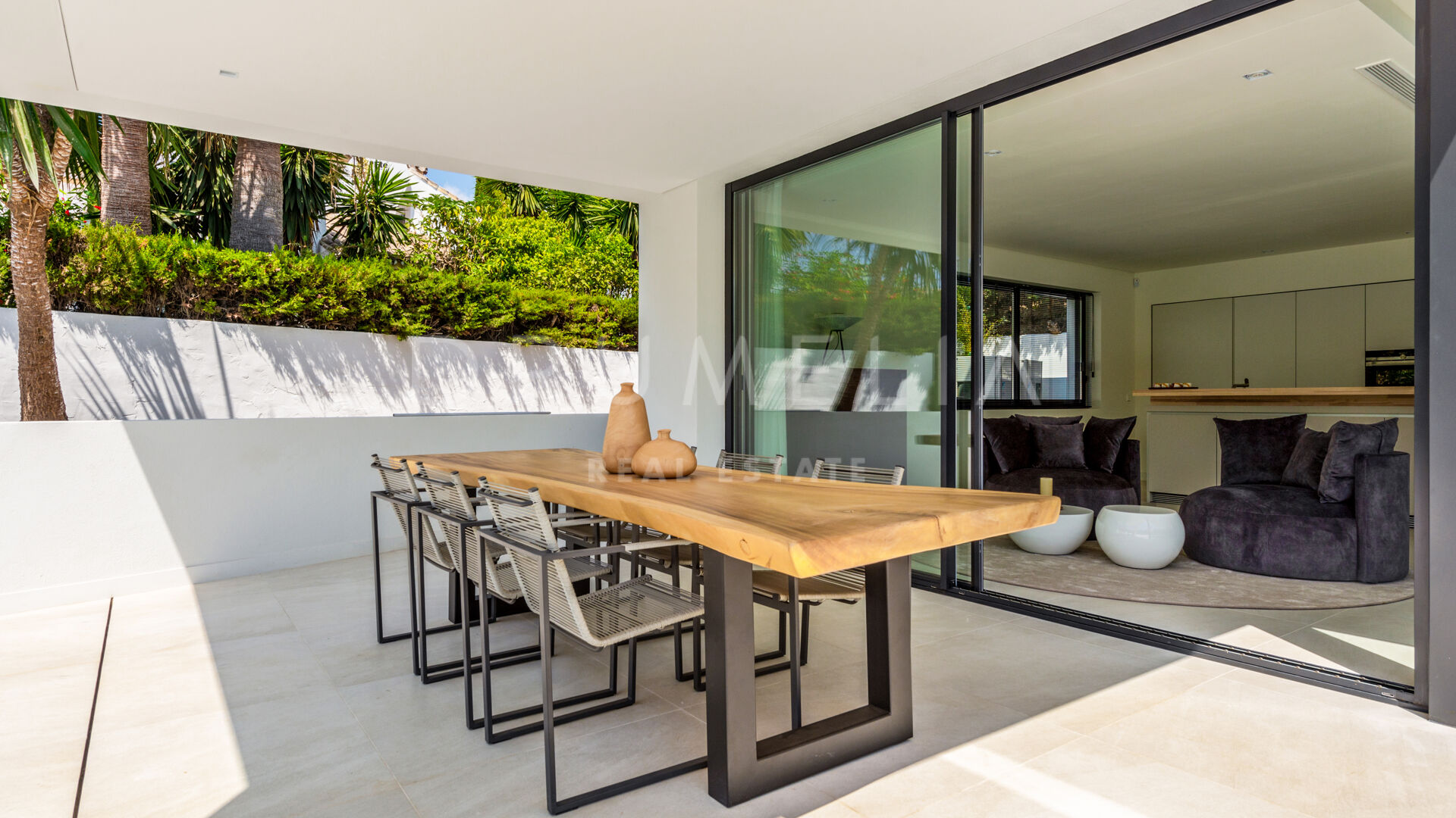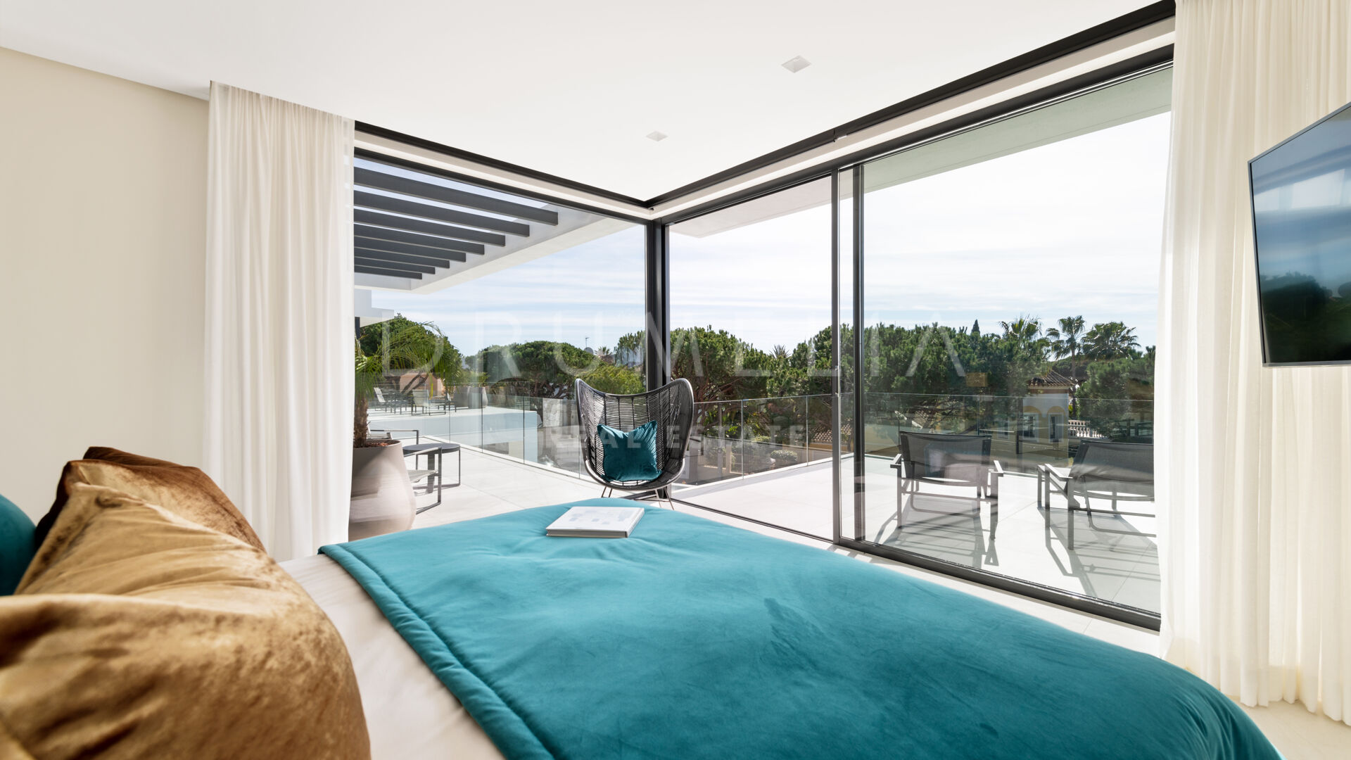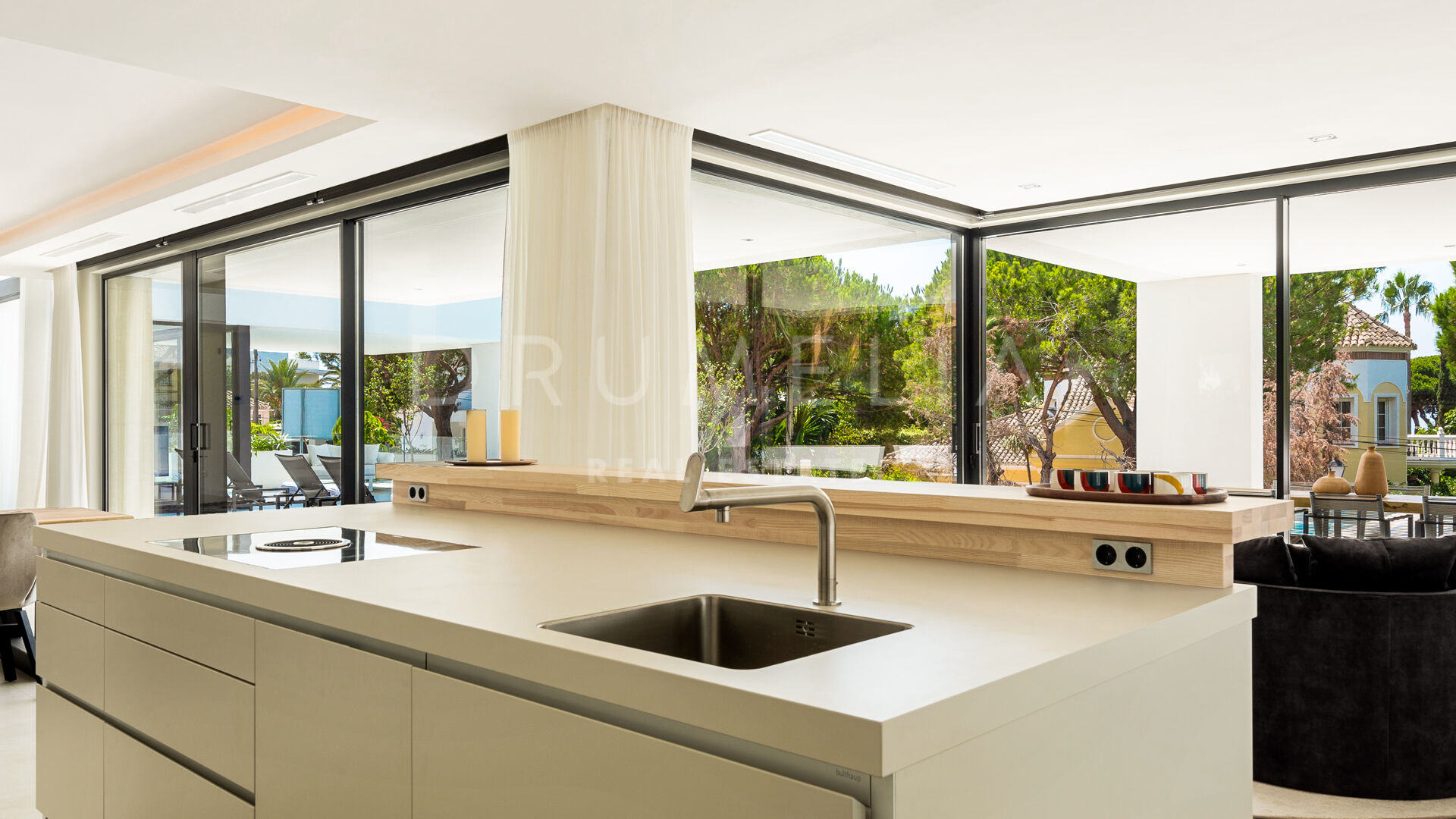 Cette propriété haut de gamme, respectueuse de l’environnement et économe en énergie, est dotée de solutions d’éclairage sophistiquées, de superbes équipements et appareils électroménagers des meilleures marques de designers et de toutes les caractéristiques luxueuses pour rendre votre style de vie vraiment spécial. Les portes vitrées panoramiques et les grandes fenêtres donnent aux espaces une impression d’aération. Il en va de même pour la palette de couleurs neutres restreintes qui ne se démodent jamais. Une imposante piscine est entourée de pelouses vertes. Les espaces extérieurs seront idéaux, que vous souhaitiez vous détendre, dîner al fresco, nager, prendre un bain de soleil, profiter des couchers et levers de soleil, faire un barbecue ou organiser des fêtes autour de la piscine. Tout définit l’essence de la meilleure vie contemporaine de Marbella. Le luxe moderne à tous les niveaux – ce qui nécessite un investissement important mais qui vaut chaque centime !