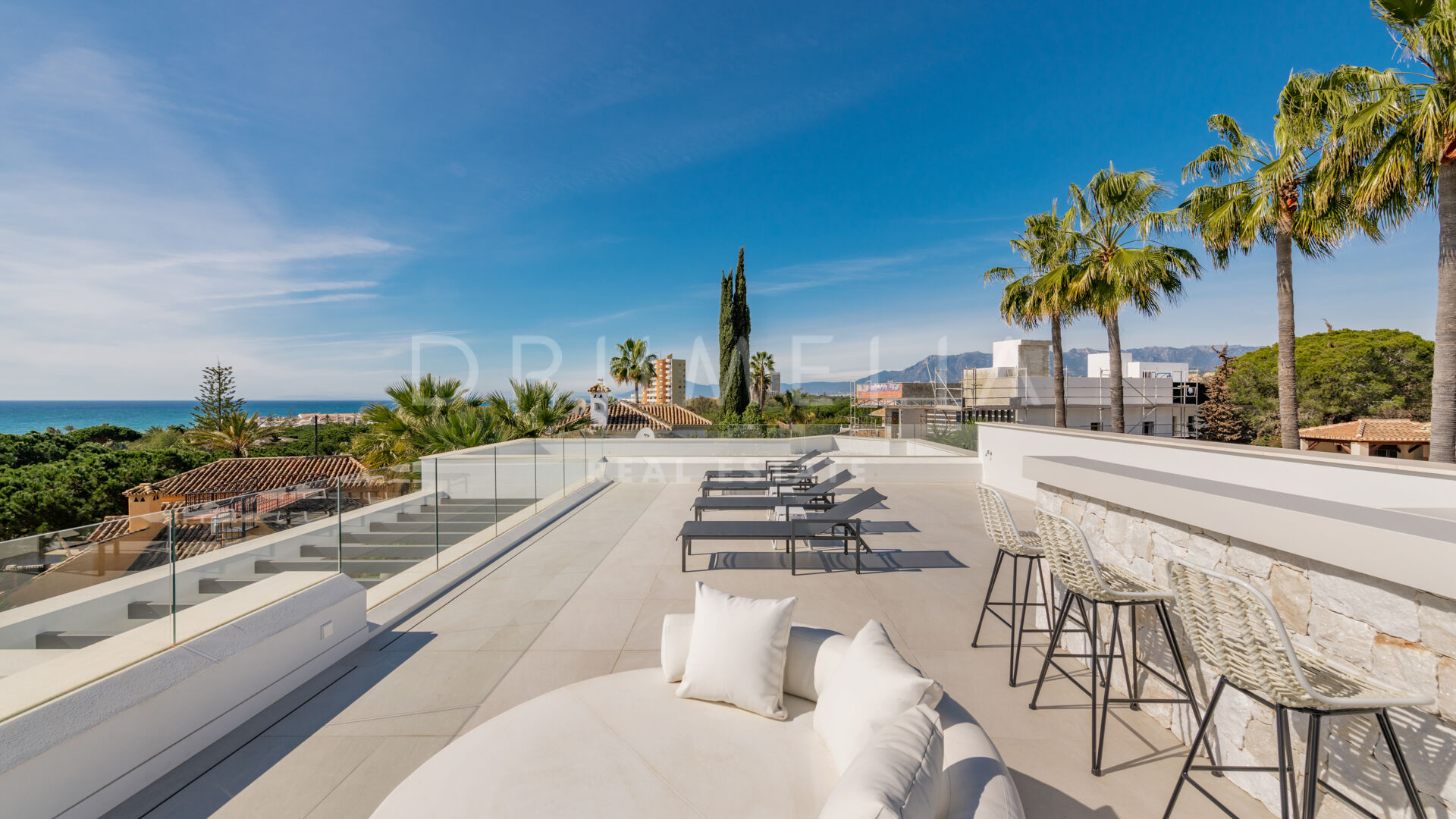 Marbesa est une zone de plage prestigieuse et bien entretenue, située entre Elviria et Cabopino, réputée pour sa propreté, son atmosphère relaxante, son environnement verdoyant et sa communauté efficace de propriétaires. L’ancienne tour de guet mauresque garde la belle zone. Marbesa offre une variété de restaurants et de chiringuitos de plage, un supermarché Cayetano et l’Opencor de Hacienda las Chapas. Vous pouvez faire d’autres achats dans la ville voisine d’Elviria. Les installations sportives et les courts de tennis populaires du célèbre club de tennis Don Carlos ne sont qu’à 7-10 minutes de marche ou à une agréable promenade en vélo. Plusieurs terrains de golf sont situés à quelques minutes de route (notamment les clubs de golf Santa Maria, Santa Clara et Rio Real). Vous pourrez pratiquer des activités nautiques et déguster des plats raffinés dans la marina animée de Cabopino. Nikki Beach et d’autres excellents clubs de plage ainsi que des écoles internationales anglaises, espagnoles et allemandes se trouvent au coin de la rue.