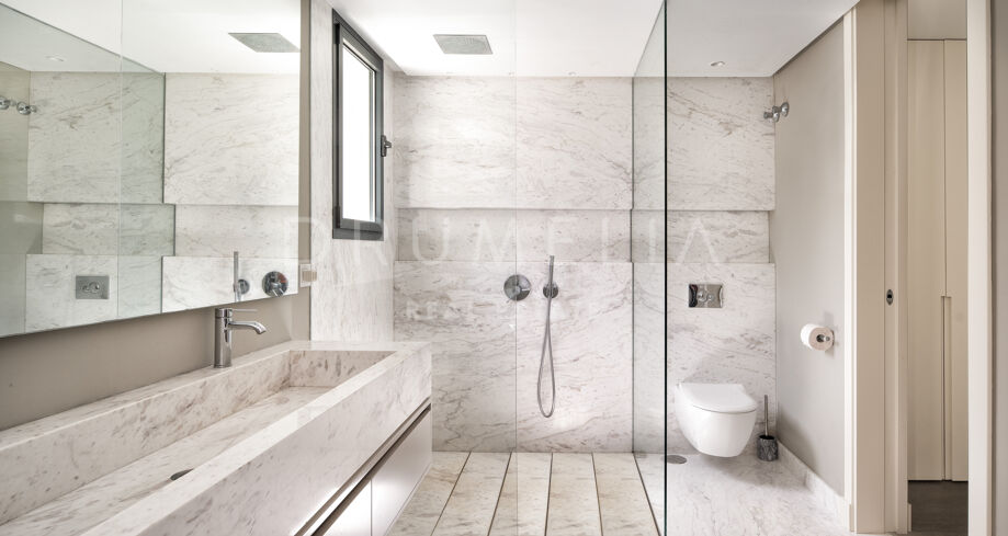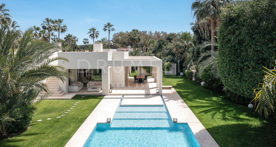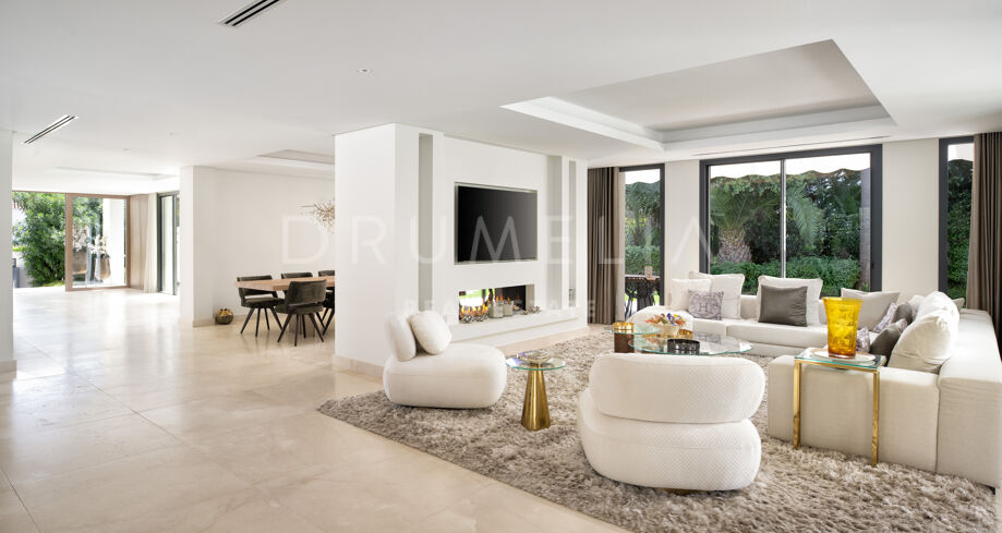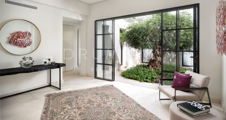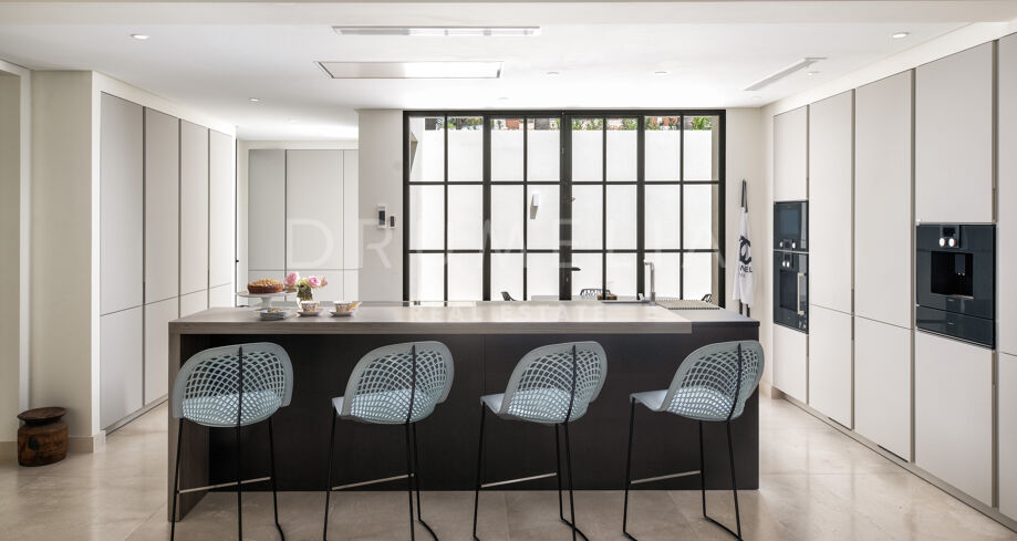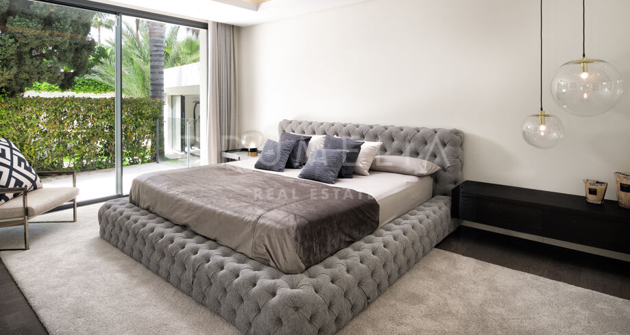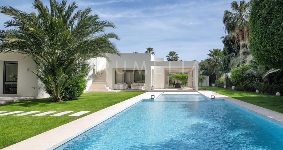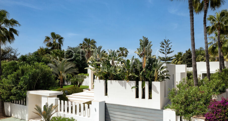 Cette propriété unique incarne l’essence de la vie luxueuse en bord de mer à Marbella. Avec son mobilier haut de gamme et son emplacement en bord de mer, elle représente un choix idéal pour ceux qui recherchent une retraite ou un mode de vie dynamique en bord de mer. La lumière naturelle pénètre par les grandes fenêtres, créant une atmosphère lumineuse et chaleureuse dans toute la maison. La cuisine moderne ouverte donne sur la grande piscine accueillante, entourée d’une belle verdure, idéale pour se divertir. Cette magnifique villa offre un style de vie privé en bord de mer, à quelques pas des plages de sable.