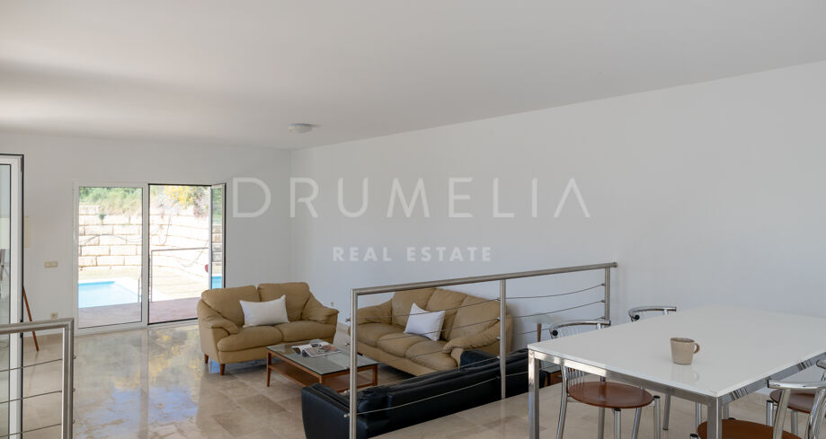 La luxueuse propriété est vendue en bon état, avec un garage privé, une buanderie, un bureau et de nombreuses caractéristiques qui rendront votre vie confortable. Elle bénéficie d’équipements et d’appareils de haute qualité, de la climatisation, d’armoires encastrées, de double vitrage, etc. Cette maison attrayante avec des vues spectaculaires sur la Méditerranée, Gibraltar et le littoral africain est une escapade idyllique, entourée par la nature intacte de Monte Mayor. C’est un excellent choix, que vous soyez à la recherche d’une résidence permanente, d’une maison de vacances ou d’un investissement. Elle peut être un projet idéal avec la possibilité de rénover le niveau inférieur ou simplement d’ajouter quelques touches de finition.