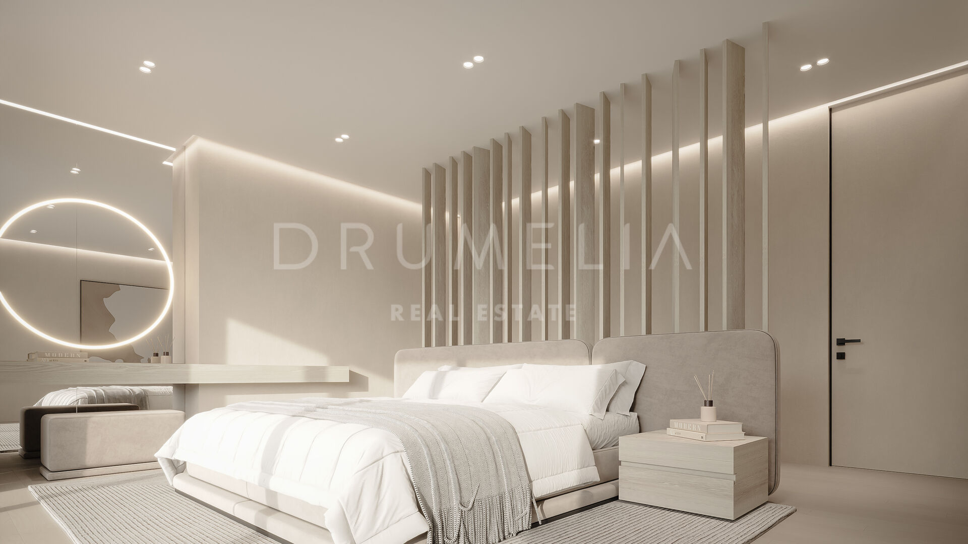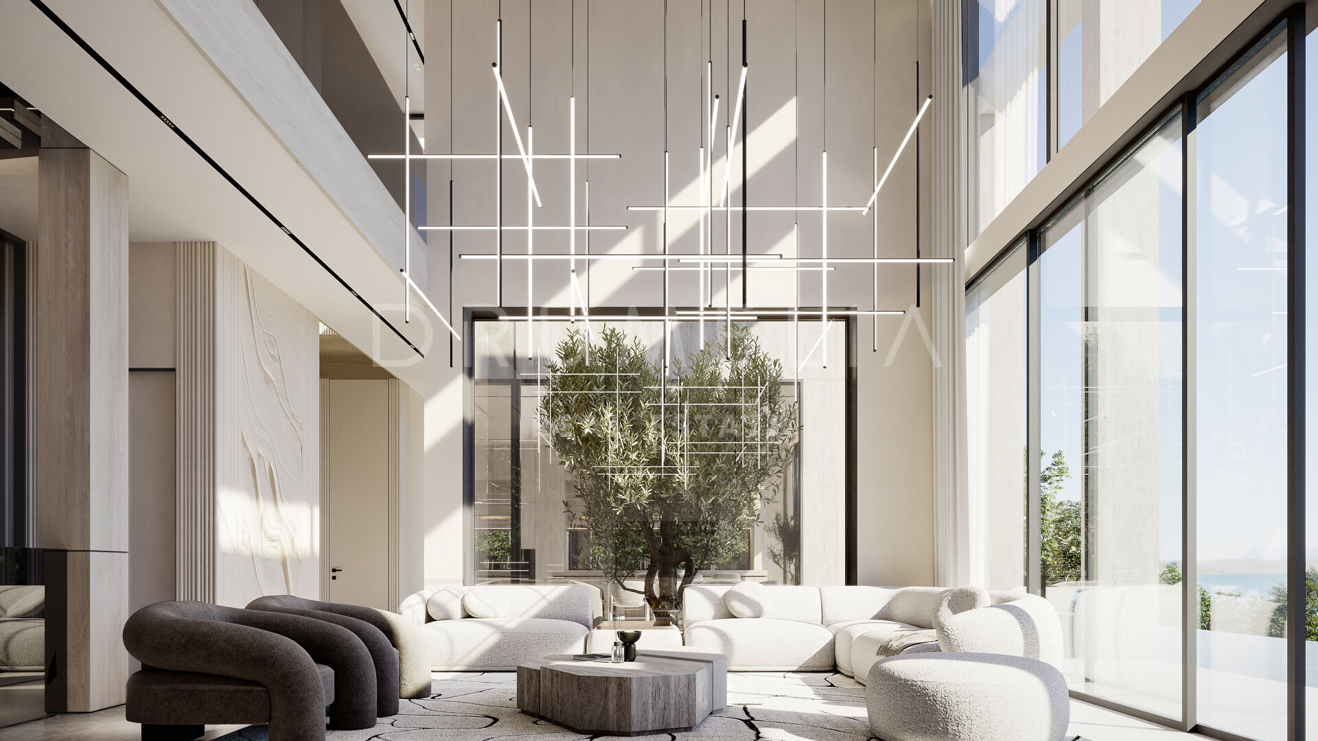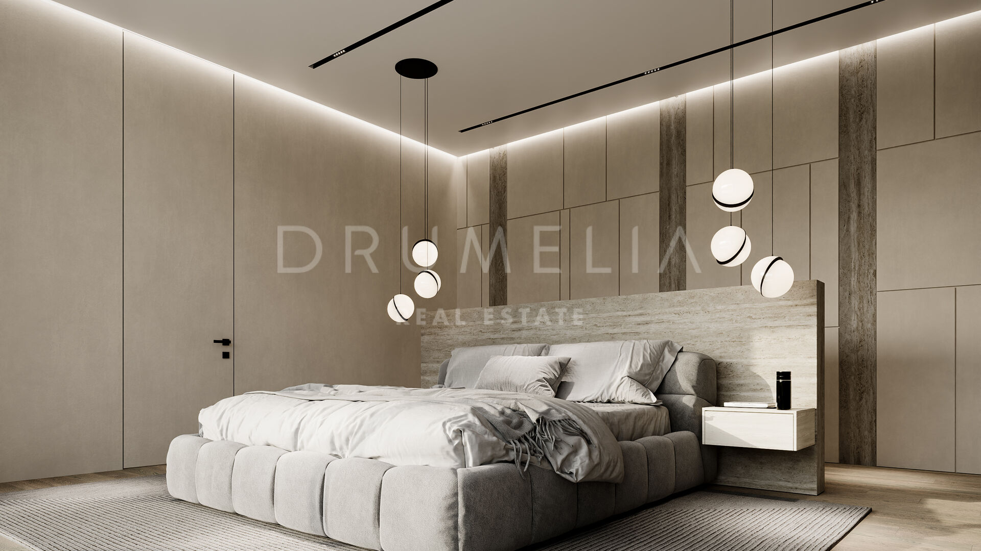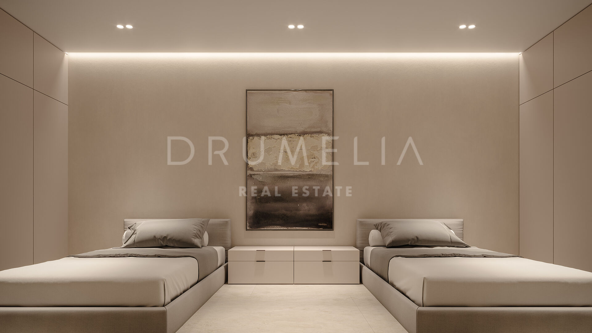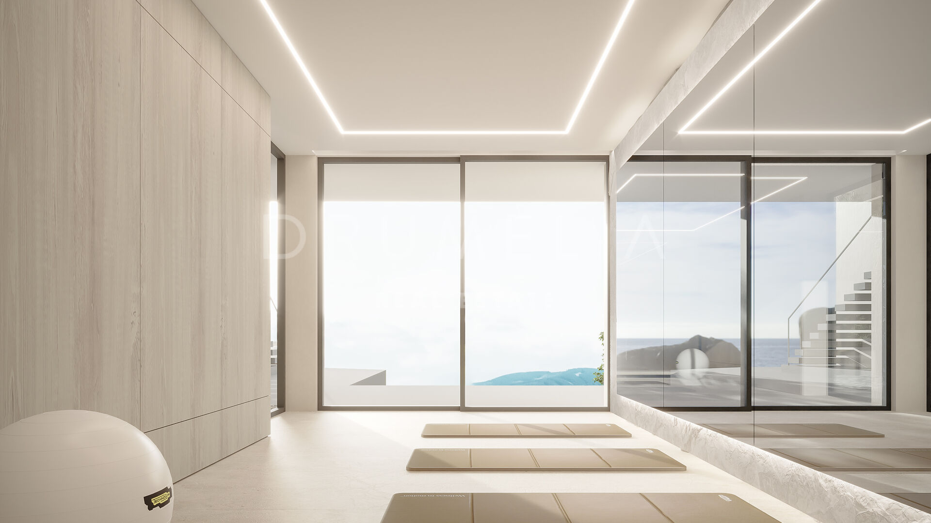 Le design architectural propose un agencement spacieux avec de généreux volumes intérieurs et d’excellentes installations de loisirs. Le sous-sol est conçu comme un espace de bien-être complet comprenant une salle de sport, un spa avec sauna, une salle de sel et une salle de bain de spa, ainsi qu’une buanderie, un cellier, une salle technique et un espace pour le personnel avec chambre et salle de bain indépendantes. Trois chambres en suite avec dressings privés complètent ce niveau, offrant intimité et fonctionnalité.