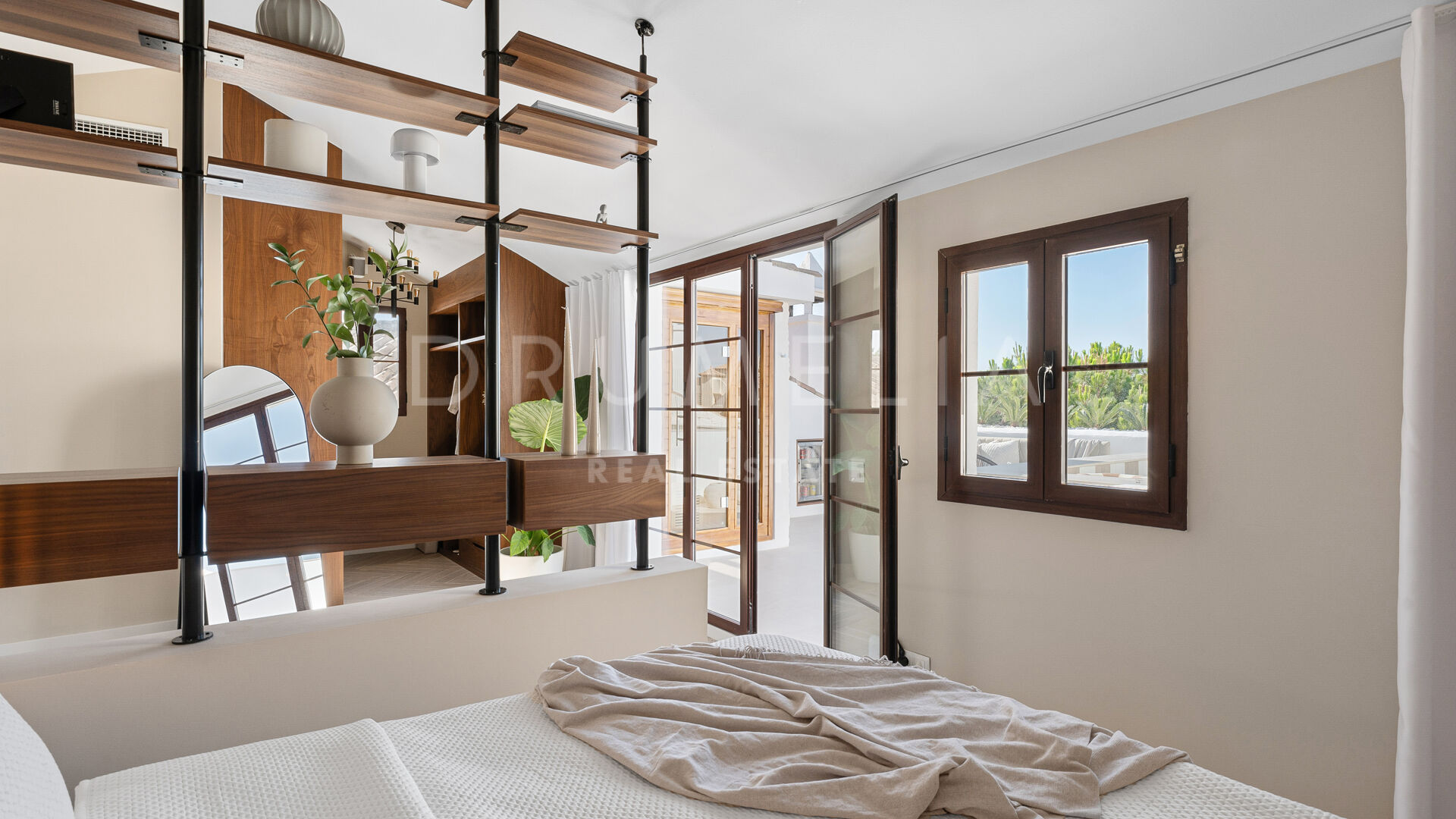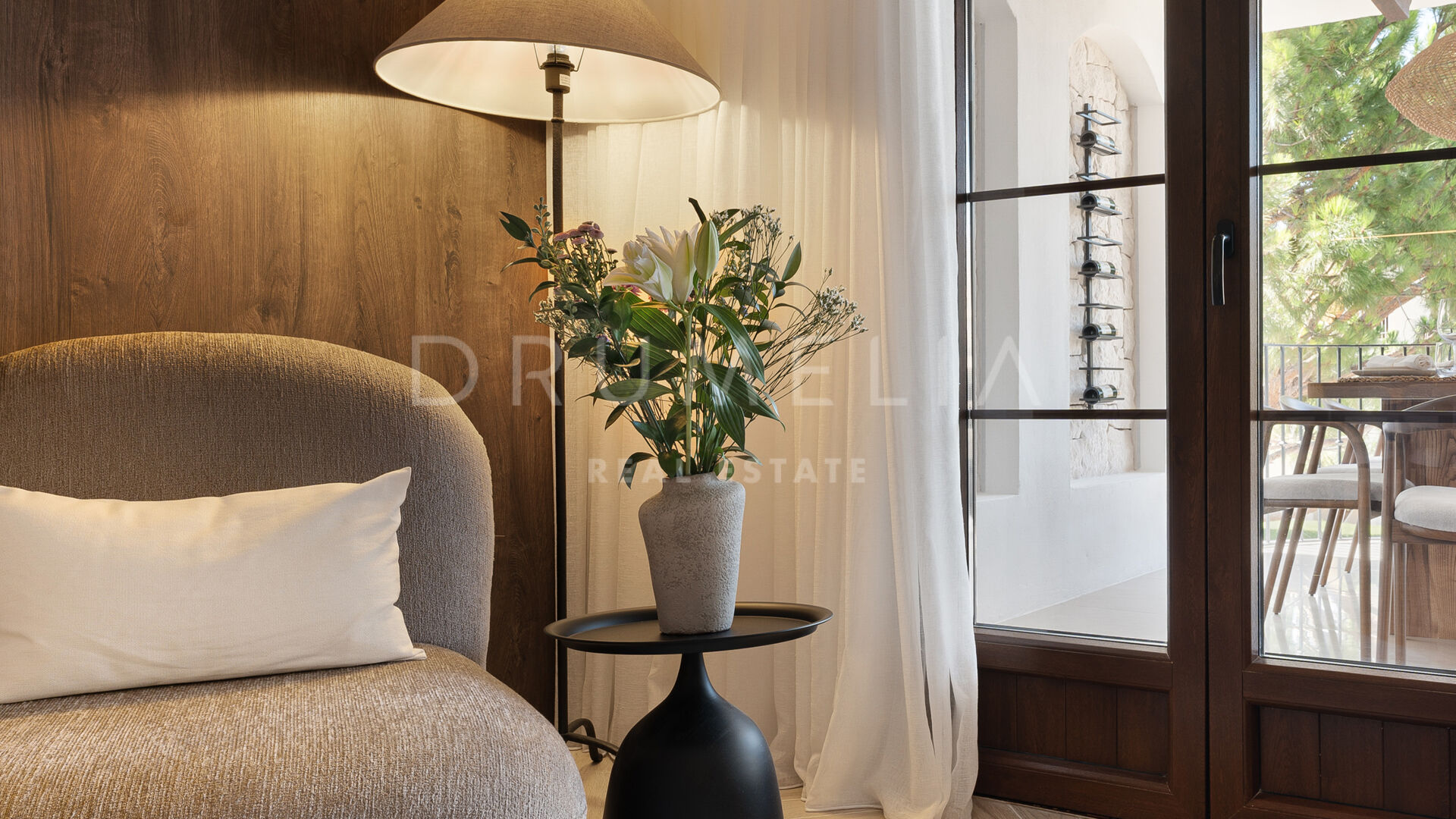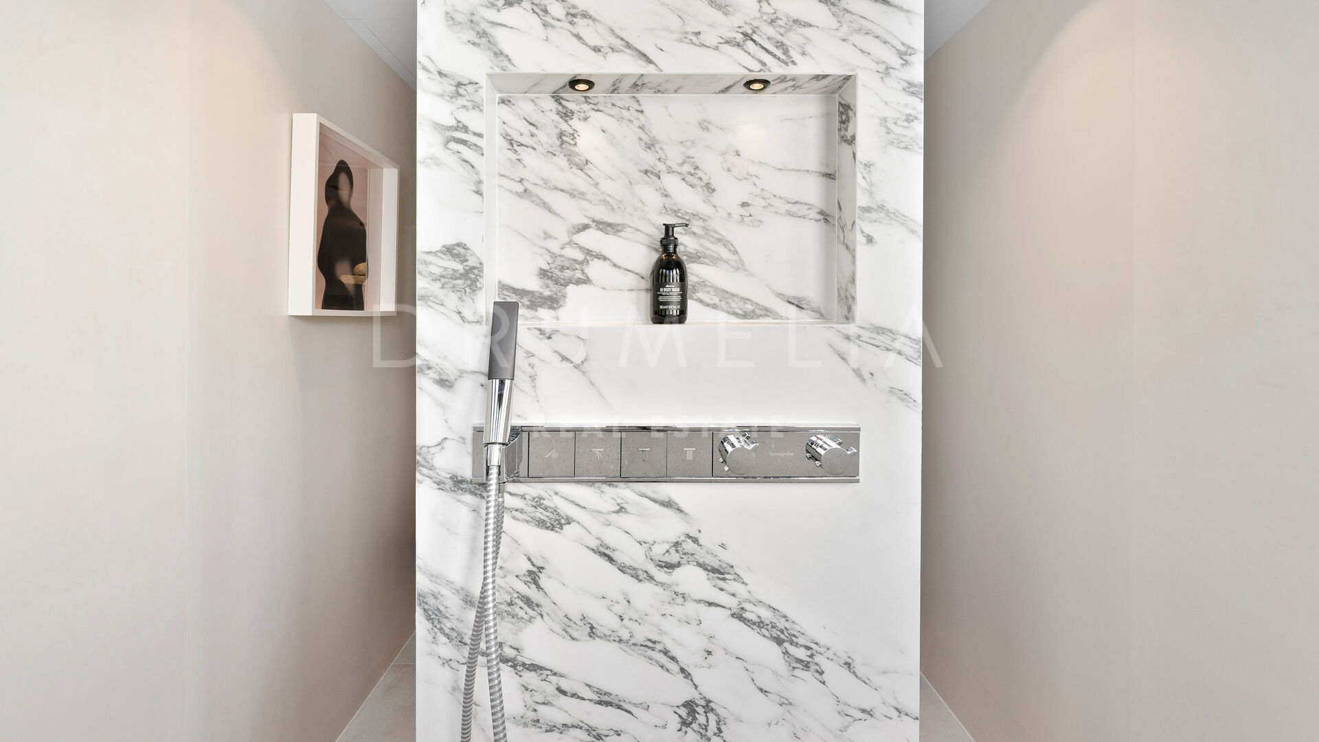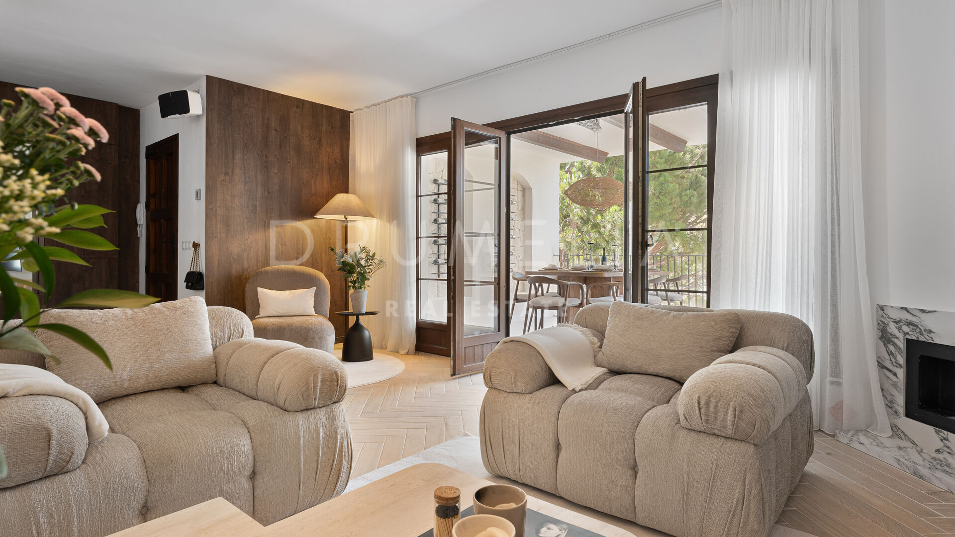 Nichée dans le prestigieux Golden Mile, l’urbanisation Montepiedra offre un mélange exceptionnel d’opulence et de praticité. Cette propriété entièrement rénovée, mise à jour en 2024, s’étend sur 169m². L’espace intérieur de 129 m² est réparti sur deux étages, offrant un agencement optimal pour une vie contemporaine. L’orientation sud assure une lumière naturelle abondante tout au long de la journée, mettant en valeur l’élégance de l’ameublement moderne.