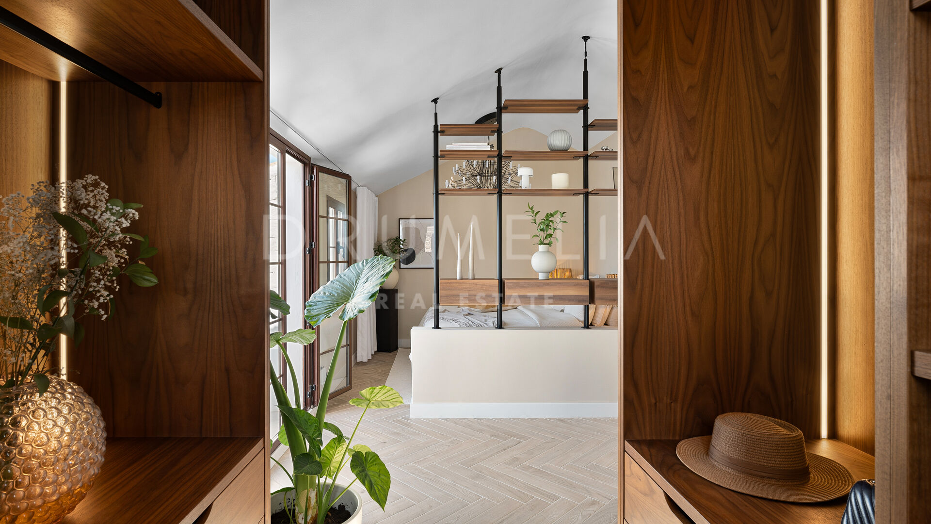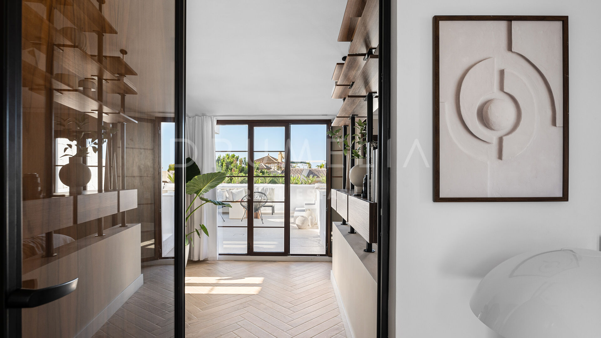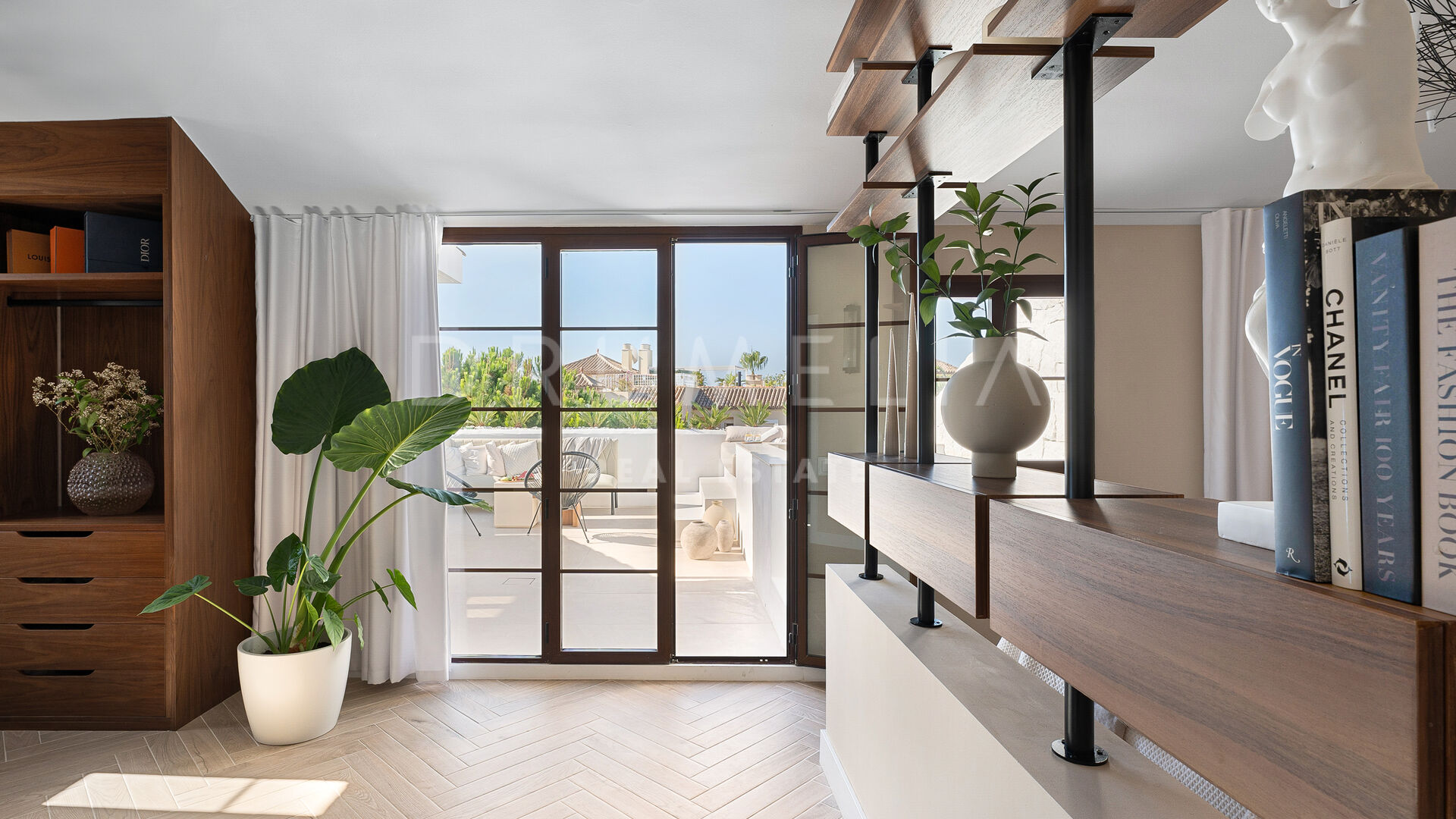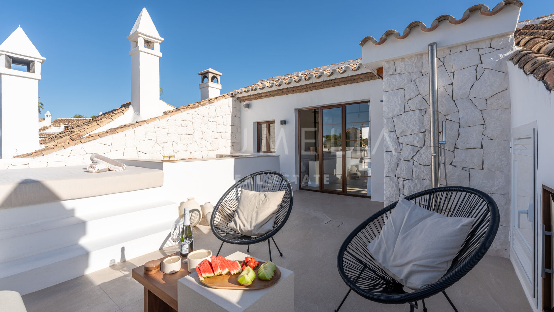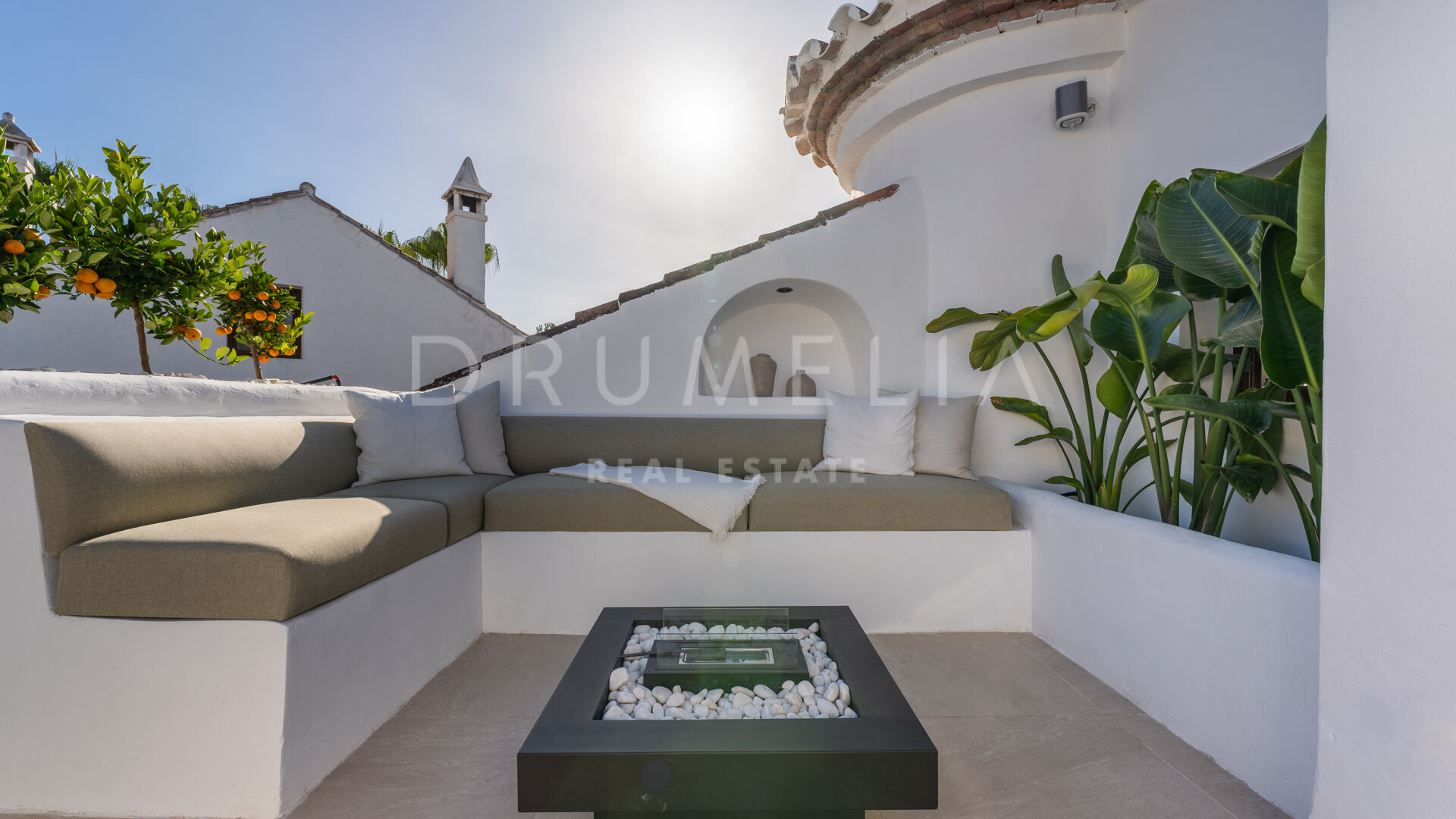 Nichée dans le prestigieux Golden Mile, l’urbanisation Montepiedra offre un mélange exceptionnel d’opulence et de praticité. Cette propriété entièrement rénovée, mise à jour en 2024, s’étend sur 169m². L’espace intérieur de 129 m² est réparti sur deux étages, offrant un agencement optimal pour une vie contemporaine. L’orientation sud assure une lumière naturelle abondante tout au long de la journée, mettant en valeur l’élégance de l’ameublement moderne.