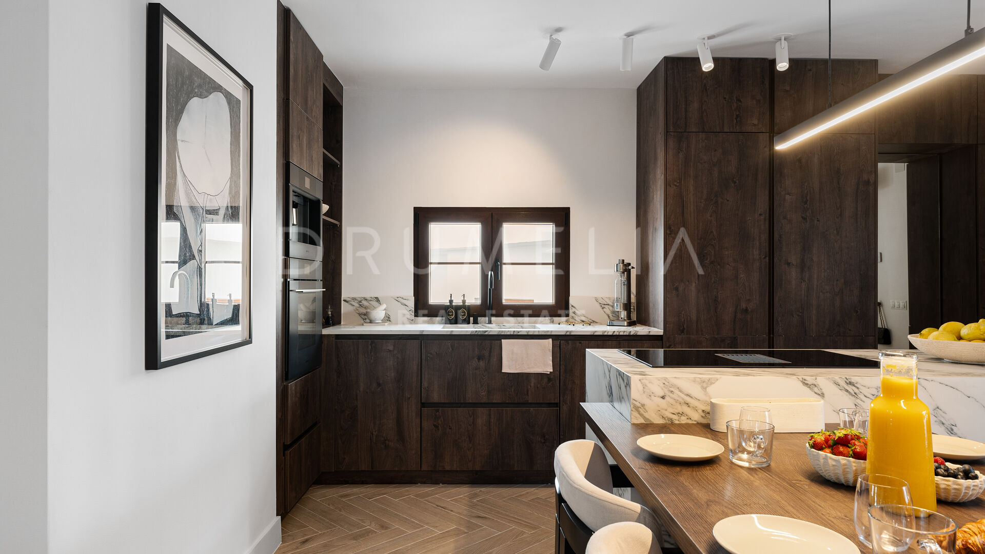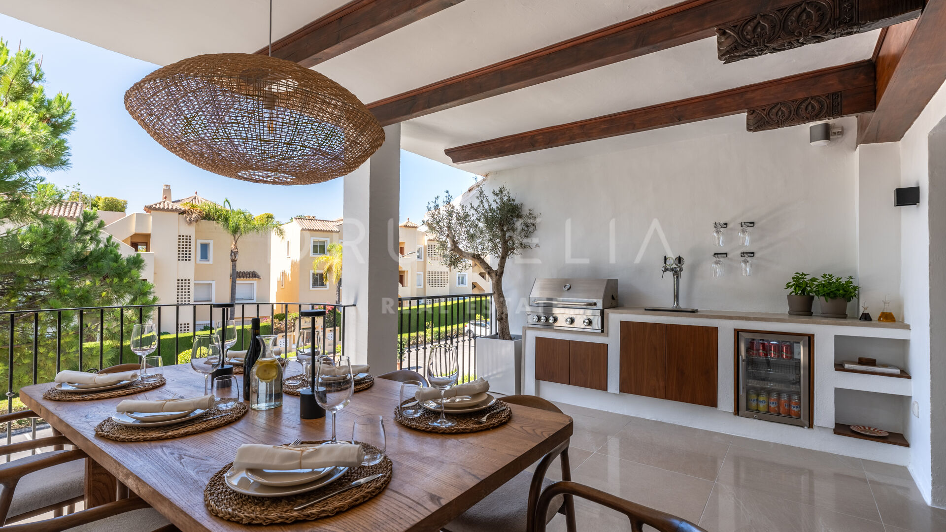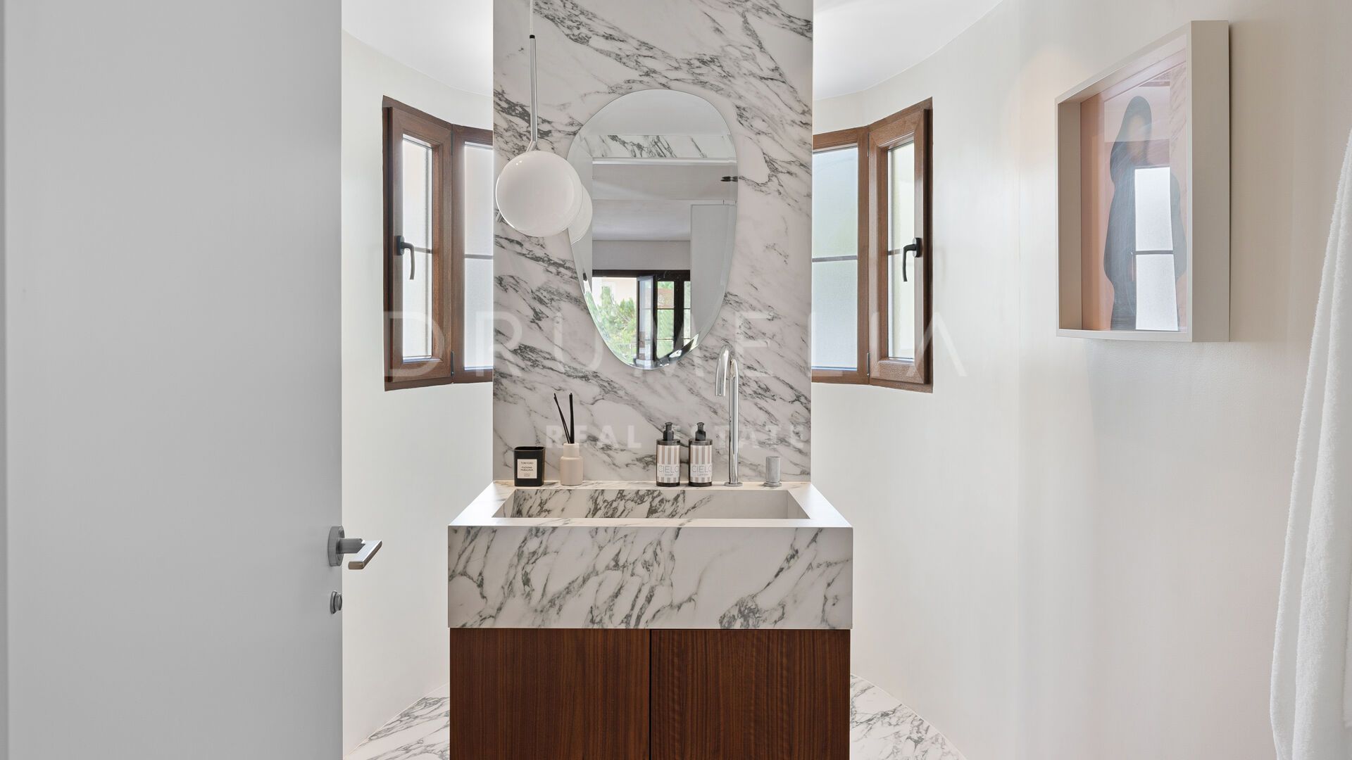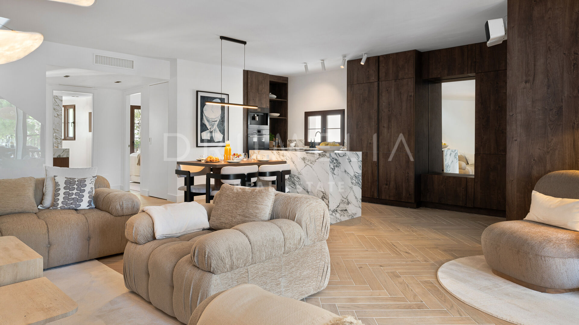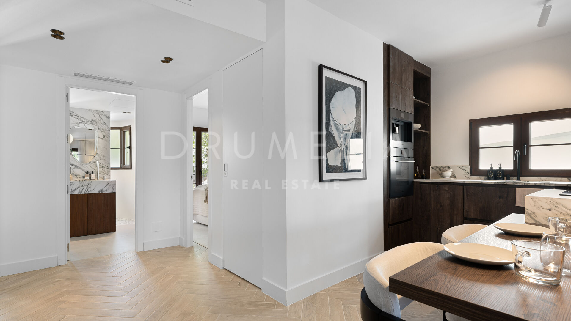 Nichée dans le prestigieux Golden Mile, l’urbanisation Montepiedra offre un mélange exceptionnel d’opulence et de praticité. Cette propriété entièrement rénovée, mise à jour en 2024, s’étend sur 169m². L’espace intérieur de 129 m² est réparti sur deux étages, offrant un agencement optimal pour une vie contemporaine. L’orientation sud assure une lumière naturelle abondante tout au long de la journée, mettant en valeur l’élégance de l’ameublement moderne.