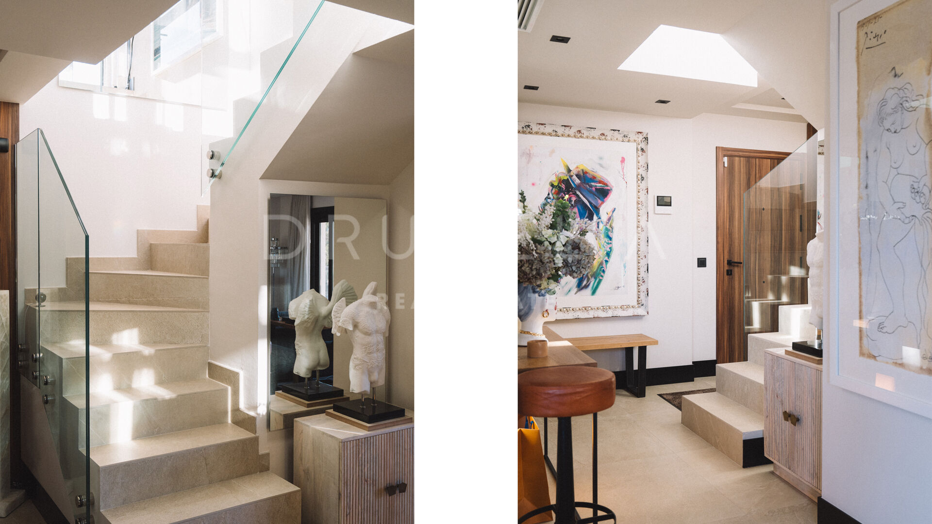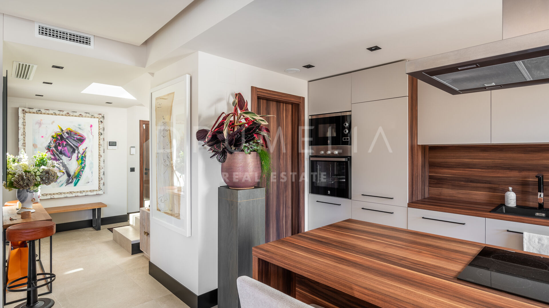 À l’intérieur, vous trouverez un salon et une salle à manger lumineux et spacieux, conçus avec soin pour optimiser l’espace et l’éclairage naturel. La cuisine contemporaine, équipée d’appareils électroménagers ultramodernes, s’intègre parfaitement au salon, ce qui en fait un lieu idéal pour passer des soirées agréables et recevoir des invités. Les trois chambres à coucher de taille généreuse comprennent une somptueuse suite parentale avec salle de bains privative, tandis que les deux autres chambres se partagent une salle de bains familiale élégante et raffinée. Conçues dans un souci de commodité et de fonctionnalité, toutes les pièces offrent de nombreux rangements et une lumière naturelle abondante.