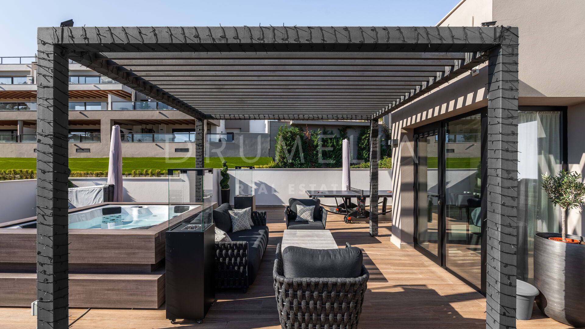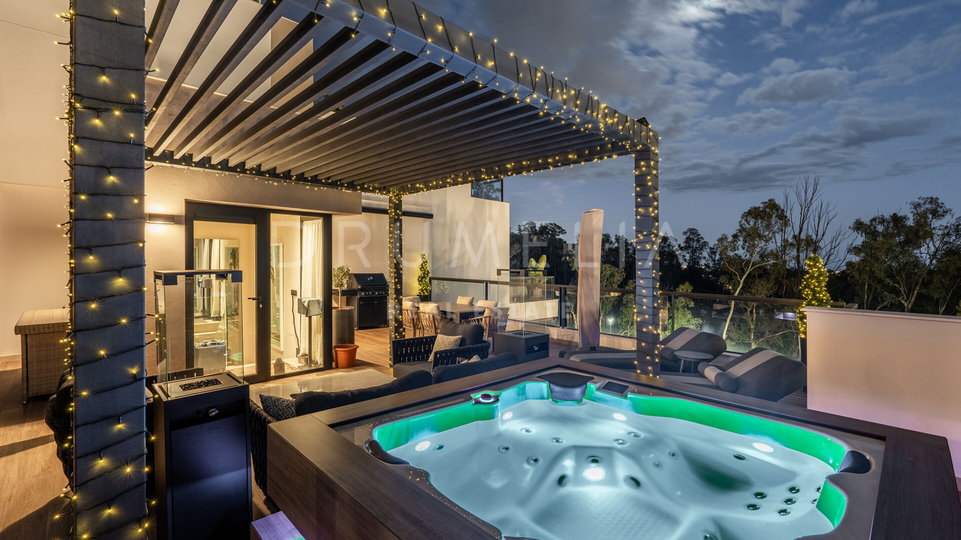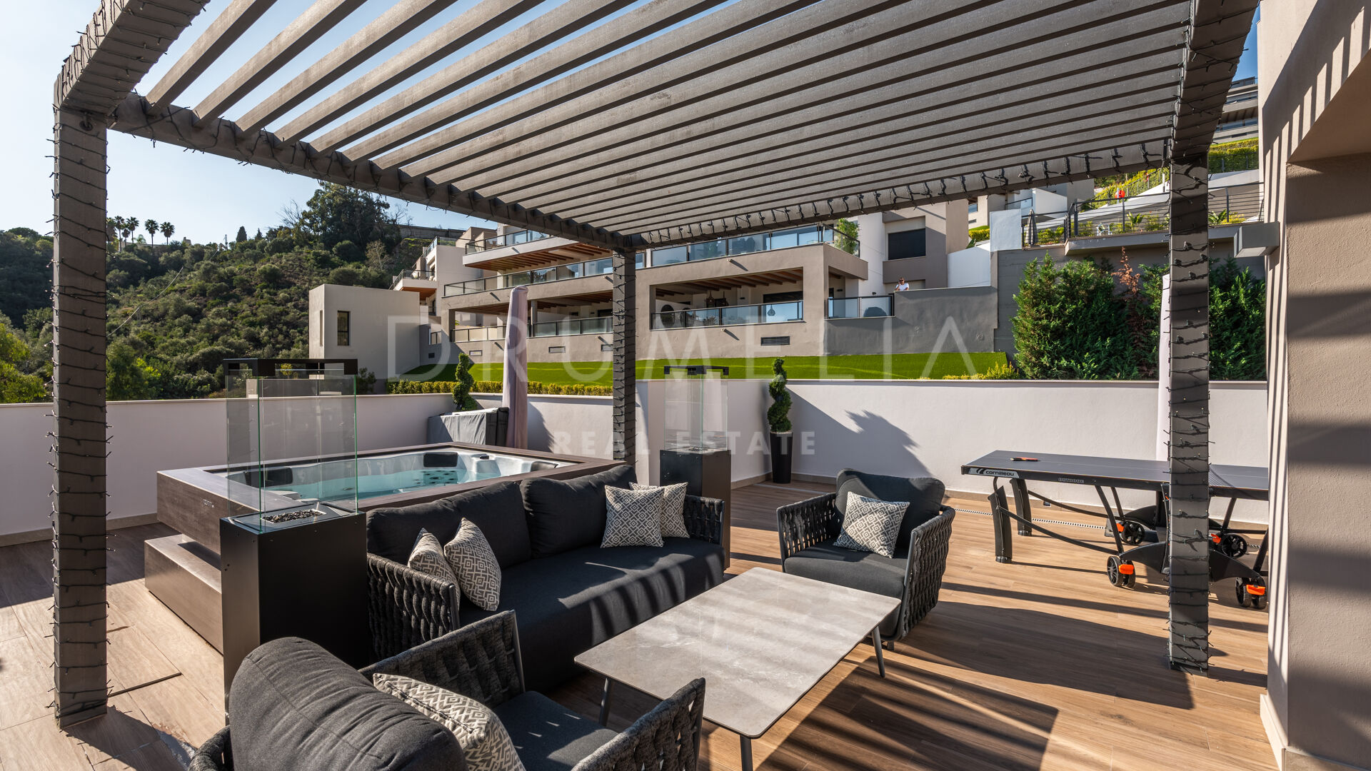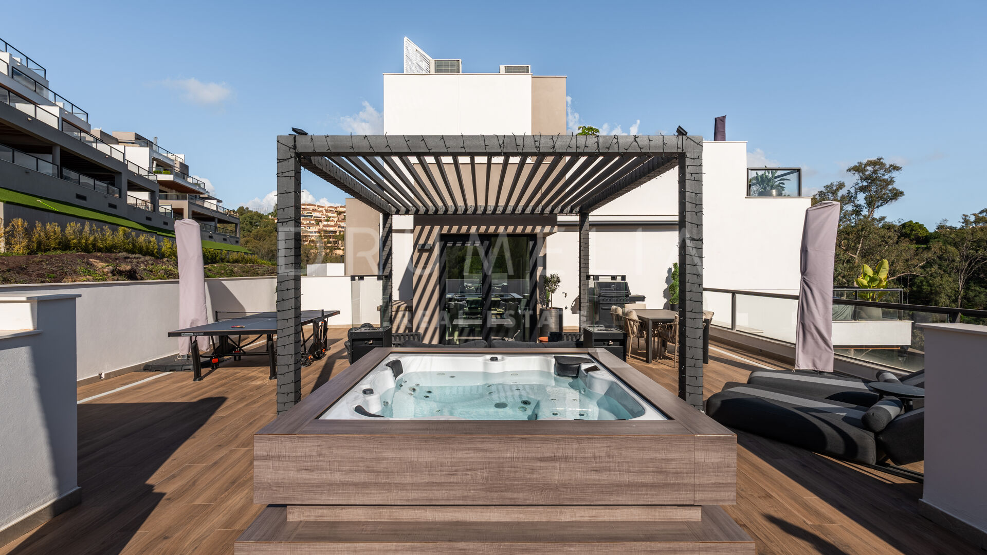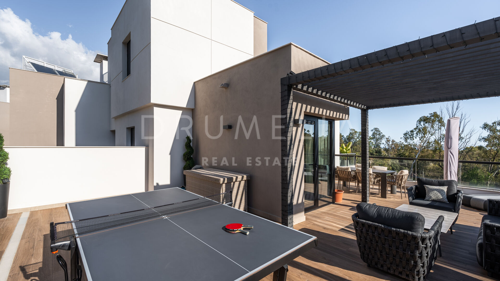 Le point fort de cette maison extraordinaire est la vaste terrasse sur le toit, un sanctuaire exceptionnel pour les loisirs et les rencontres. Ce paradis en plein air est entièrement équipé d’un espace barbecue pour les repas en plein air, d’un somptueux jacuzzi pour se détendre sous les étoiles, de nombreuses places assises pour se prélasser ou recevoir, et même d’une table de ping-pong pour se divertir davantage. Que vous receviez des invités ou que vous profitiez de paisibles couchers de soleil, cet espace unique offre un style de vie incomparable avec des vues fascinantes.
