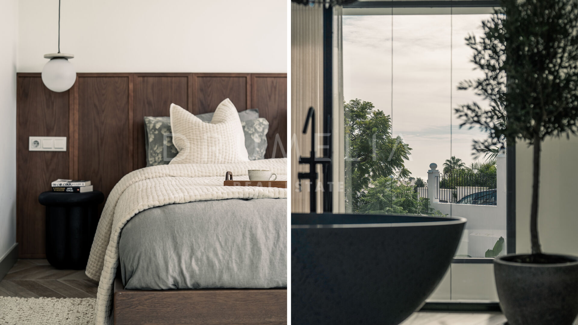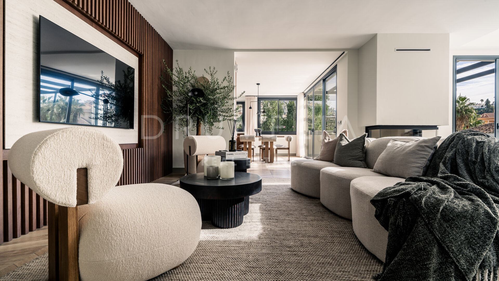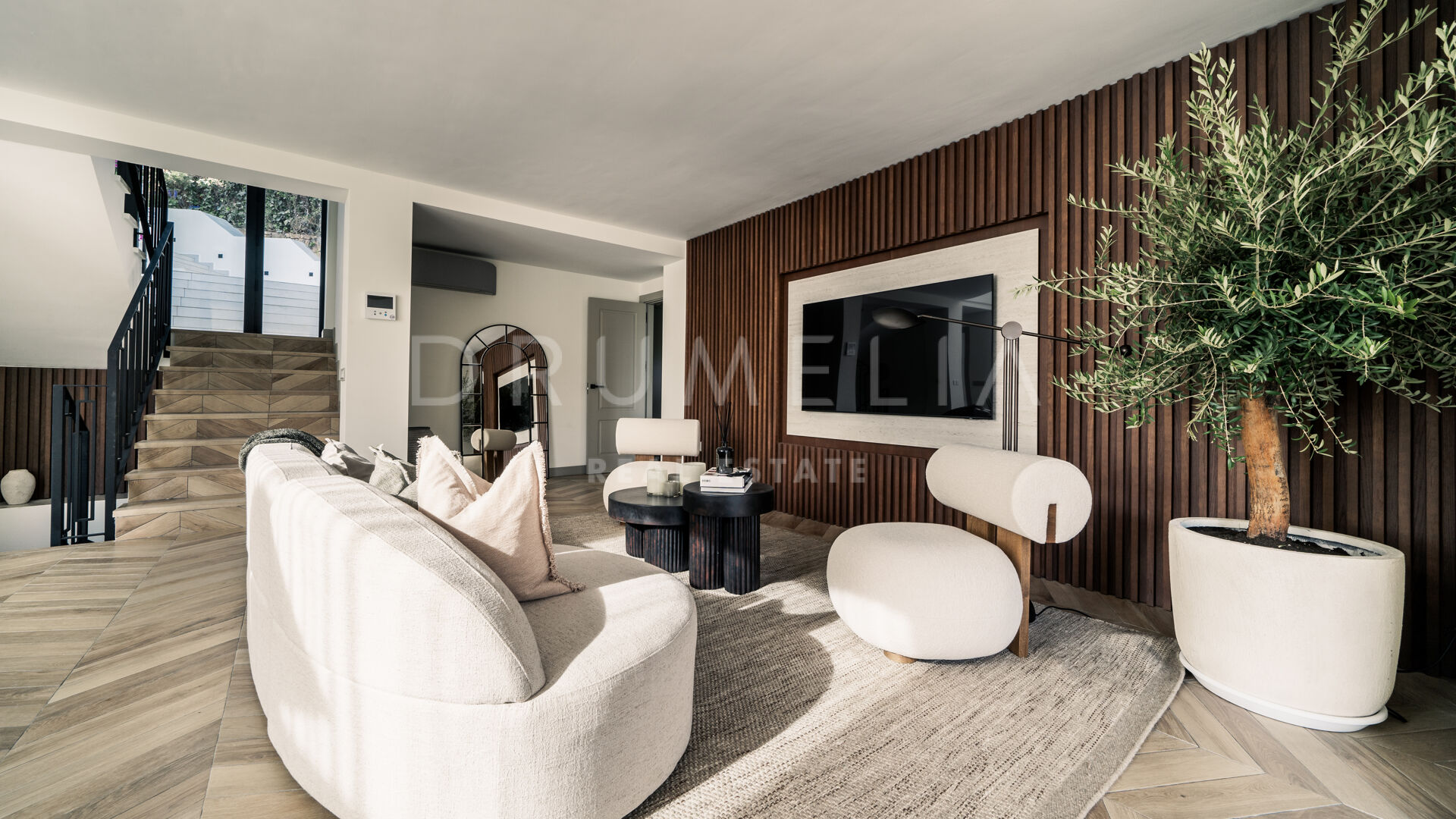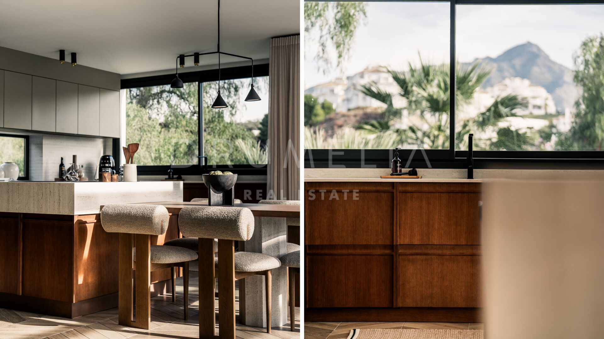 Entourée d’une végétation luxuriante et de propriétés de luxe similaires en Nouvelle Andalousie, cette élégante maison de 320 m² avec 235 m² de terrasses est située sur un terrain de 920 m². Elle est en parfaite harmonie avec son environnement, alliant modernité et caractéristiques méditerranéennes traditionnelles. La spectaculaire villa blanche au toit de terre cuite et aux accents de pierre et de bois est orientée sud/est. Vous serez fasciné par les vues époustouflantes sur la mer et les montagnes. Vivre dans la maison la plus moderne avec une vue idyllique sur la nature – il y a toujours quelque chose de spécial à ce sujet ! Grâce aux grandes fenêtres et au concept de plan ouvert, la maison est pleine de lumière et d’air. La palette de couleurs agréable à l’œil est dictée par la nature elle-même.
