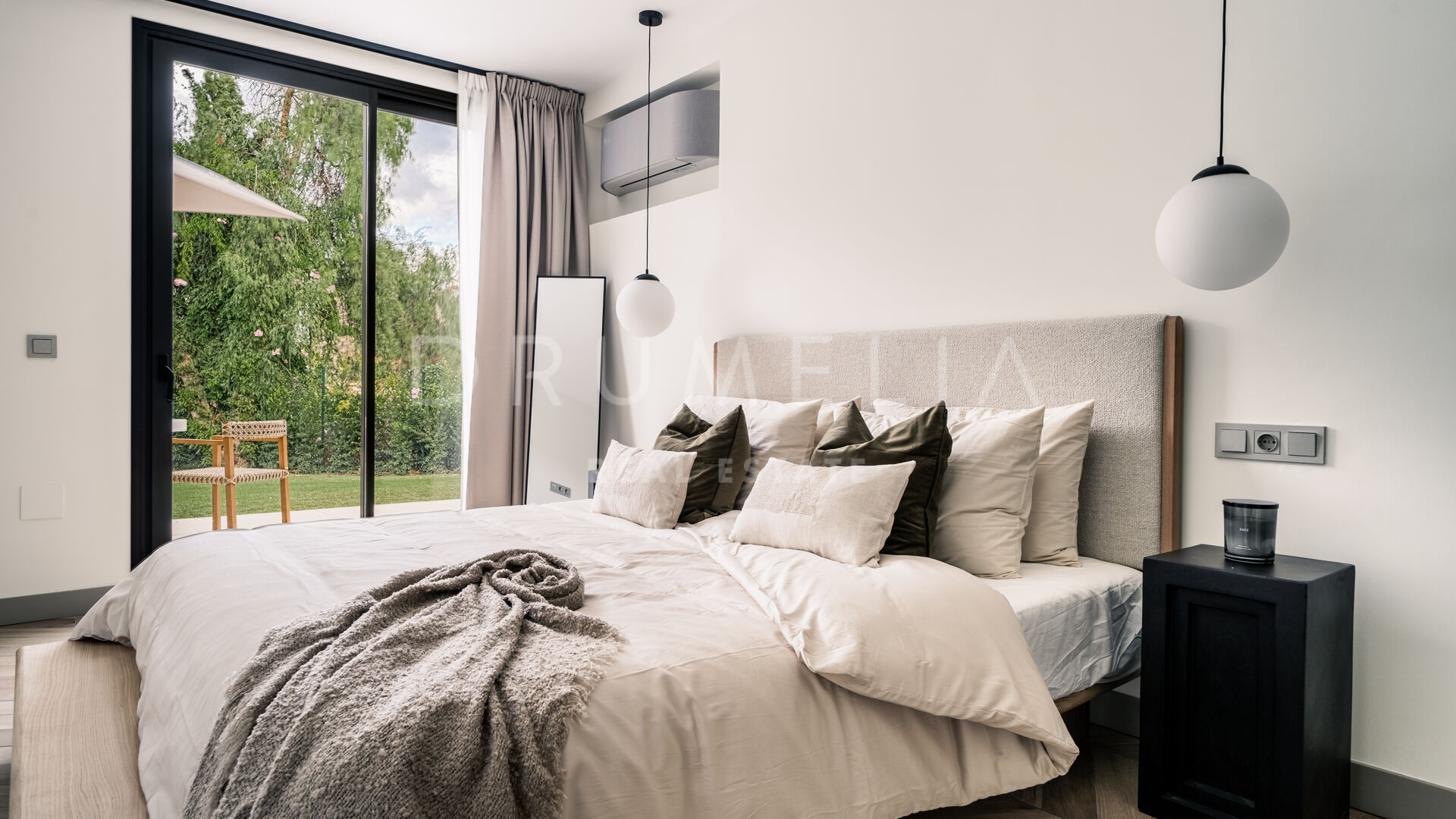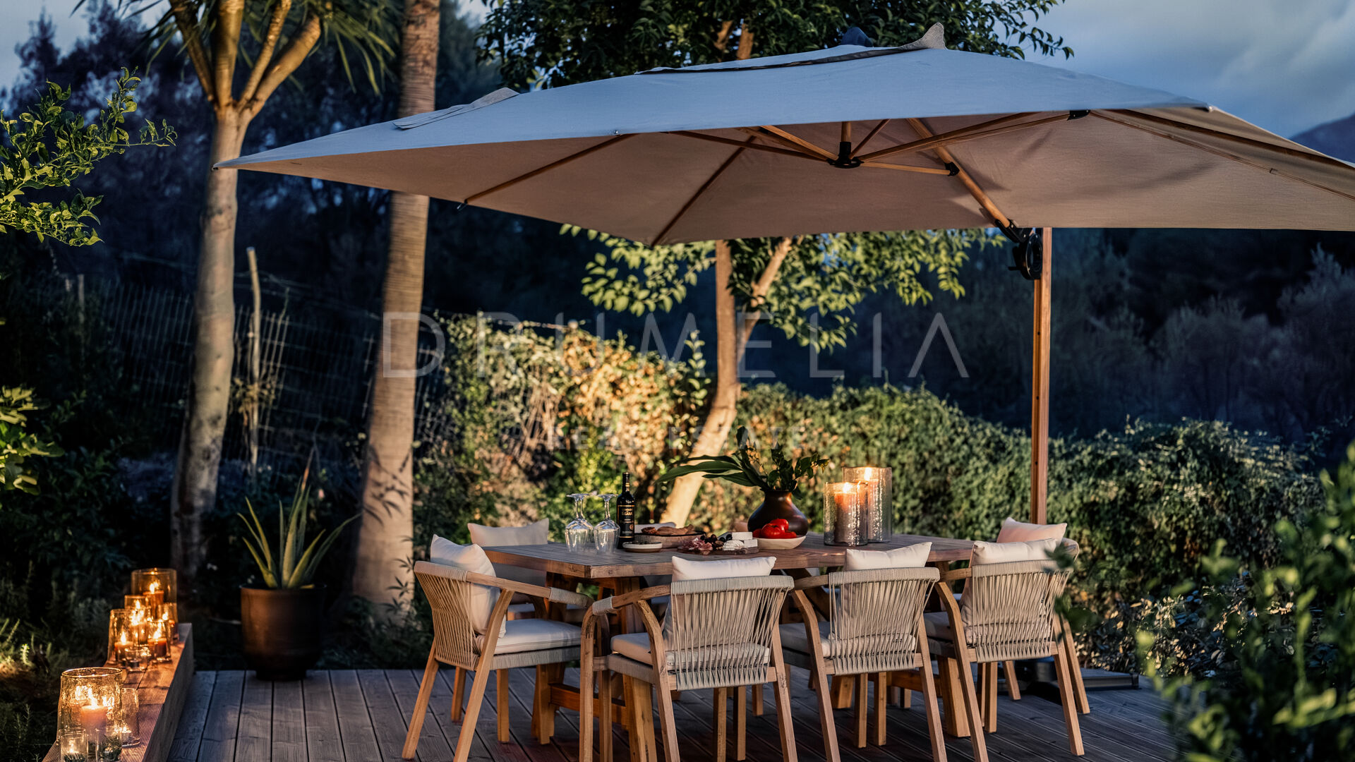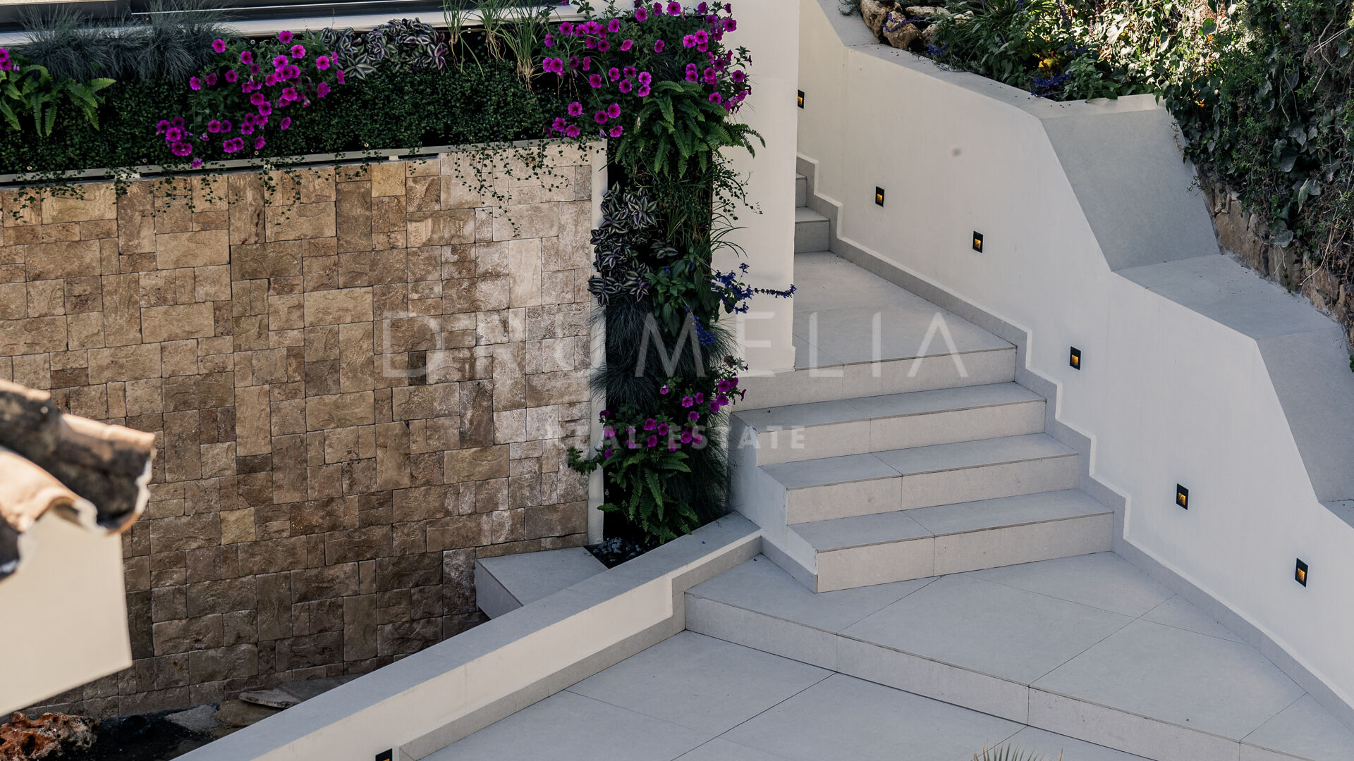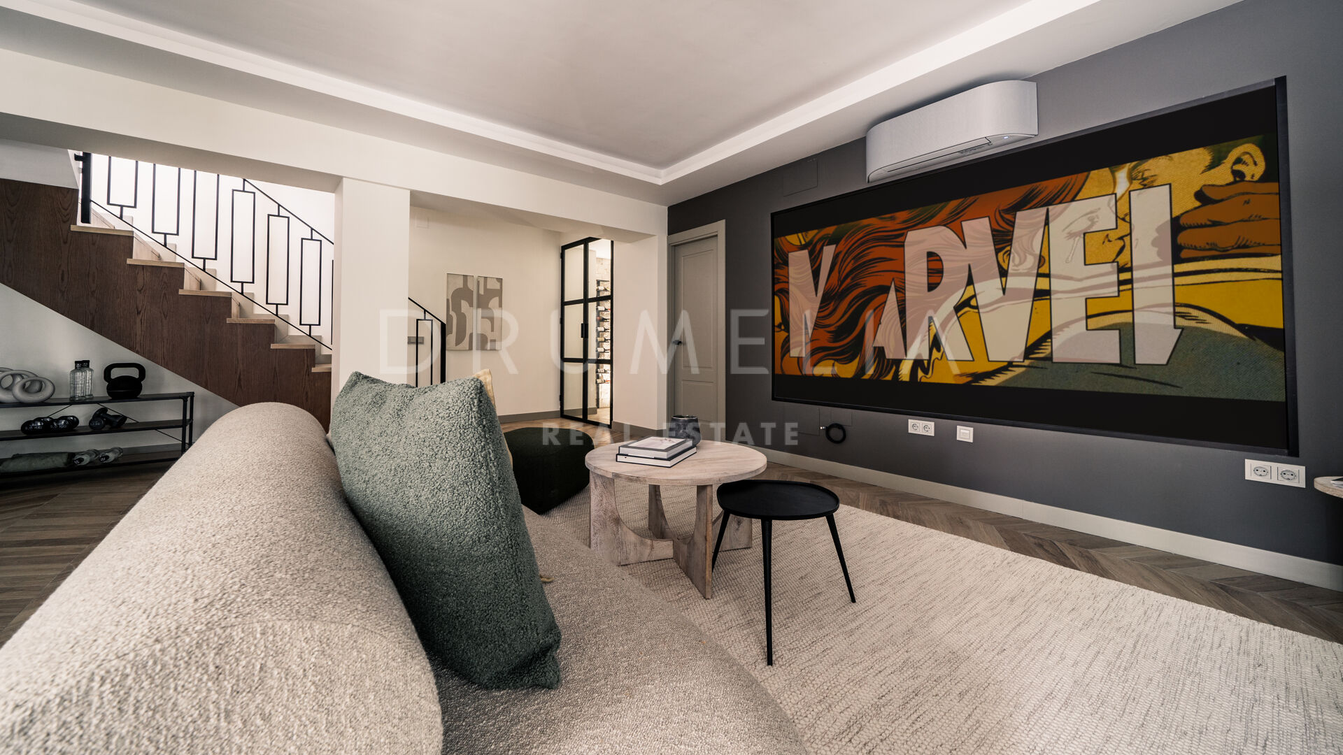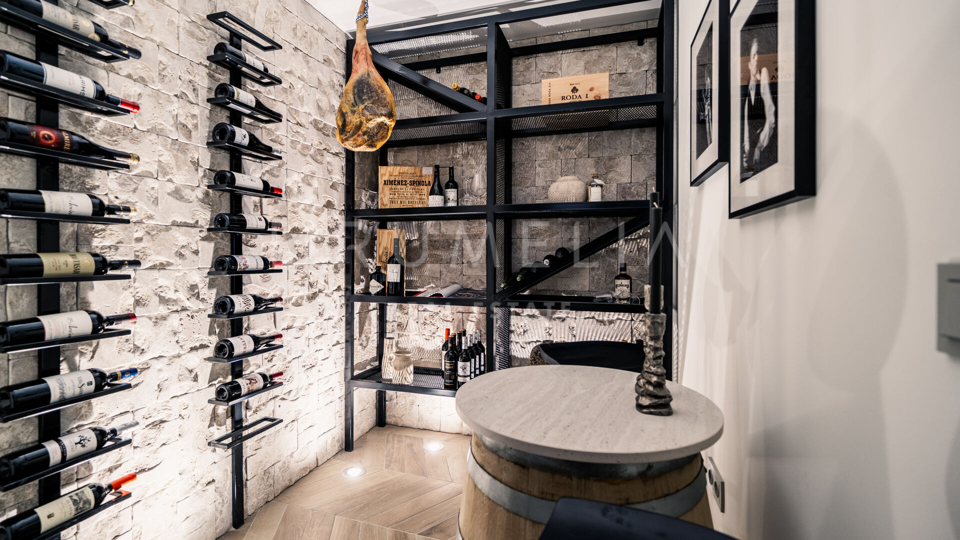 Des portes vitrées donnent accès aux jardins paysagers, aux terrasses, aux sièges, aux bains de soleil et aux salles à manger en plein air. Les espaces ouverts de la maison invitent au style de vie méditerranéen mondialement connu. L’imposante piscine vous permettra de vous rafraîchir ou d’organiser une superbe fête. Imaginez une soirée romantique au coin du feu – et pas seulement dans le confortable salon de télévision de la villa, mais sous les étoiles. Un bio-foyer atmosphérique vous attend dans le solarium sur le toit. Vous pourrez y siroter des martinis ou du champagne dans le jacuzzi tout en admirant la vue magnifique sur la montagne légendaire de La Concha. La nature luxuriante environnante vous offrira une intimité bienvenue. Après le coucher du soleil, un système d’éclairage LED innovant et très fonctionnel transforme l’extérieur de la maison en une œuvre d’art, ajoutant une touche magique de conte de fées.