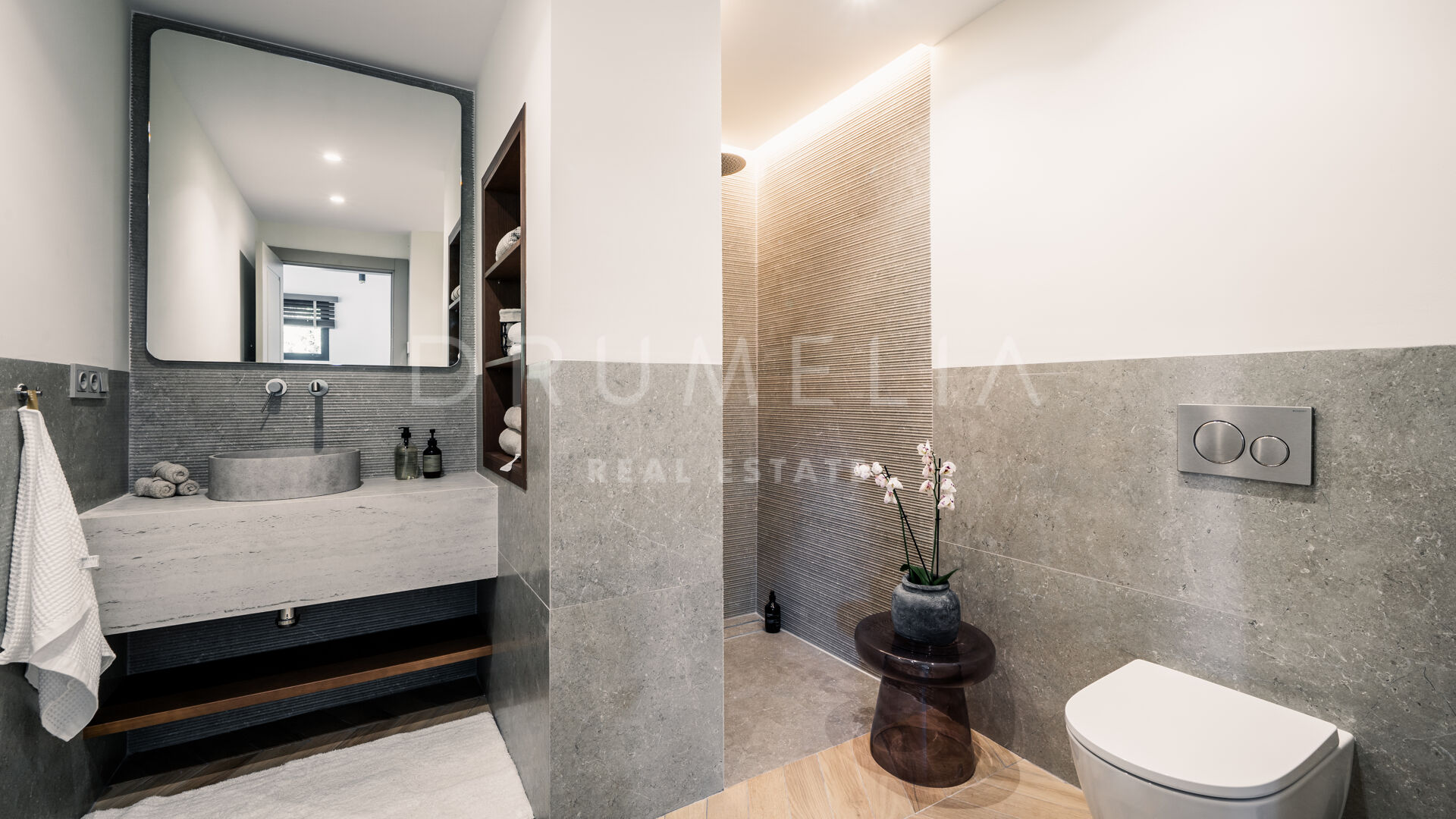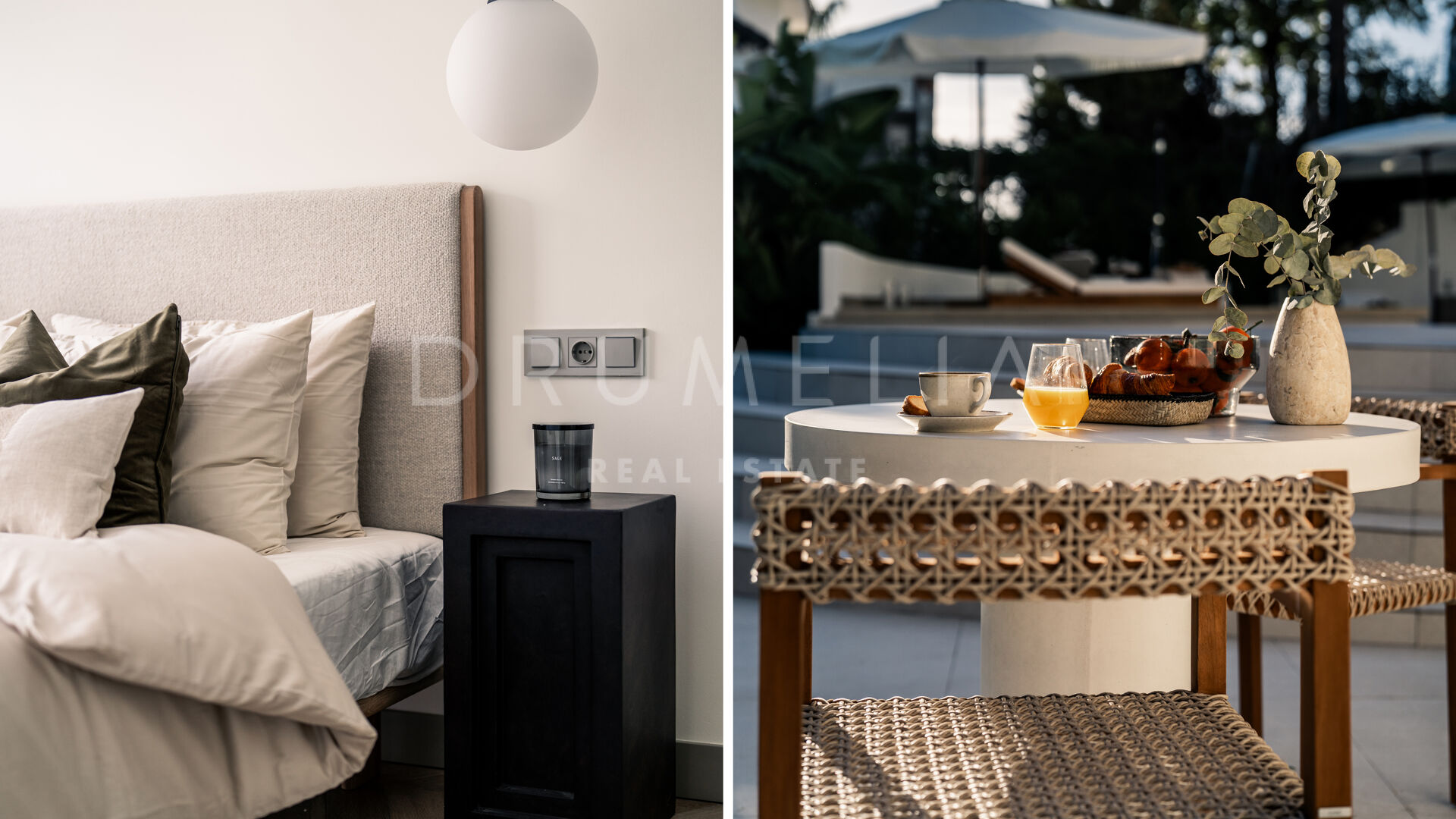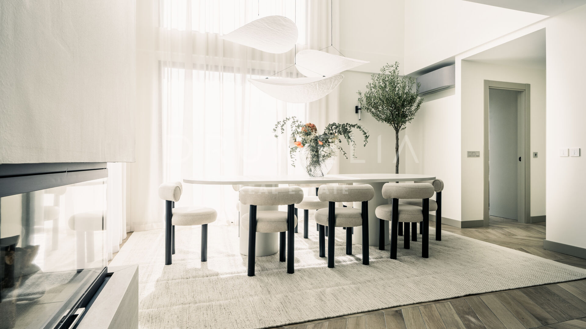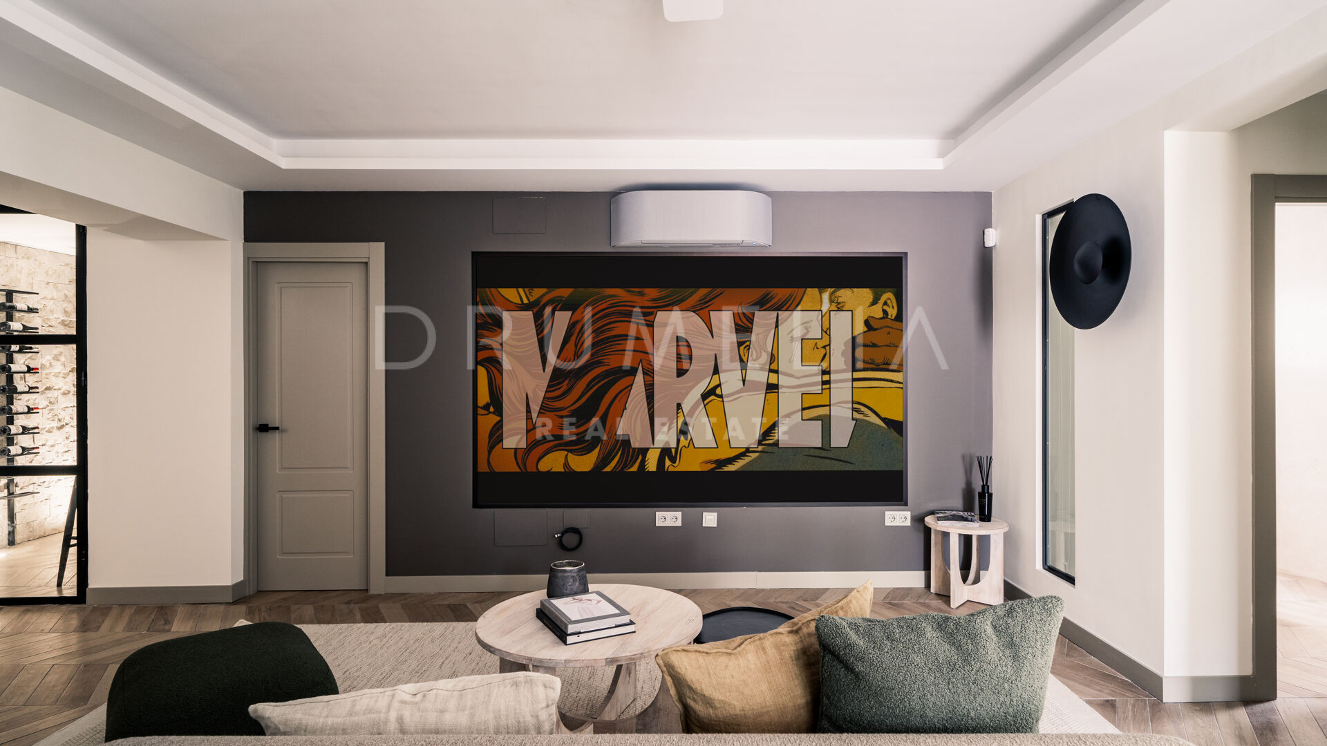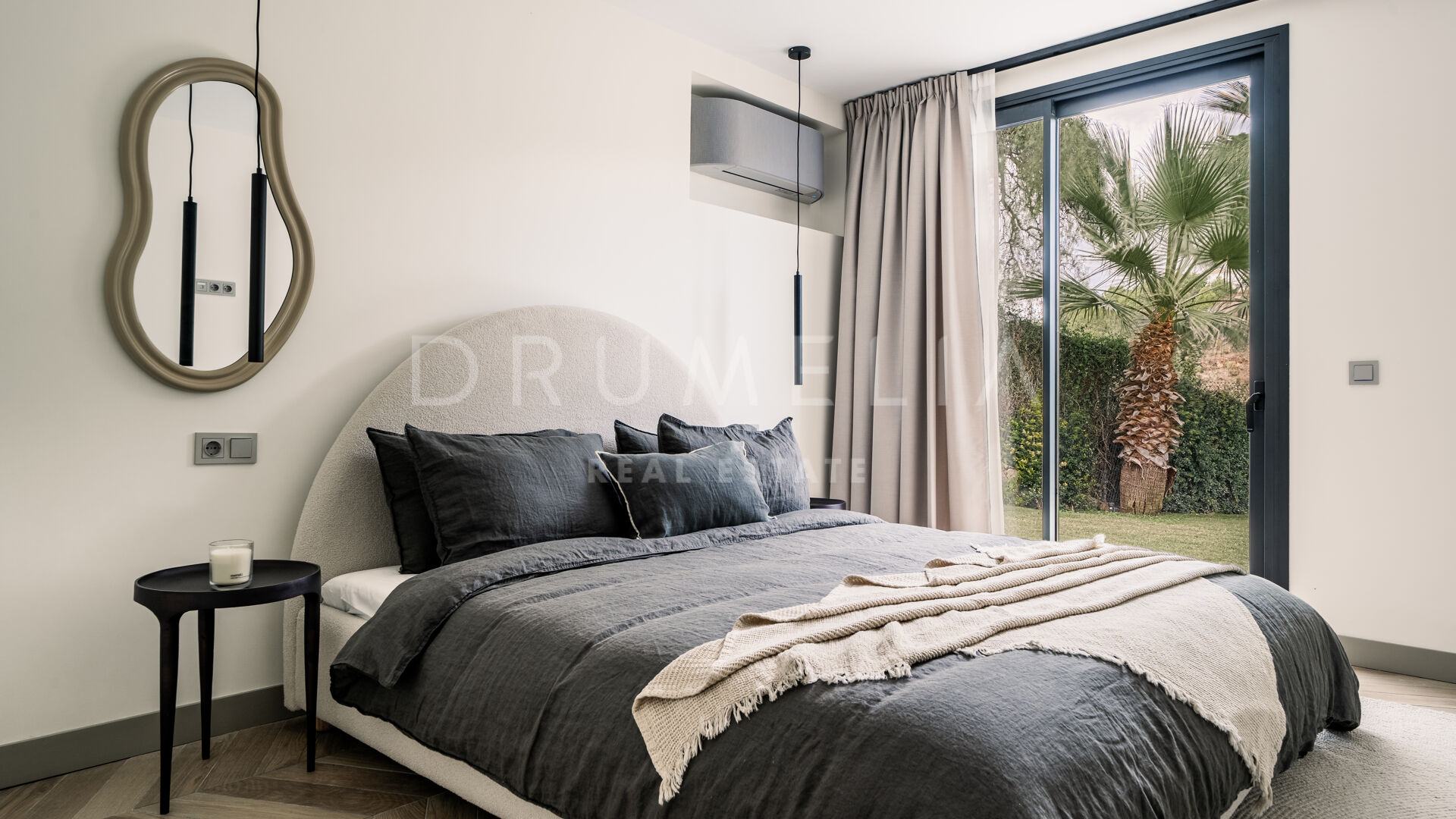 Des portes vitrées donnent accès aux jardins paysagers, aux terrasses, aux sièges, aux bains de soleil et aux salles à manger en plein air. Les espaces ouverts de la maison invitent au style de vie méditerranéen mondialement connu. L’imposante piscine vous permettra de vous rafraîchir ou d’organiser une superbe fête. Imaginez une soirée romantique au coin du feu – et pas seulement dans le confortable salon de télévision de la villa, mais sous les étoiles. Un bio-foyer atmosphérique vous attend dans le solarium sur le toit. Vous pourrez y siroter des martinis ou du champagne dans le jacuzzi tout en admirant la vue magnifique sur la montagne légendaire de La Concha. La nature luxuriante environnante vous offrira une intimité bienvenue. Après le coucher du soleil, un système d’éclairage LED innovant et très fonctionnel transforme l’extérieur de la maison en une œuvre d’art, ajoutant une touche magique de conte de fées.